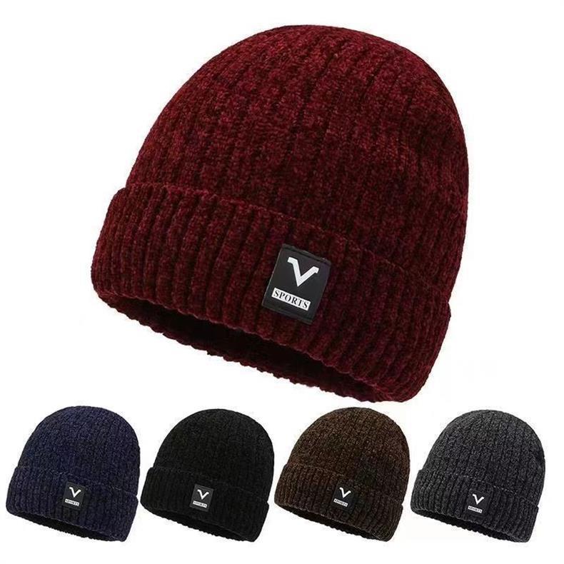 Novo Gorro de Tricô de Inverno Masculino Forrado com Lã Grosso Quente Pulôver Gorro de Lã Estudante Ciclismo À Prova de Frio Proteção de Orelha Chapéu Tendência