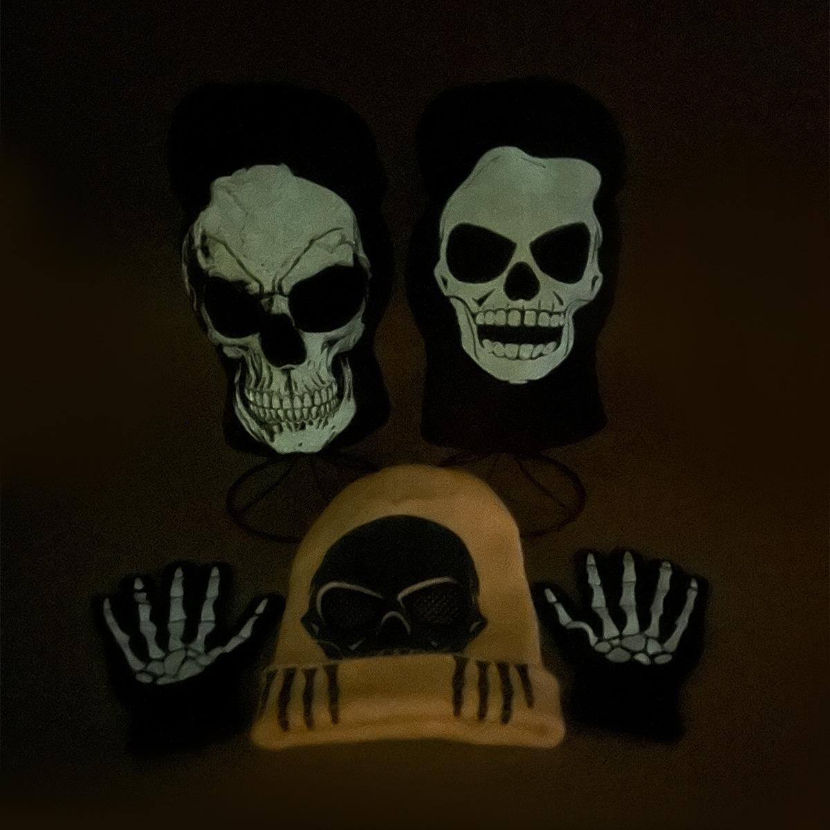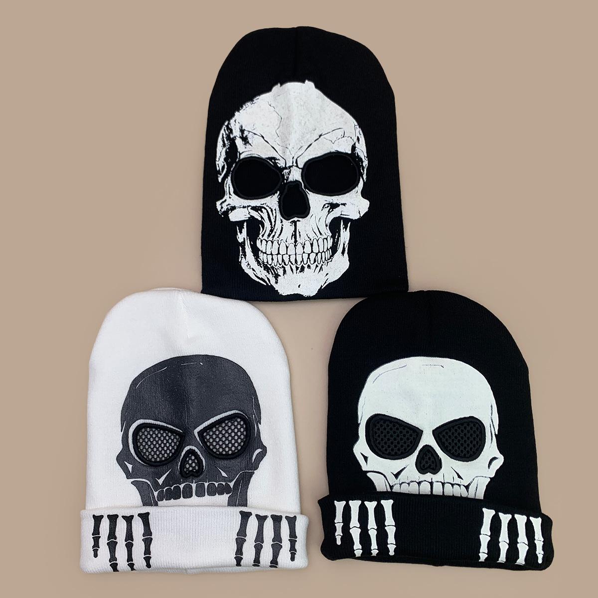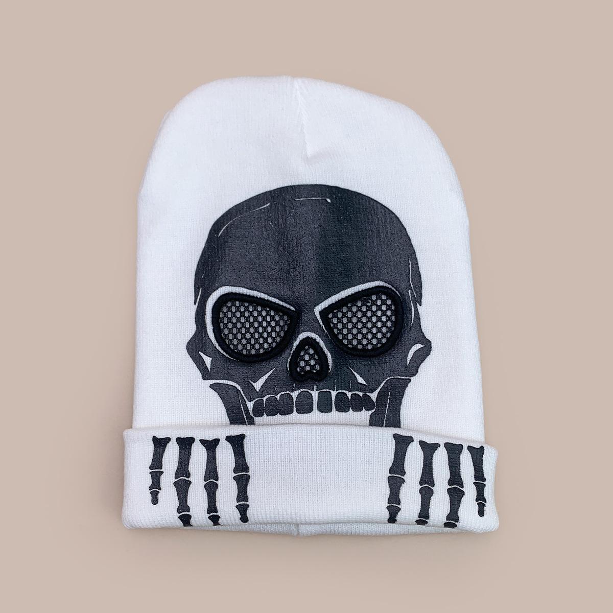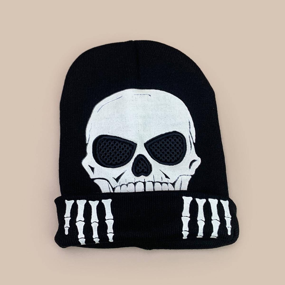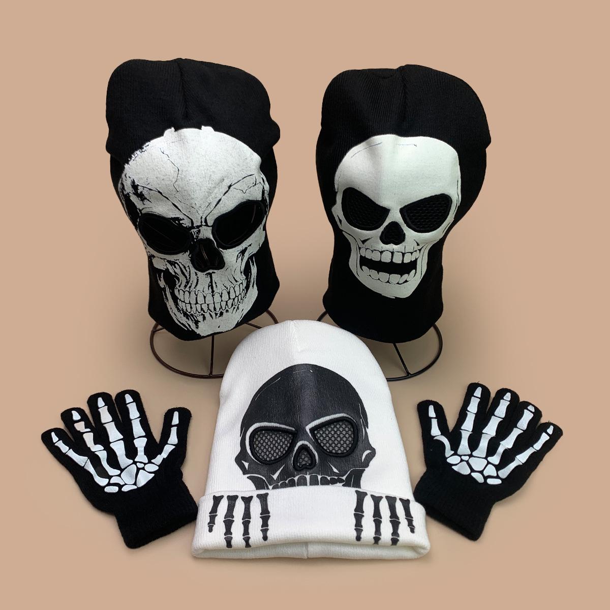 Luvas de Caveira de Halloween Chapéu de Tricô Fluorescente Homens e Mulheres Quente Engraçado Hip Hop Personalidade Festa Chapéu Pulôver Atacado