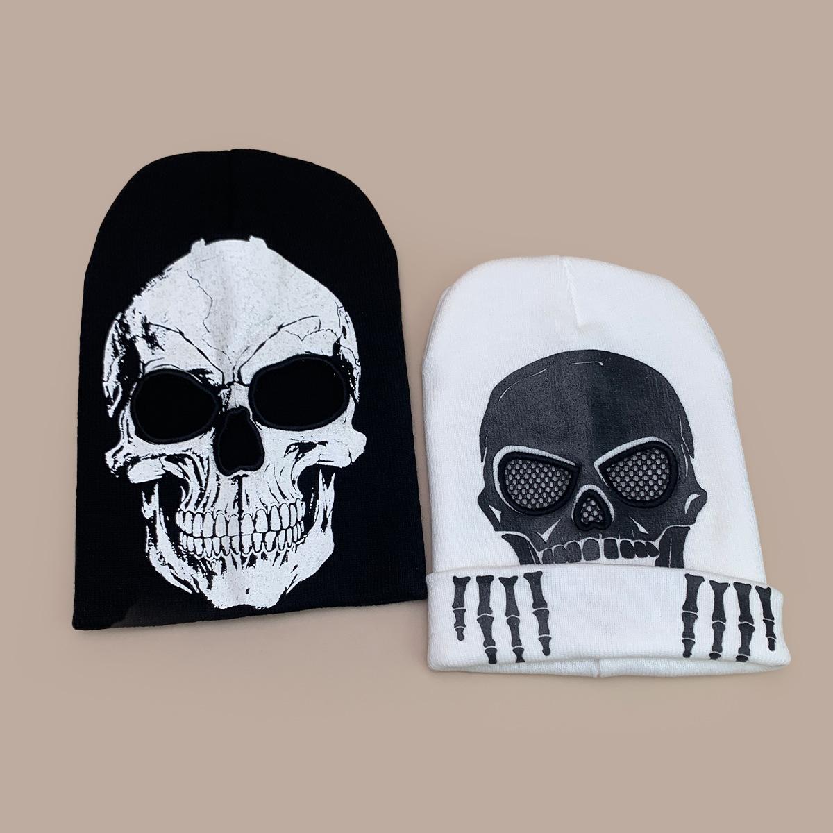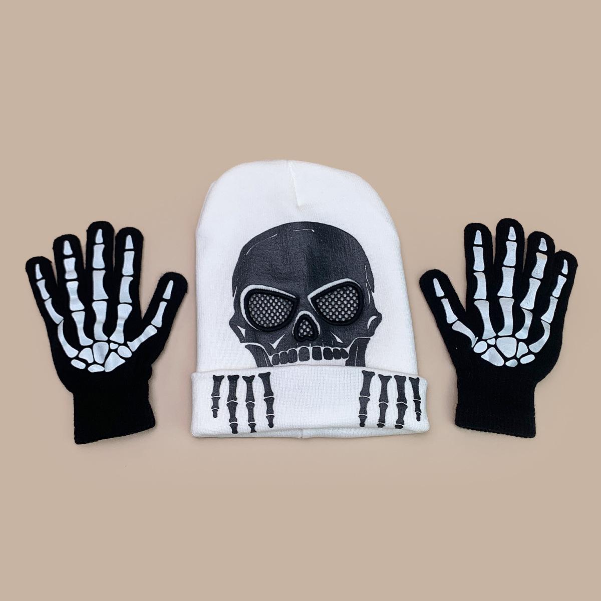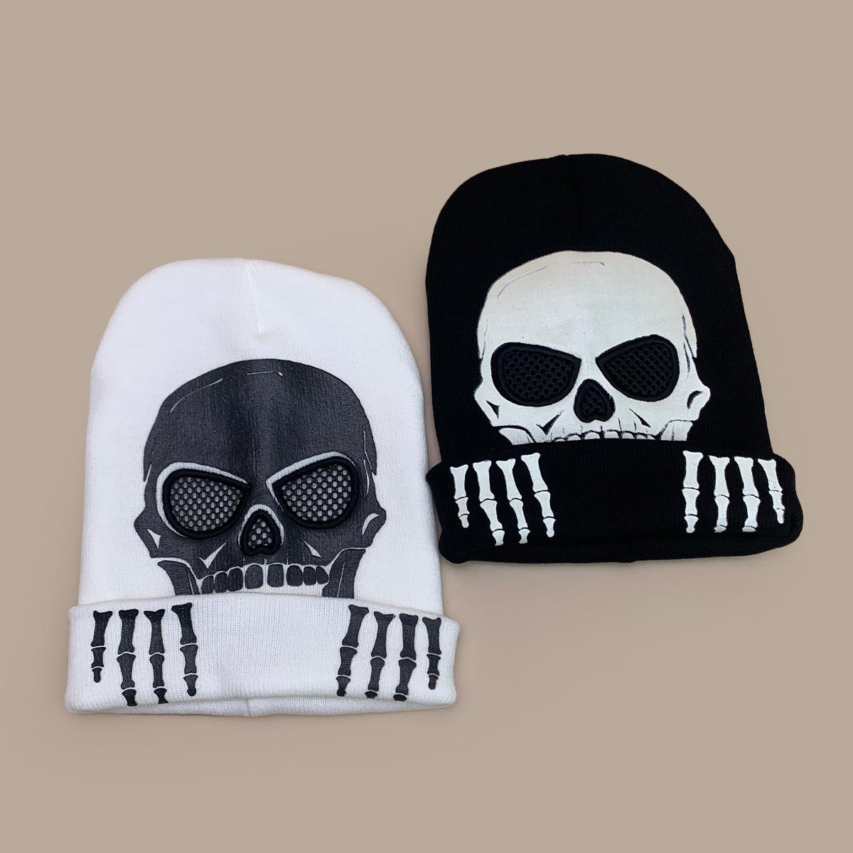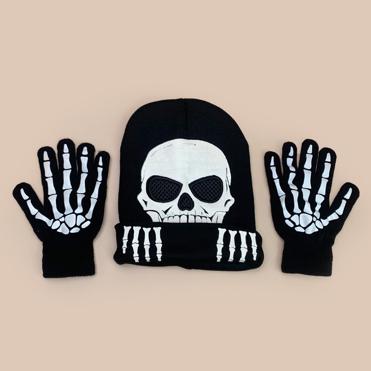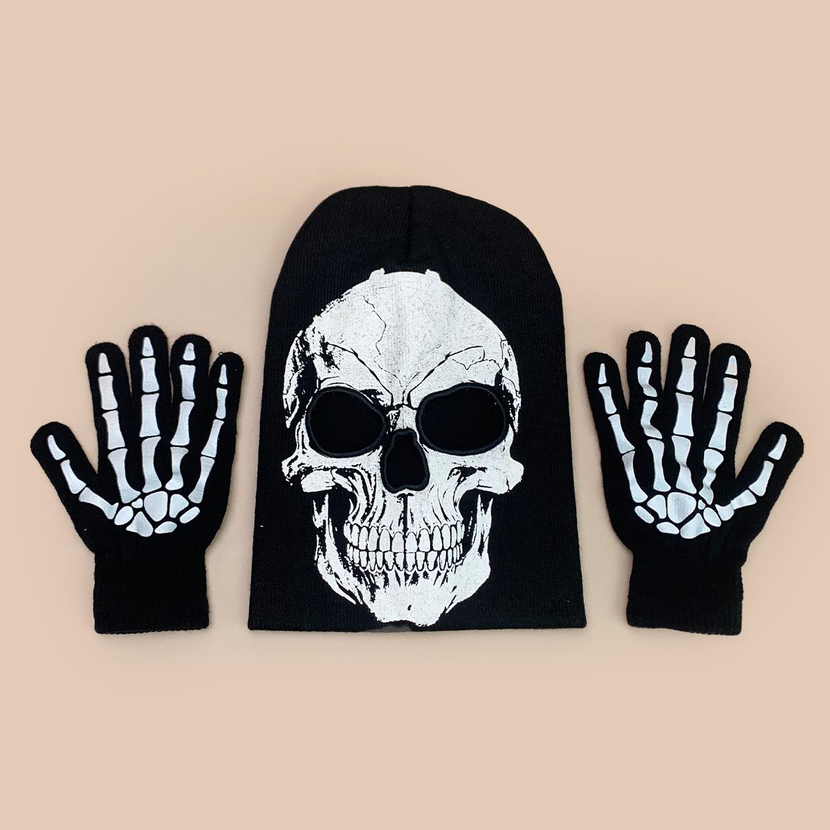 Luvas de Caveira de Halloween Chapéu de Tricô Fluorescente Homens e Mulheres Quente Engraçado Hip Hop Personalidade Festa Chapéu Pulôver Atacado