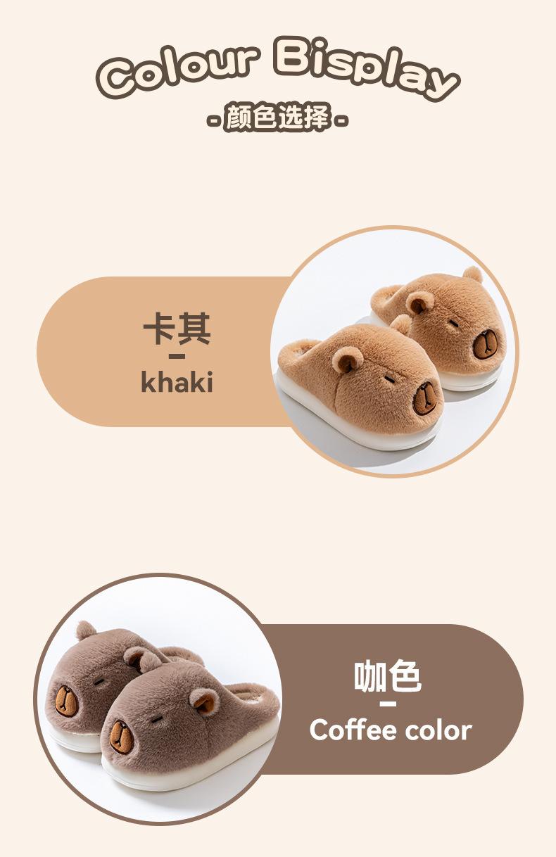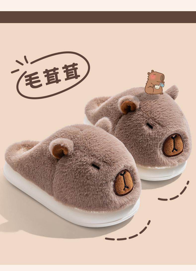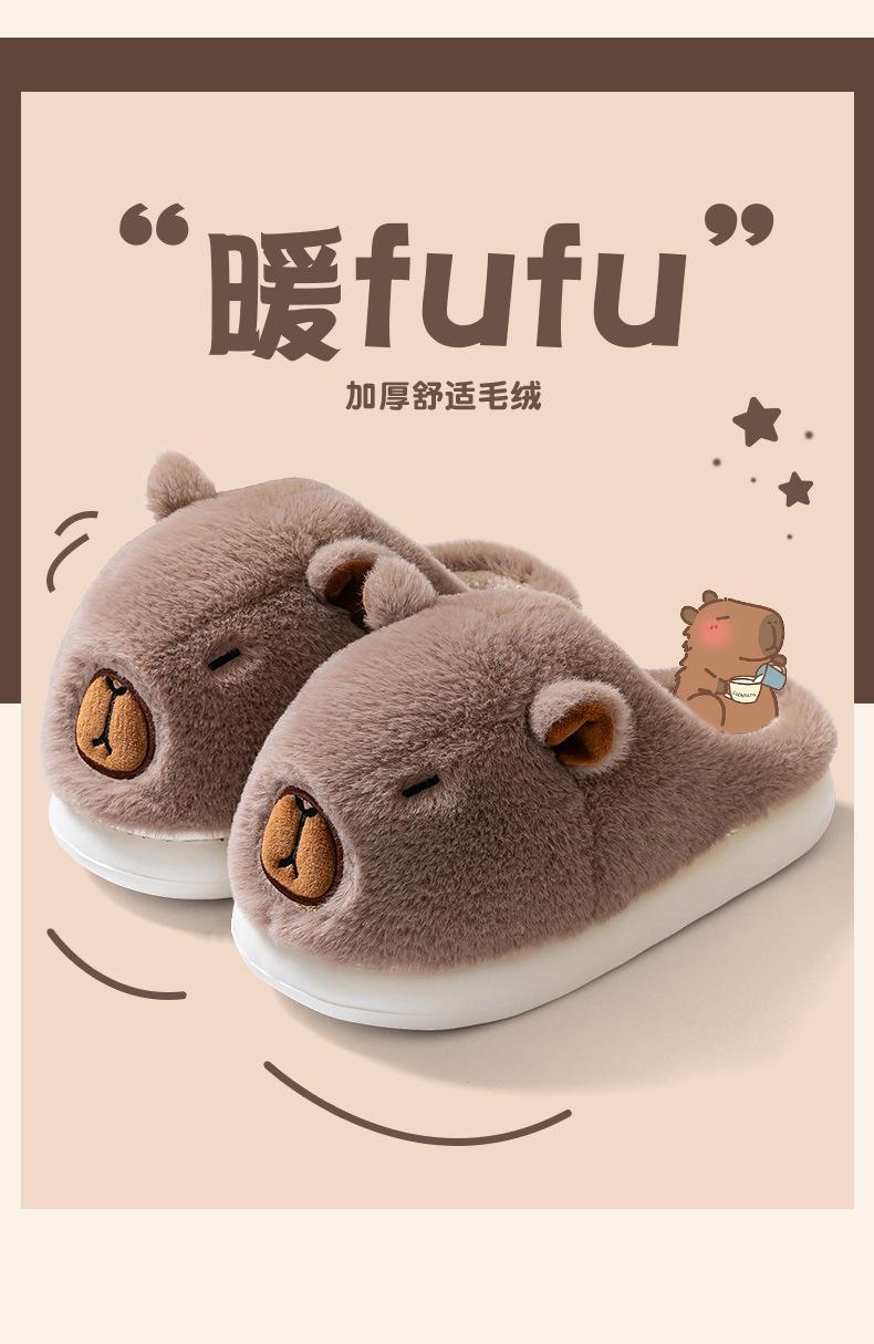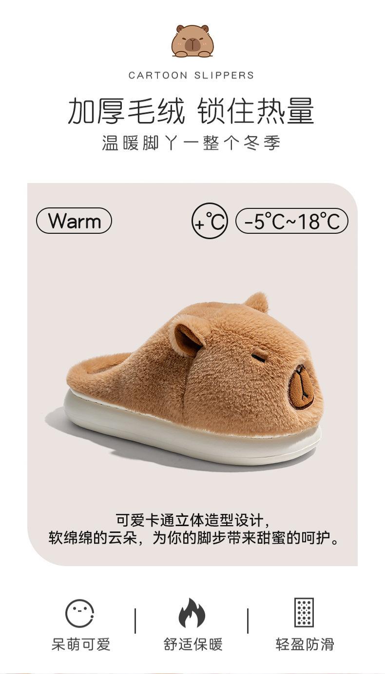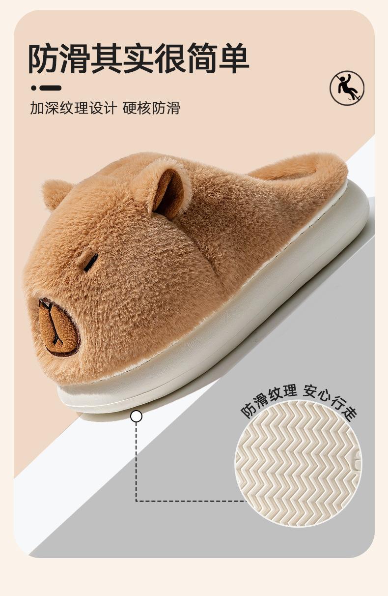 Pantufas de Algodão Capivara Masculinas 25 Novo Outono e Inverno Interior Casa Quente Antiderrapante Fofo Desenho Animado Casal Sapatos de Algodão