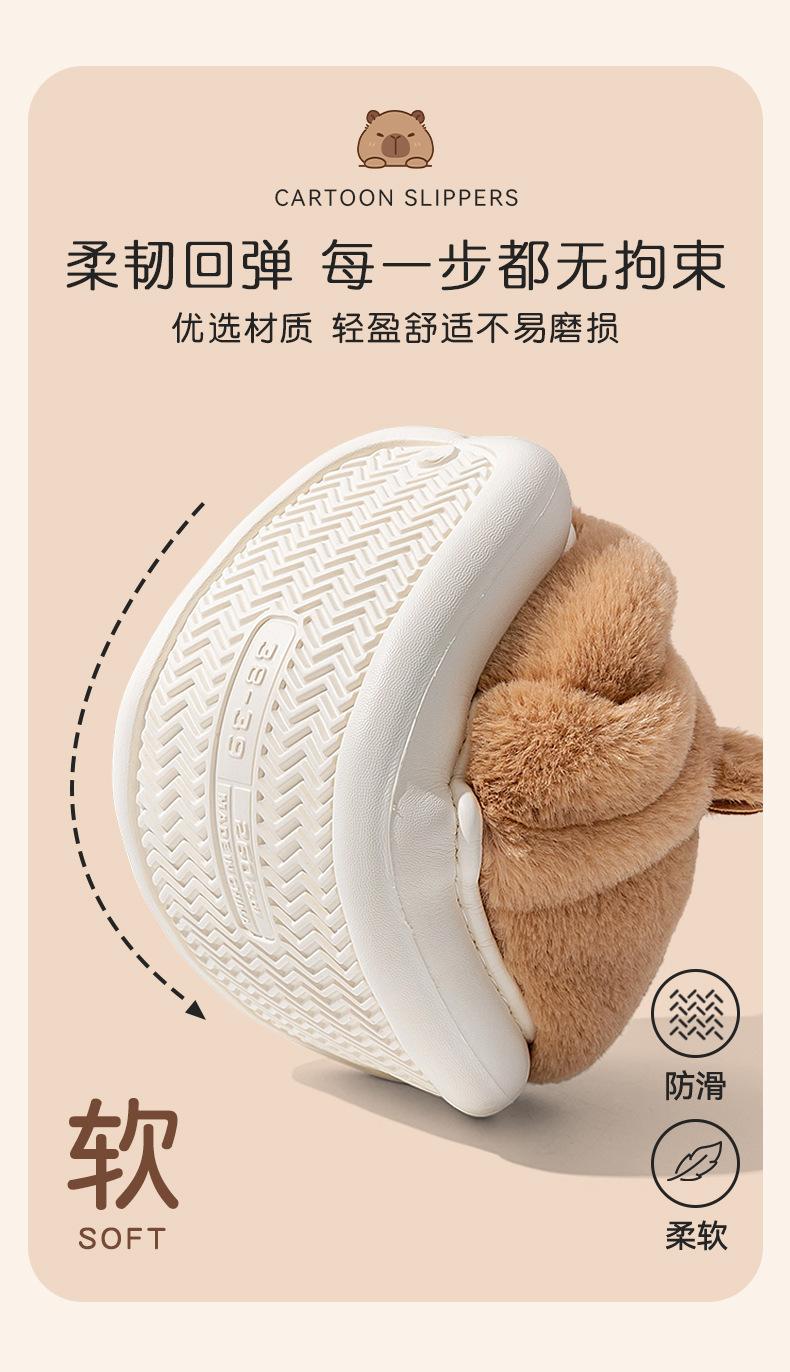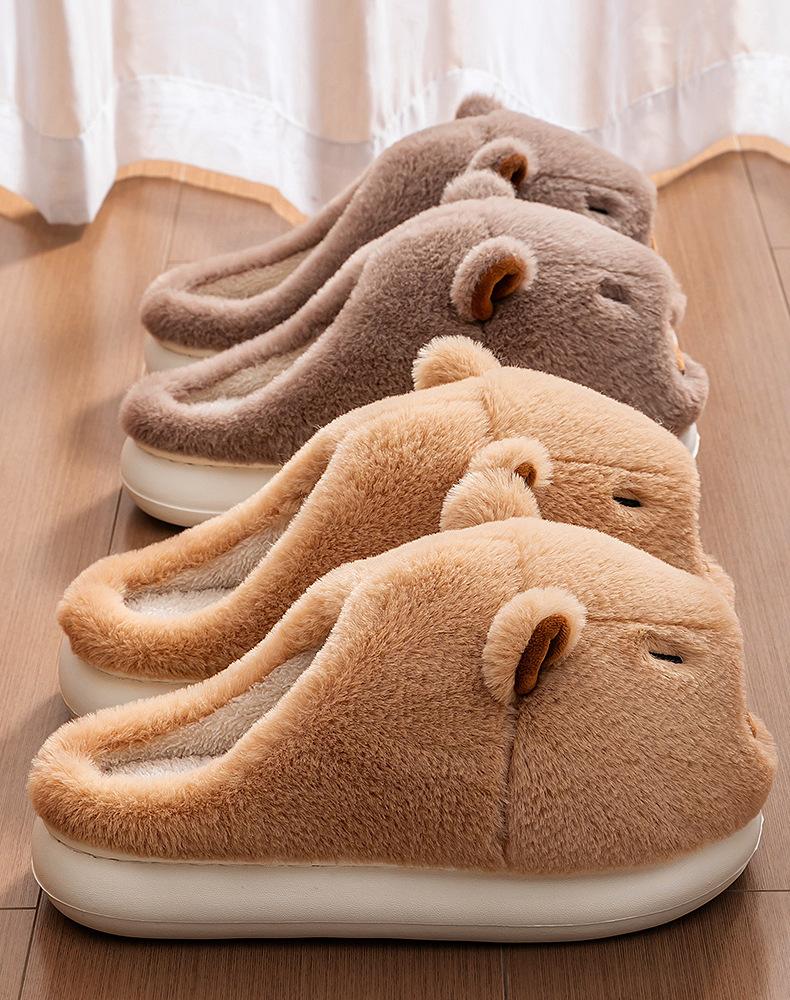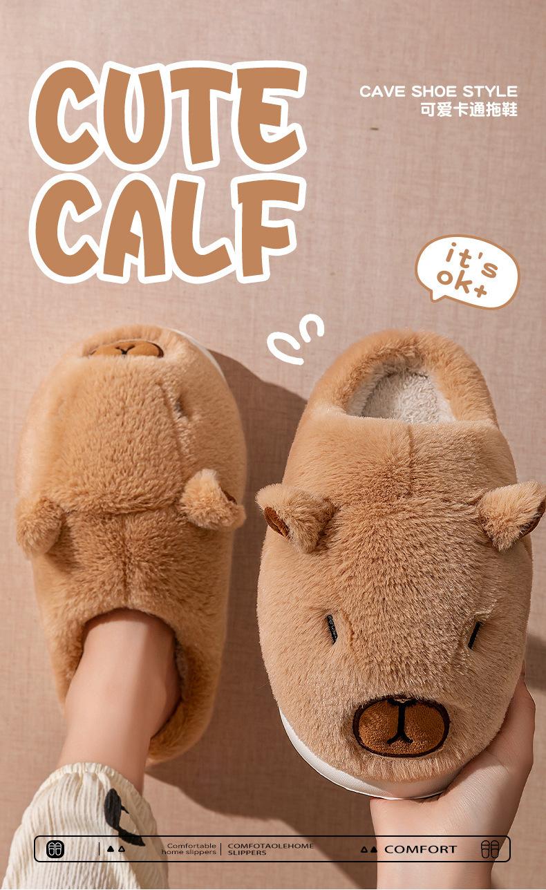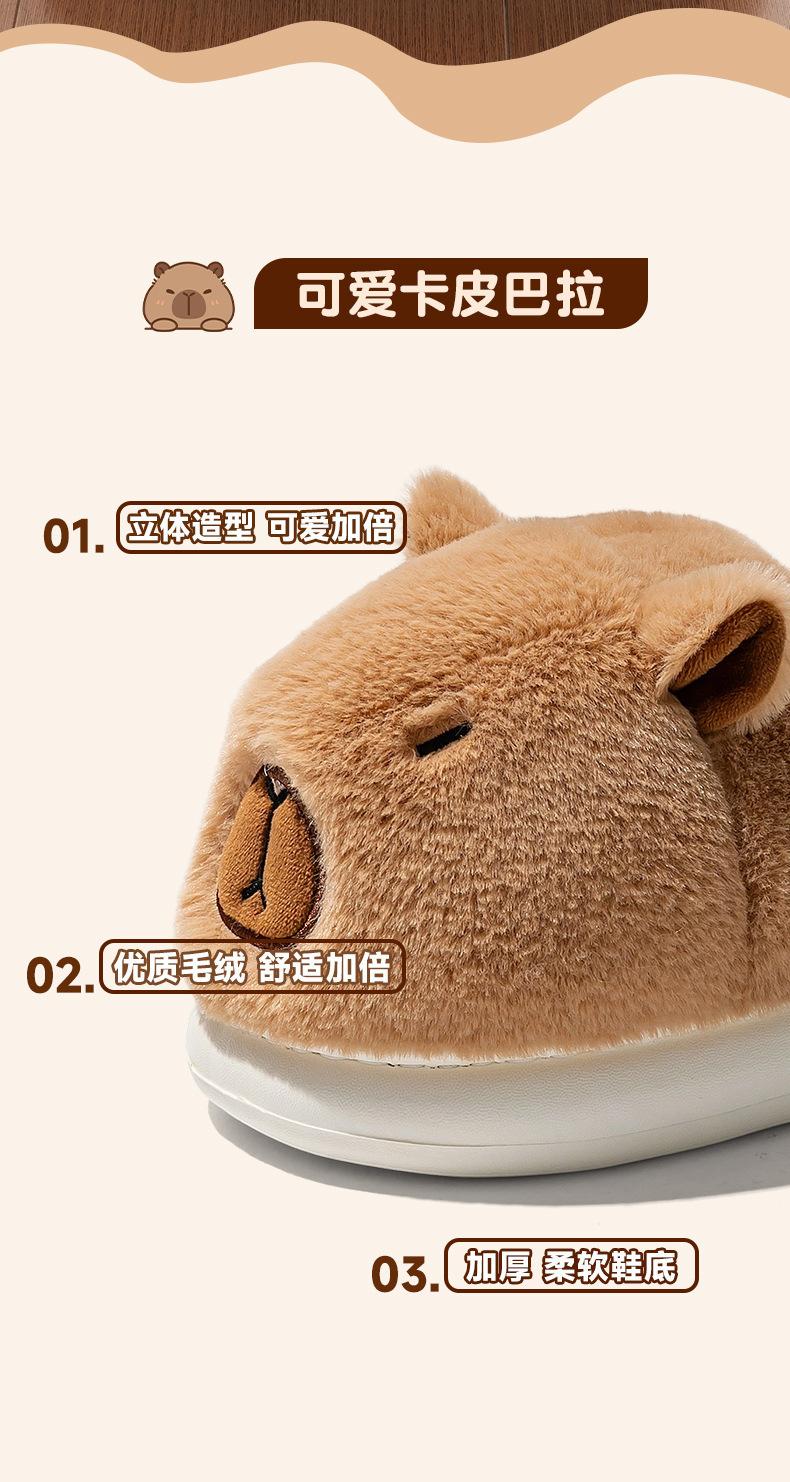 Pantufas de Algodão Capivara Masculinas 25 Novo Outono e Inverno Interior Casa Quente Antiderrapante Fofo Desenho Animado Casal Sapatos de Algodão