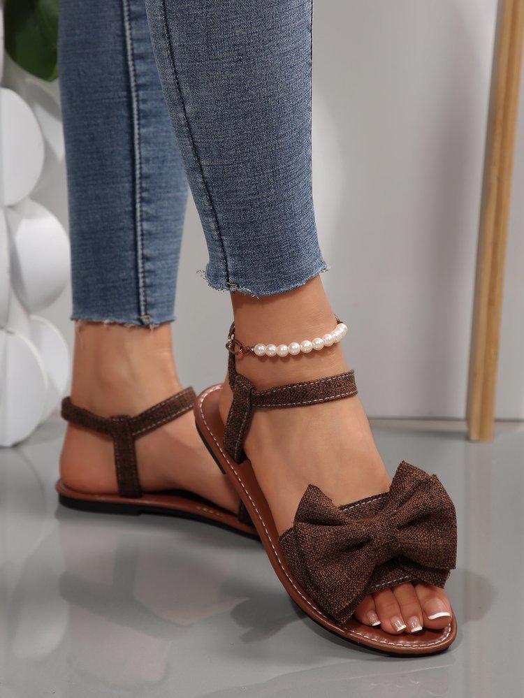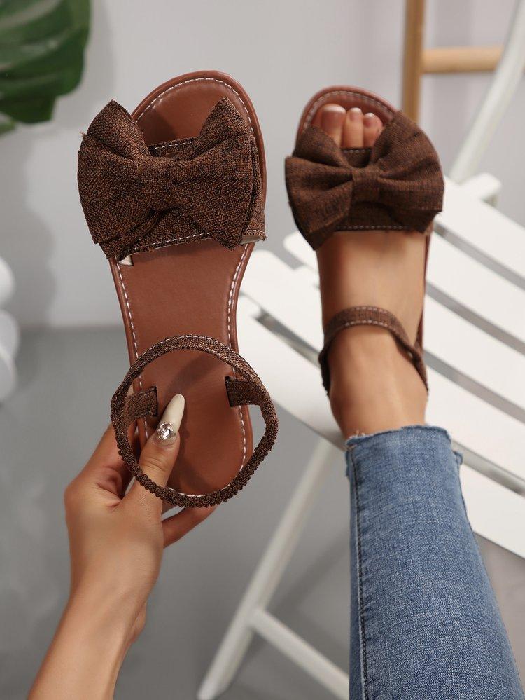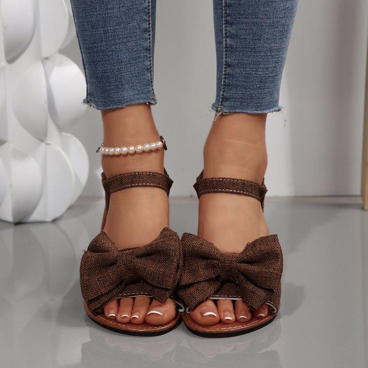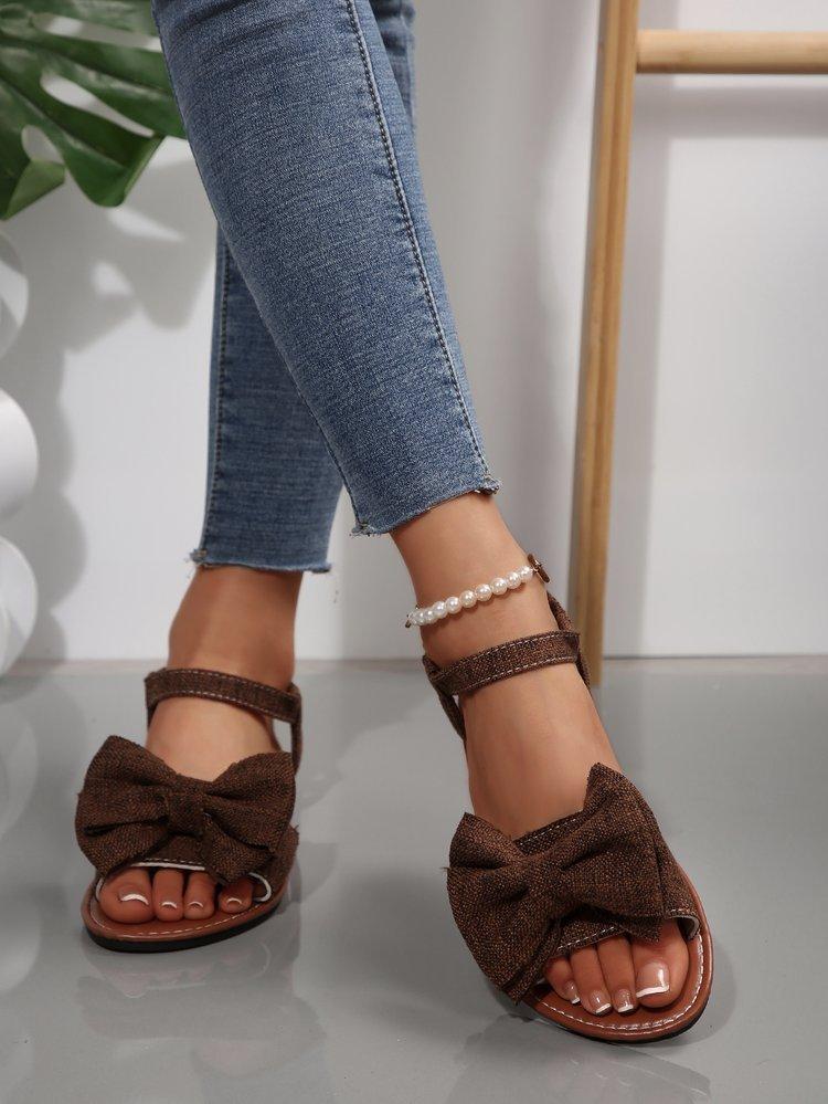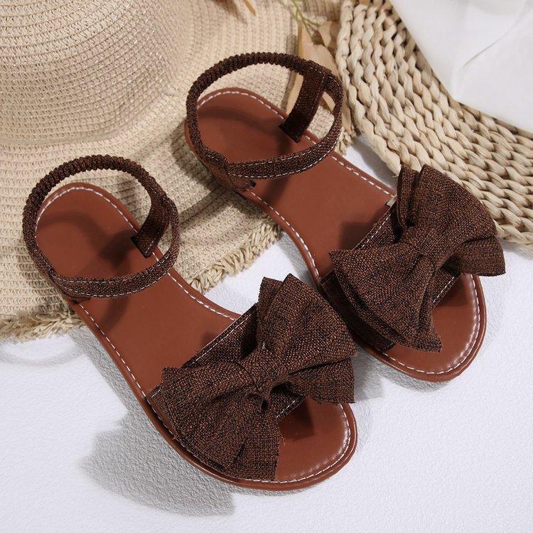 Sudeste Asiático Dropshipping Fábrica Atacado 2025 Novo Estilo Transfronteiriço Comércio Exterior Tamanho Grande Sandálias Rasteirinhas de Praia Femininas com Laço