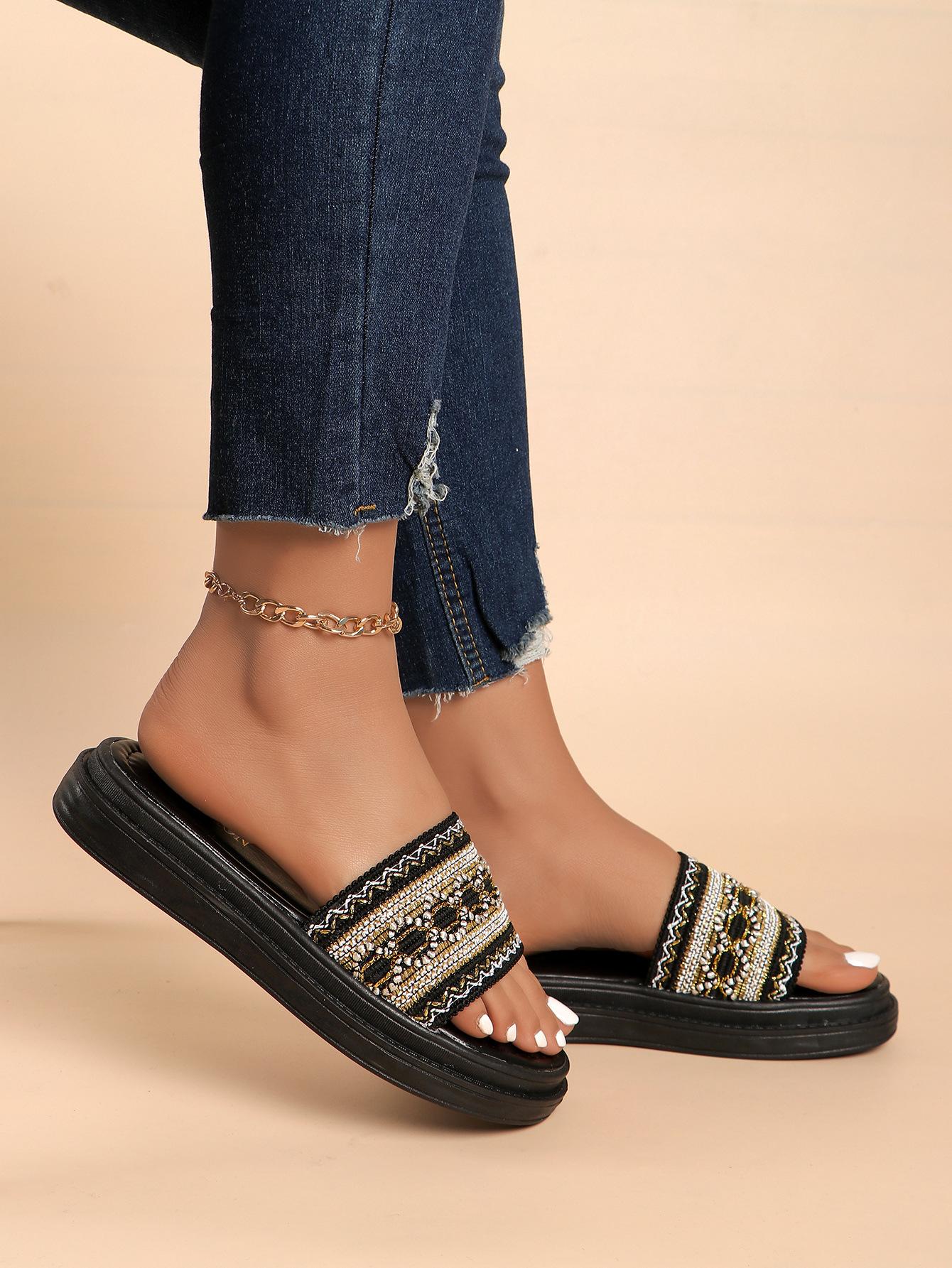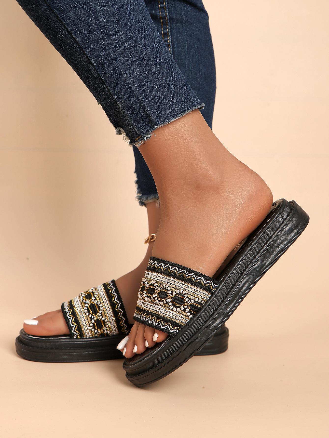Sudeste Asiático Exportação Tamanho Grande Chinelos de Sola Grossa para Mulheres Estilo Étnico Transfronteiriço Sandálias de Praia Leves Wish