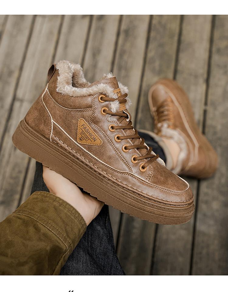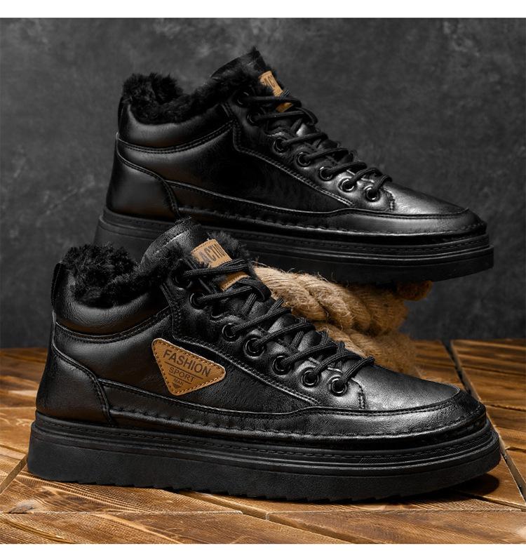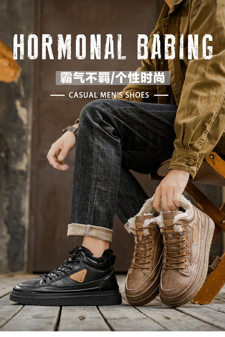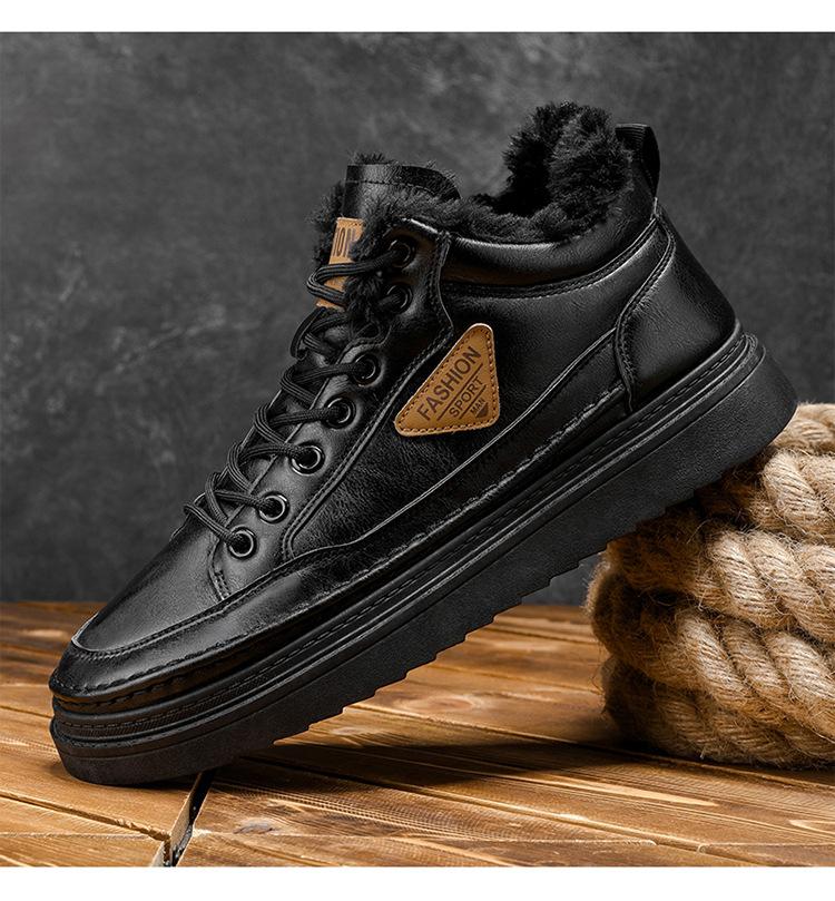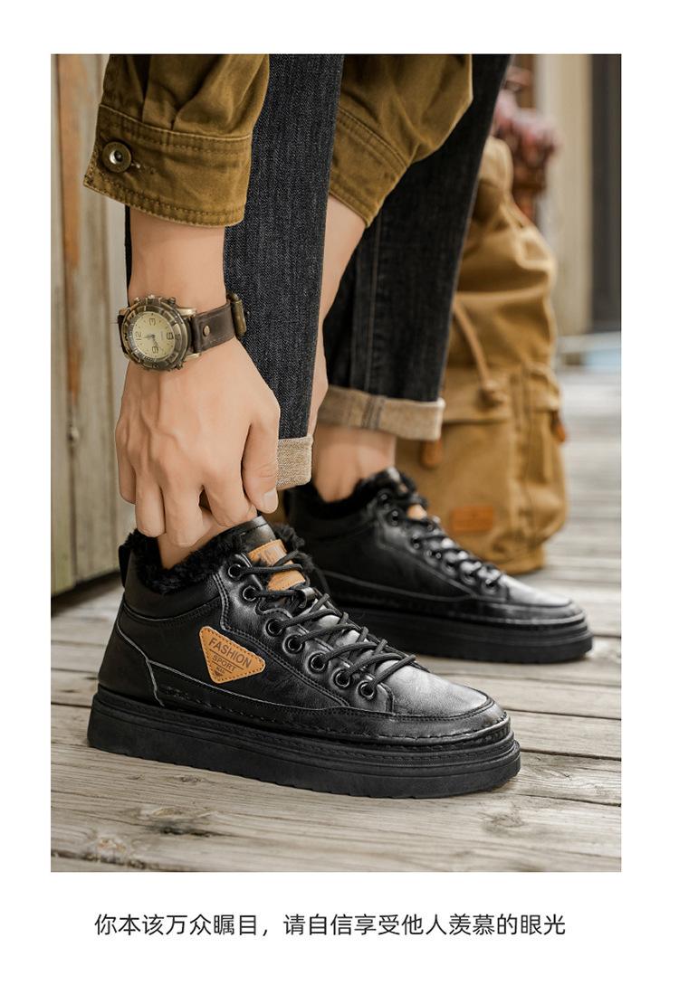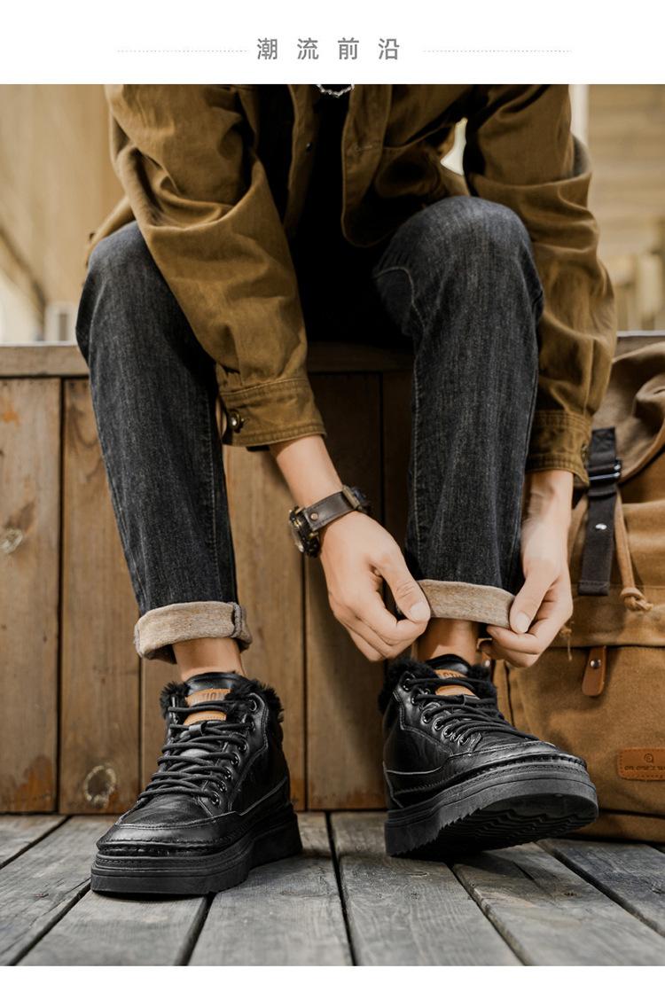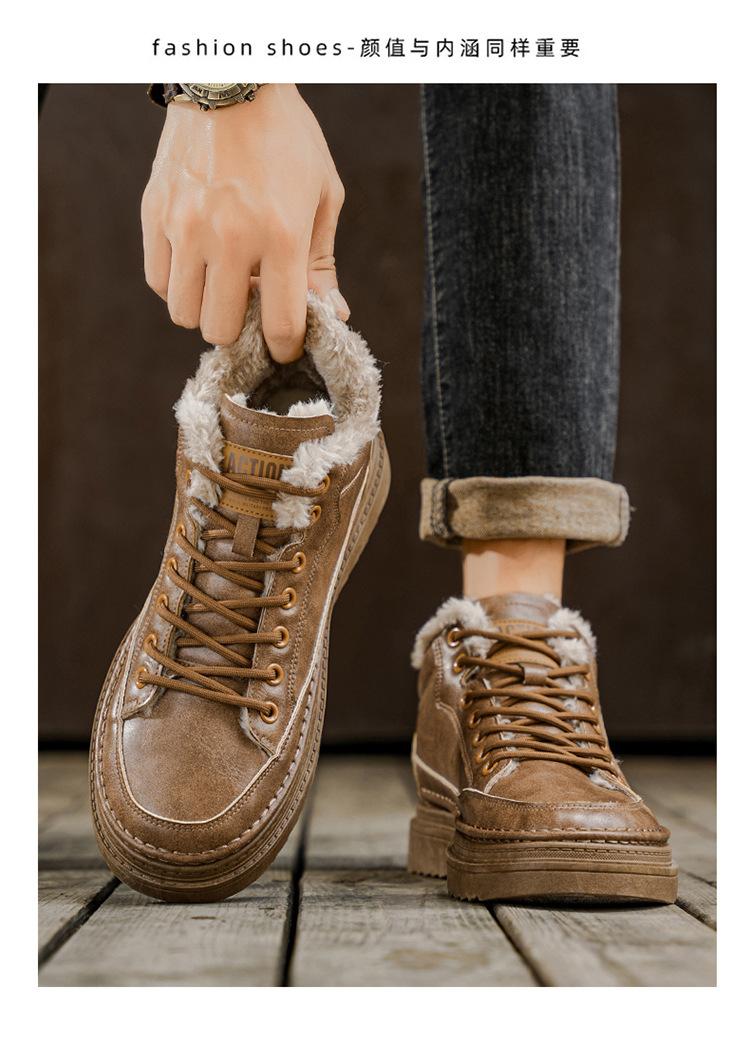 Botas Martin de inverno forradas com lã sapatos masculinos novas botas de trabalho modernas versáteis grossas quentes de algodão sapatos casuais botas curtas maré