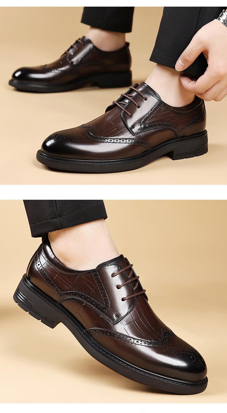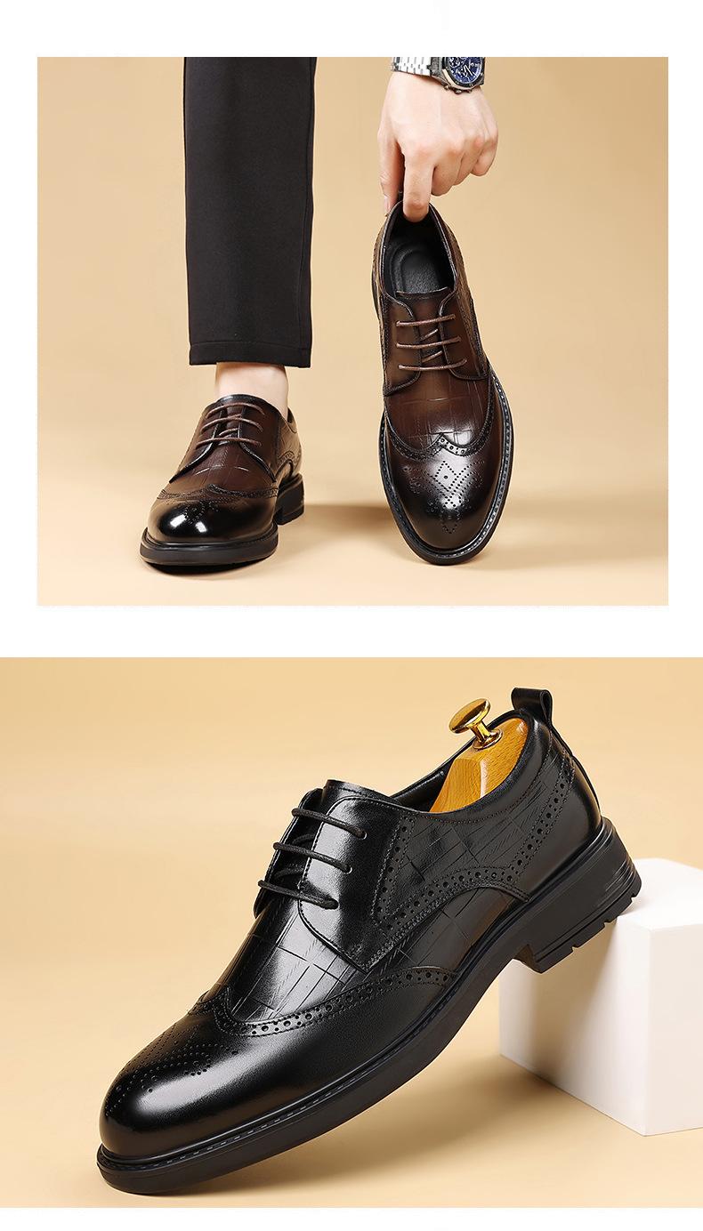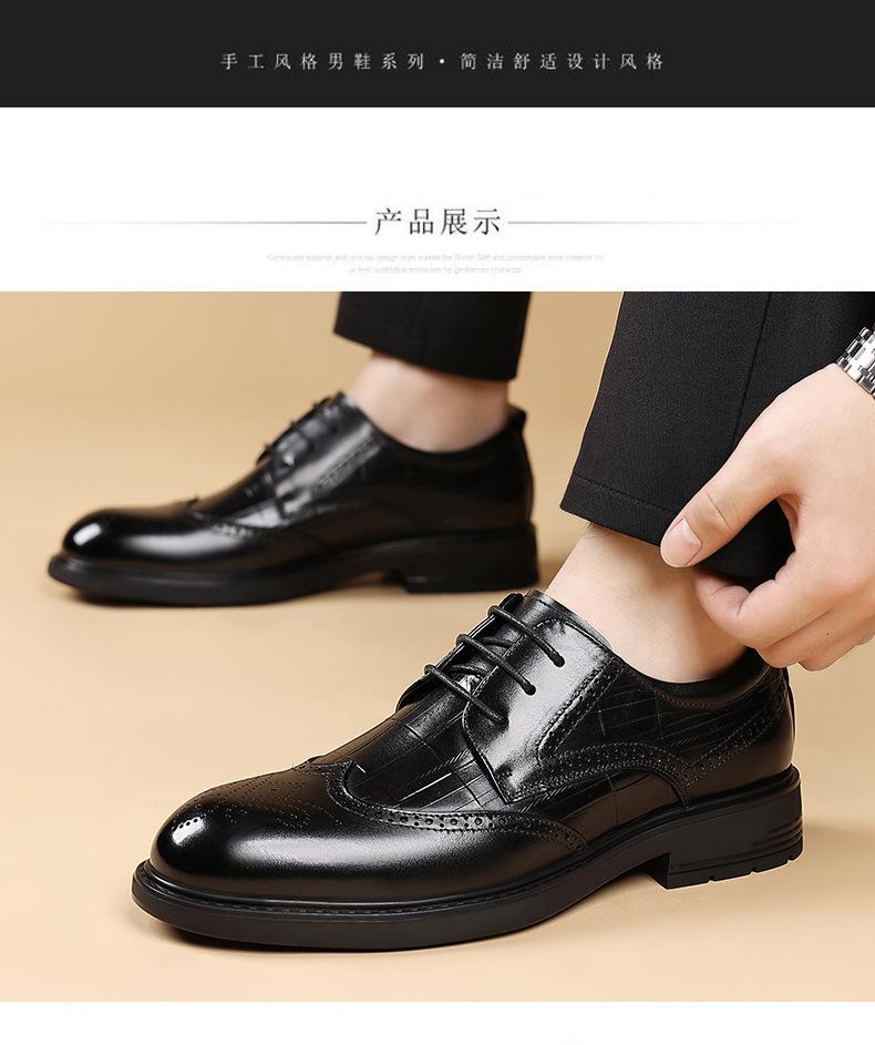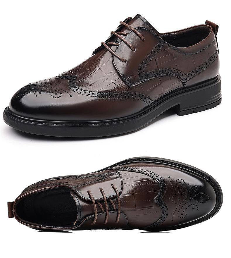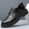 Sapatos de Couro Formais para Negócios Sapatos Casuais Masculinos Respiráveis Moda Sapatos de Casamento Brogue Esculpidos Luxo Leve Sapatos Masculinos Couro Genuíno Sapatos Masculinos
