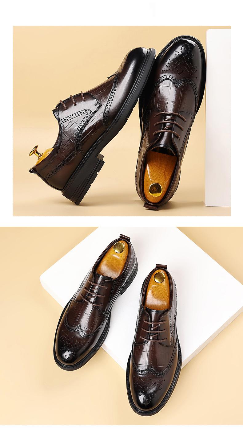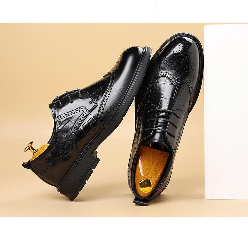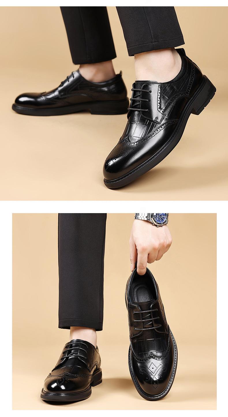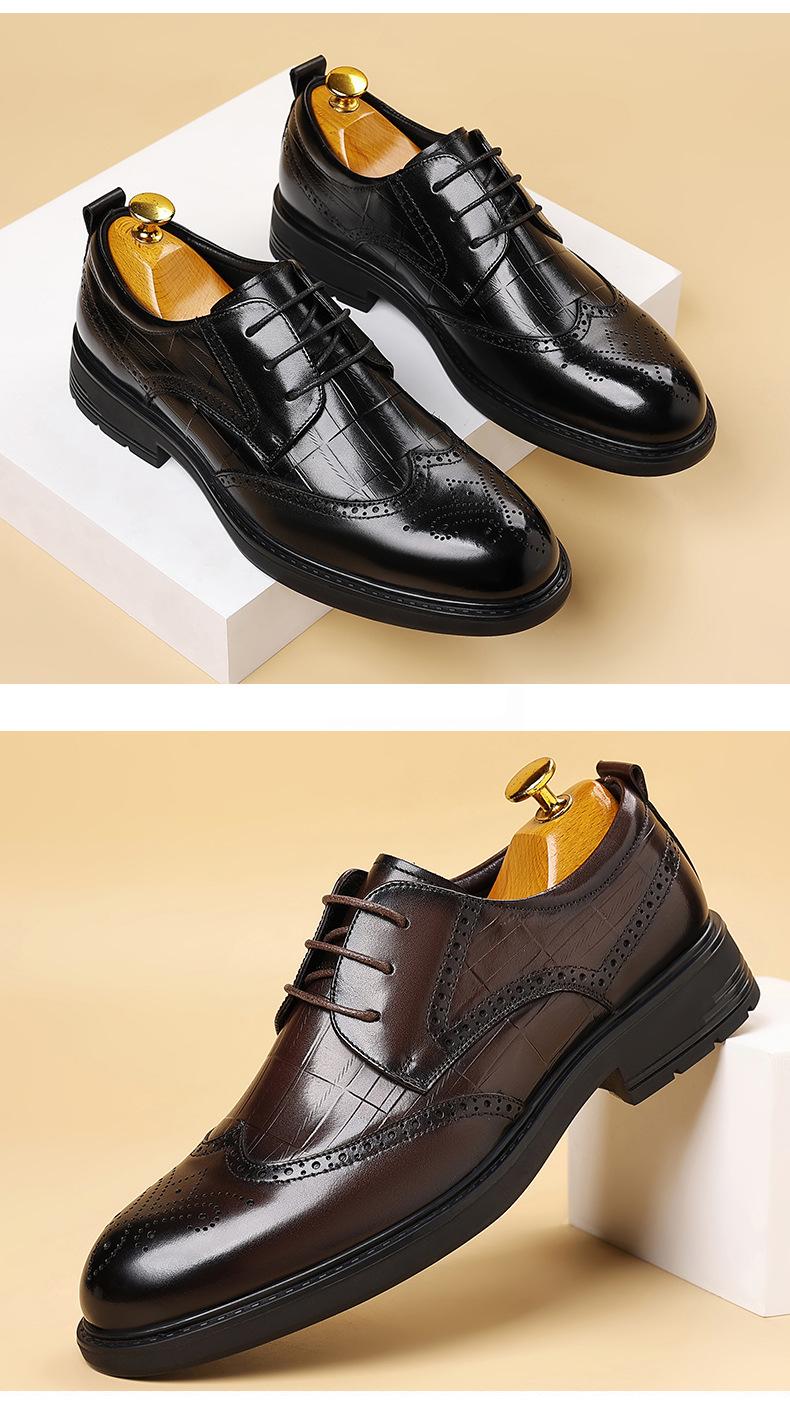 Sapatos de Couro Formais para Negócios Sapatos Casuais Masculinos Respiráveis Moda Sapatos de Casamento Brogue Esculpidos Luxo Leve Sapatos Masculinos Couro Genuíno Sapatos Masculinos
