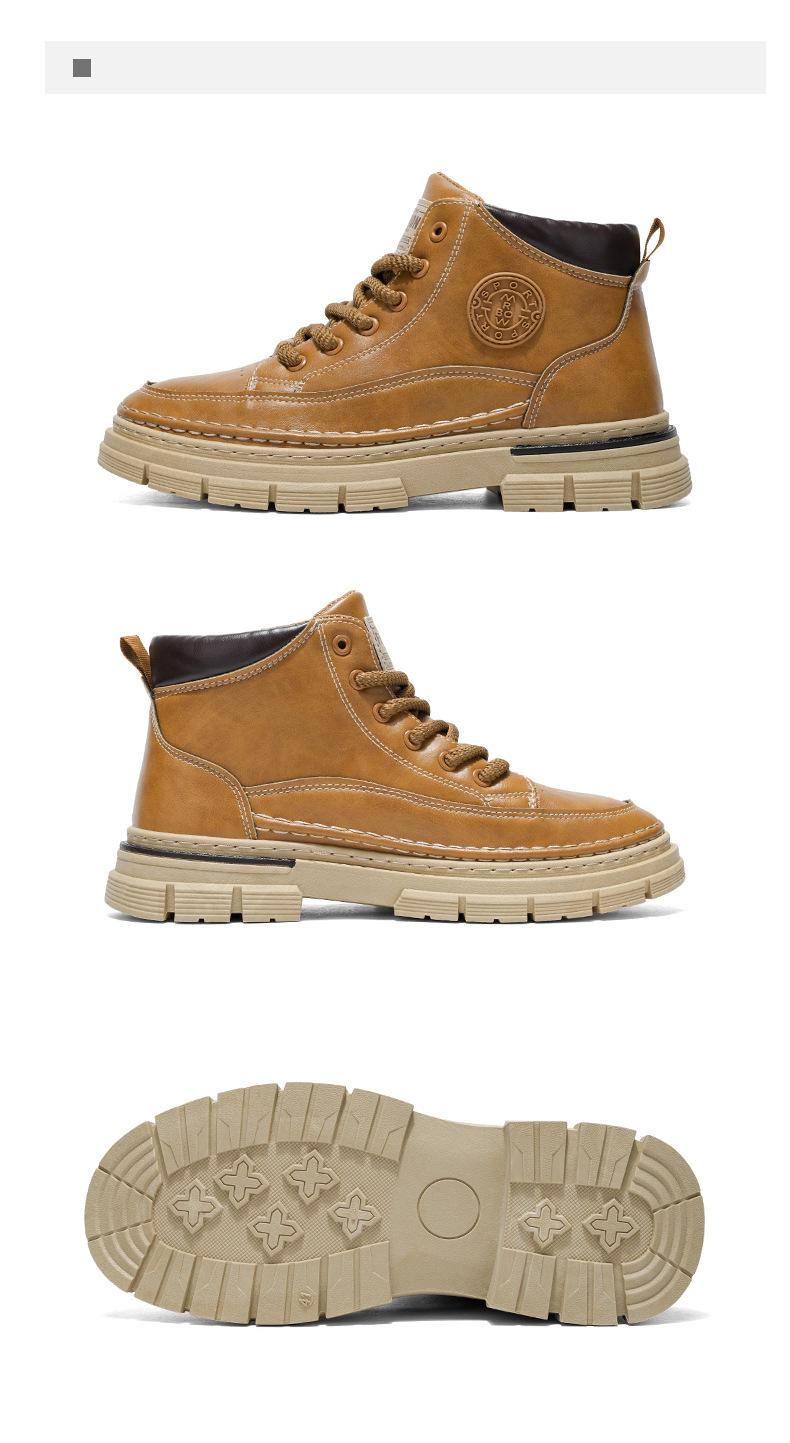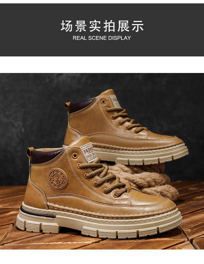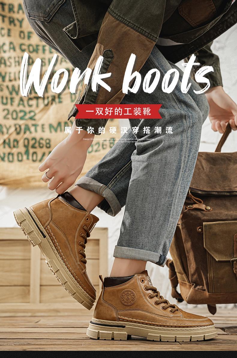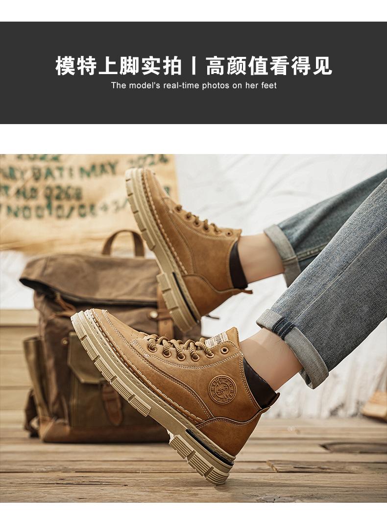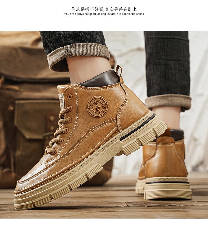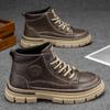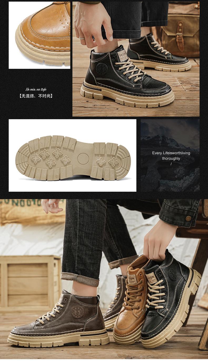 Botas Masculinas Cano Alto Outono Estilo Britânico Retrô Couro Genuíno Sapatos Casuais de Couro Masculinos Cano Médio com Aumento Impermeáveis Botas de Trabalho