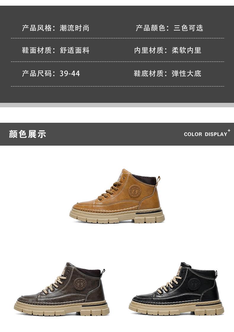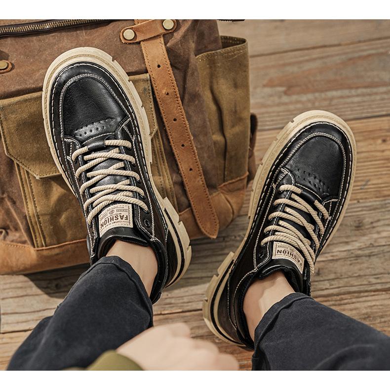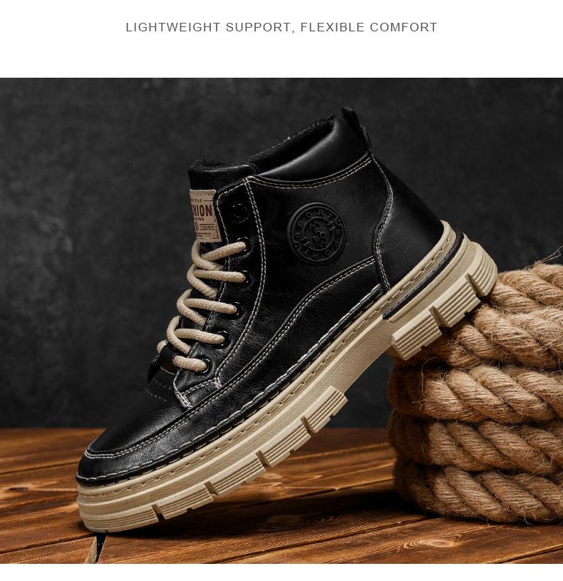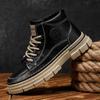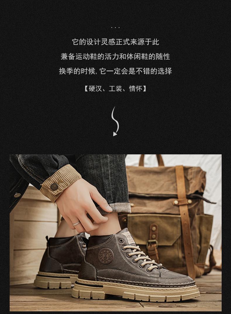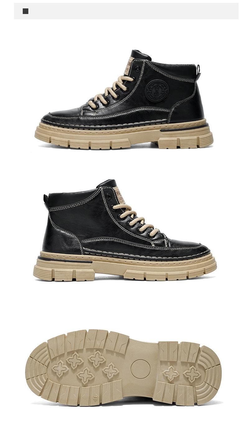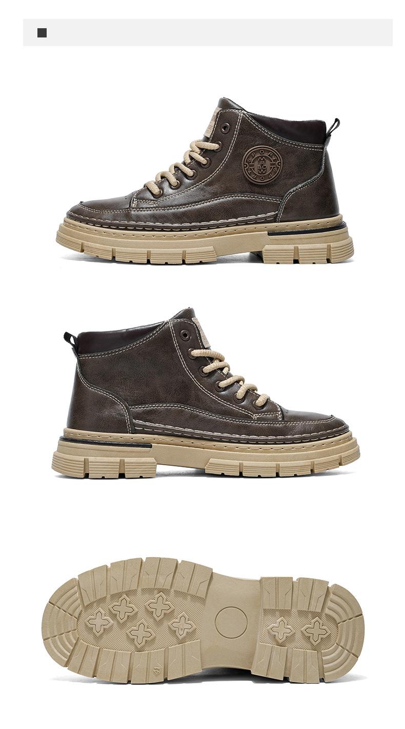 Botas Masculinas Cano Alto Outono Estilo Britânico Retrô Couro Genuíno Sapatos Casuais de Couro Masculinos Cano Médio com Aumento Impermeáveis Botas de Trabalho
