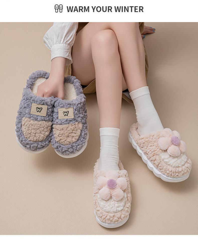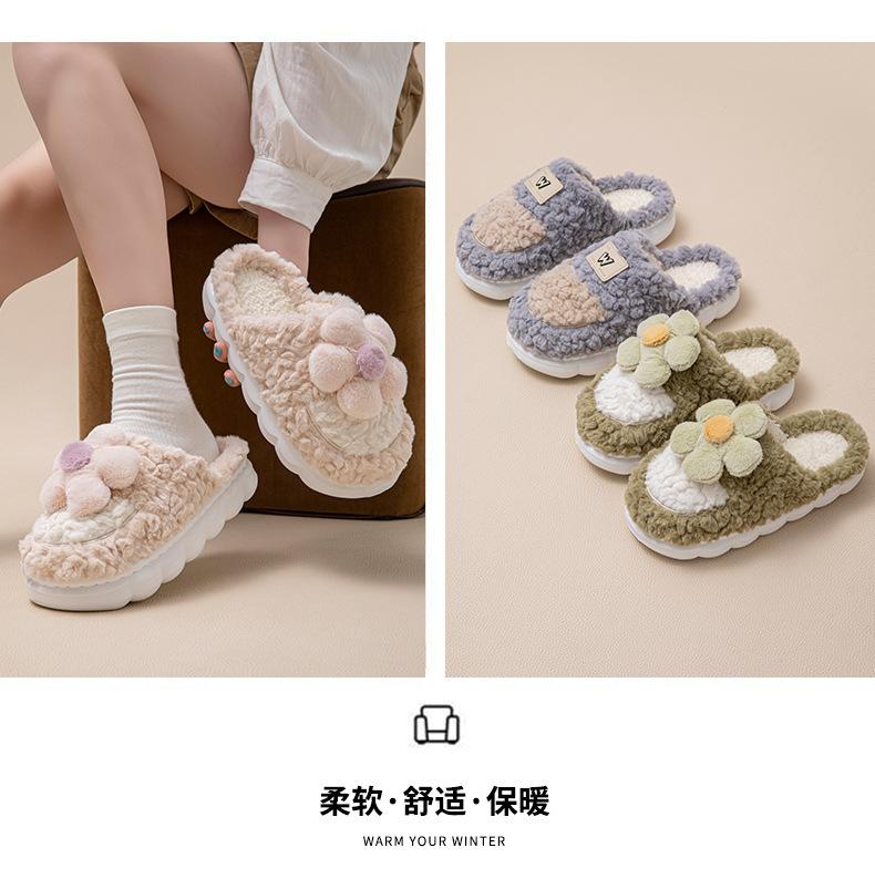 Atacado chinelos de algodão femininos inverno 2025 novo sola grossa interior casa pelúcia quente bico fechado meio chinelo masculino
