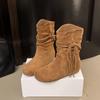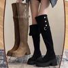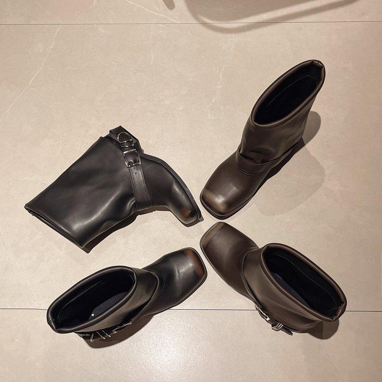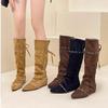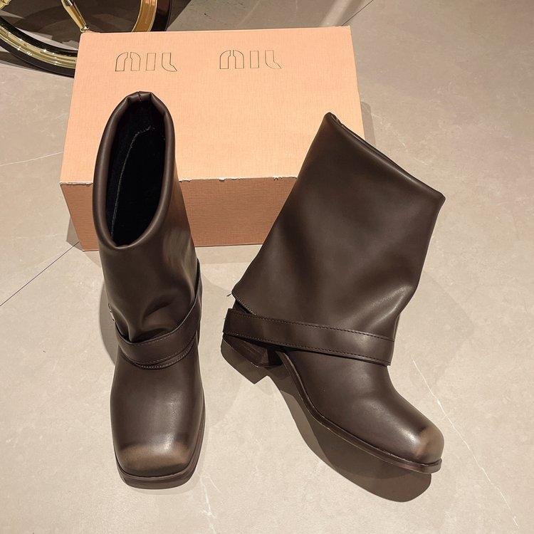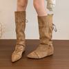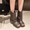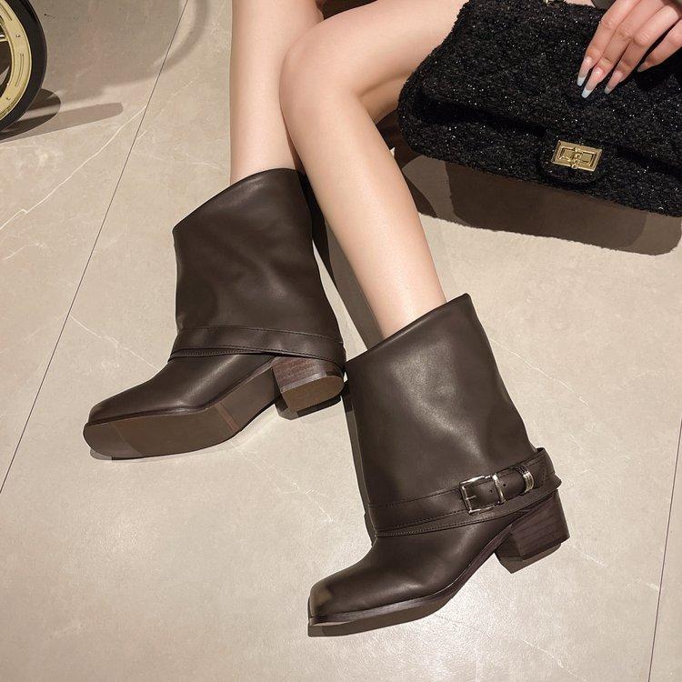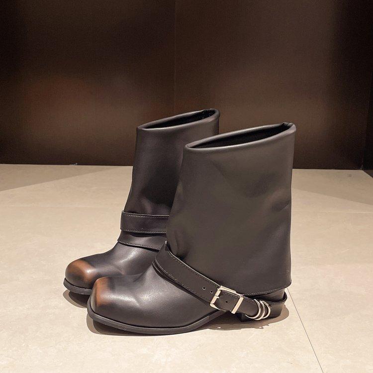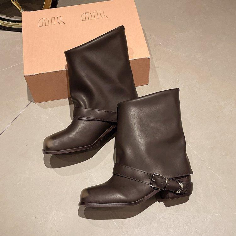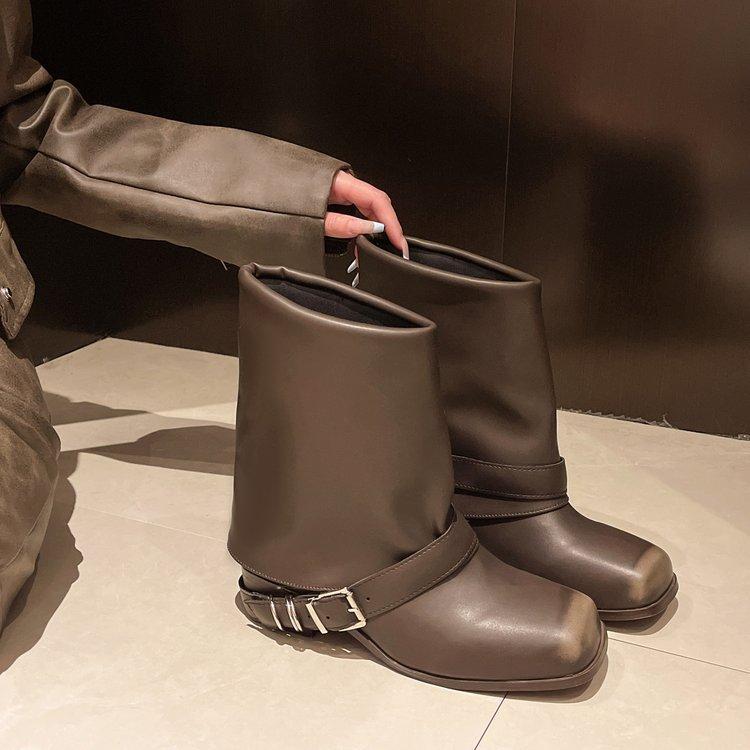 Estilo Celebridade Calças Hot Girl Botas de Cano Moda Estilo Wasteland Enrugadas Tira com Fivela Botas Cowboy Ocidentais Botins