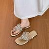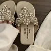 Sandálias dedo do pé estilo fada versátil mulheres verão novas sandálias estilo boêmio chinelos de pérola sapatos de praia mulheres