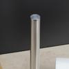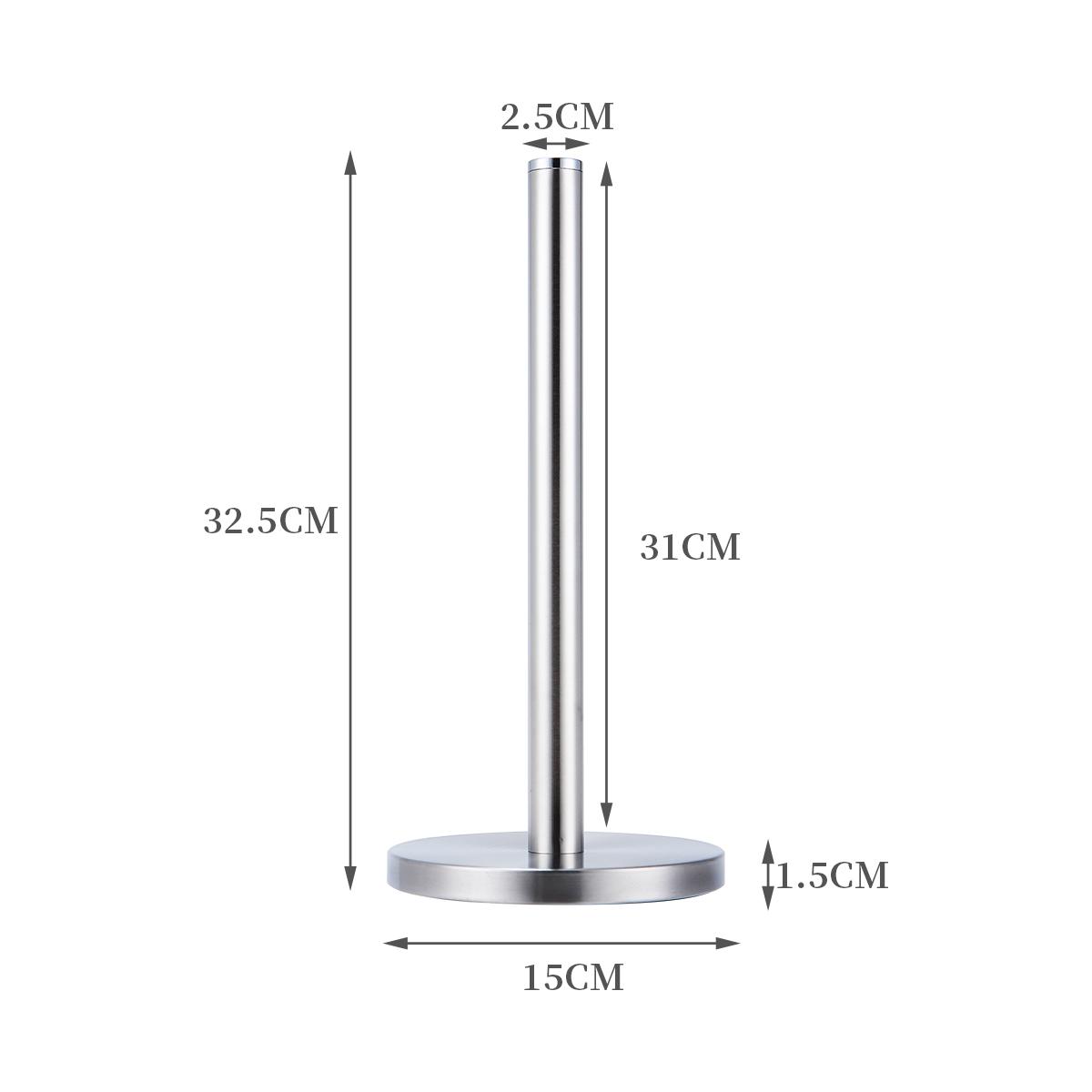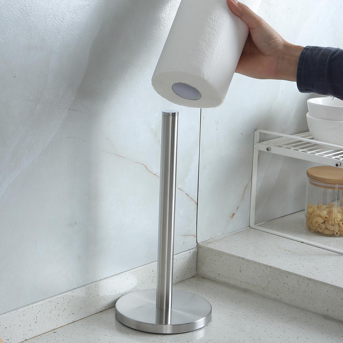O porta-lenços é feito de aço inoxidável. Apresentando um design de pilar elevado, acomoda os tamanhos de rolo mais comuns. O topo inclui uma estrutura anti-deslocamento para evitar que o papel escorregue, enquanto uma faixa de retenção de armazenamento na lateral ajuda a organizar as bordas soltas do papel.. Simples no design, mas atencioso nos detalhes, é um organizador de rolo de papel higiênico ideal para seu banheiro, sala de estar ou cozinha.