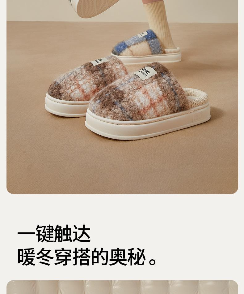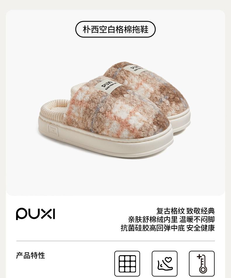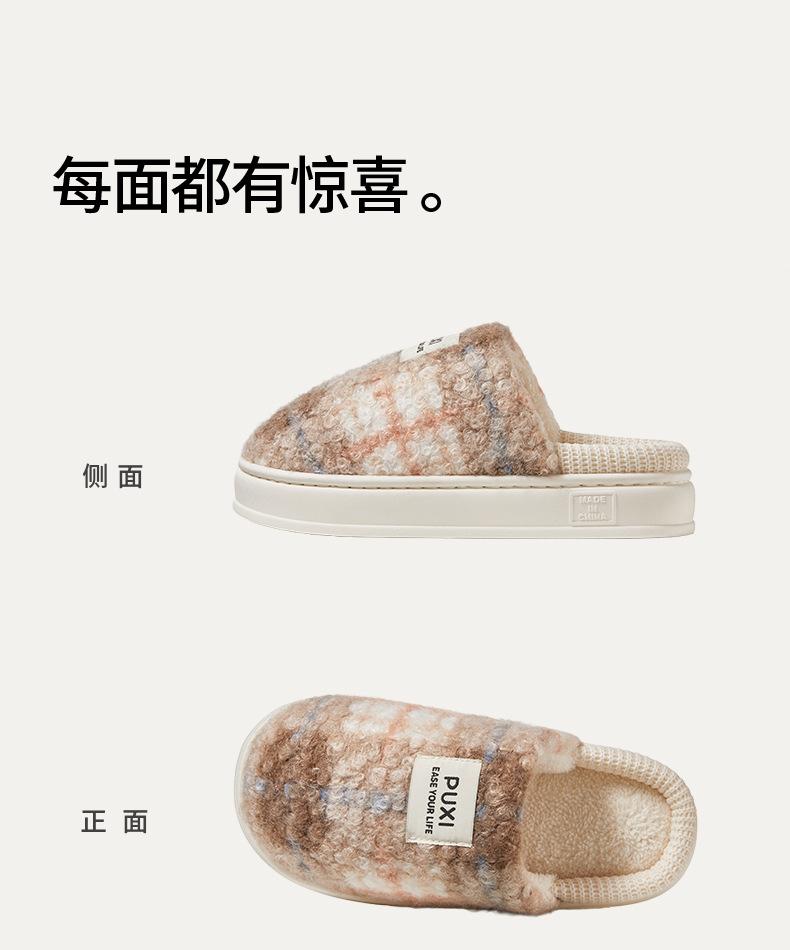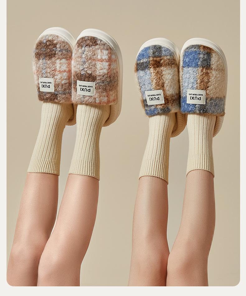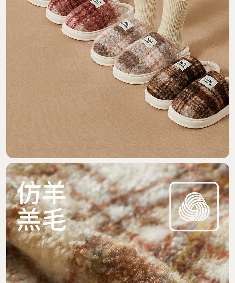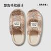 Chinelo de Algodão Xadrez Puxi Feminino Inverno Casual Quente Antibacteriano Antiderrapante Forrado com Lã Espessado Casal