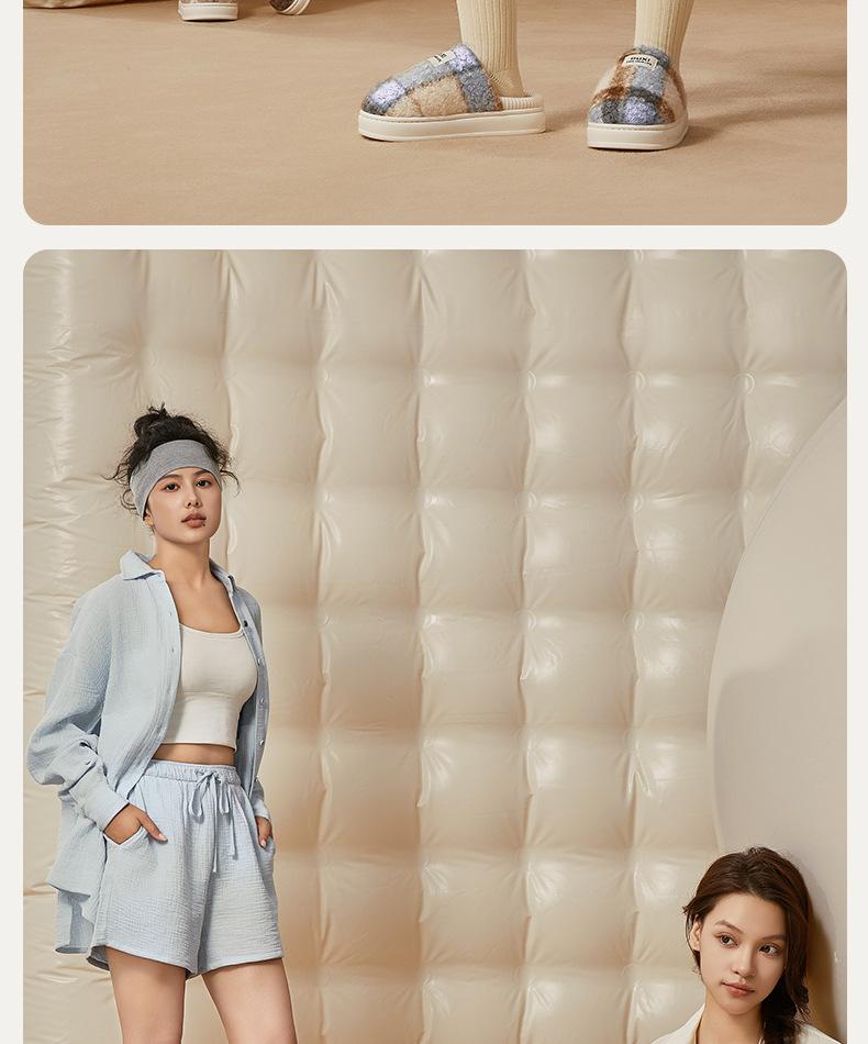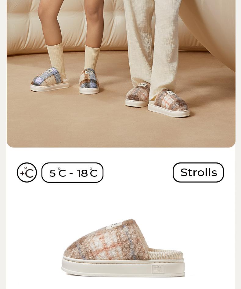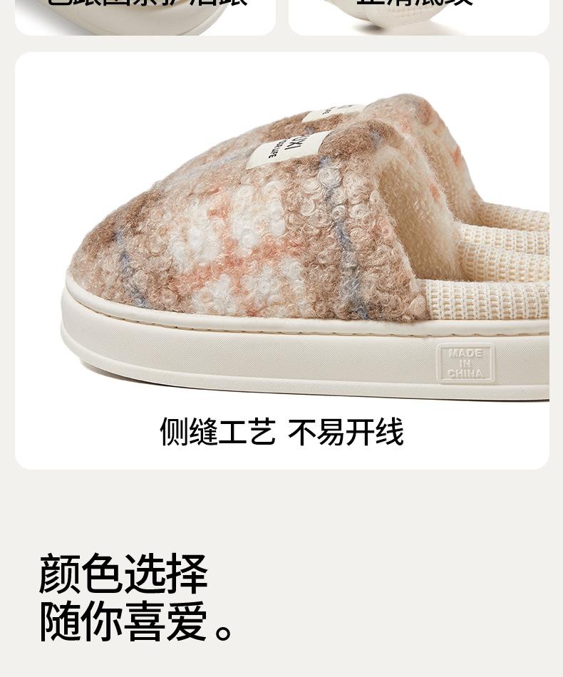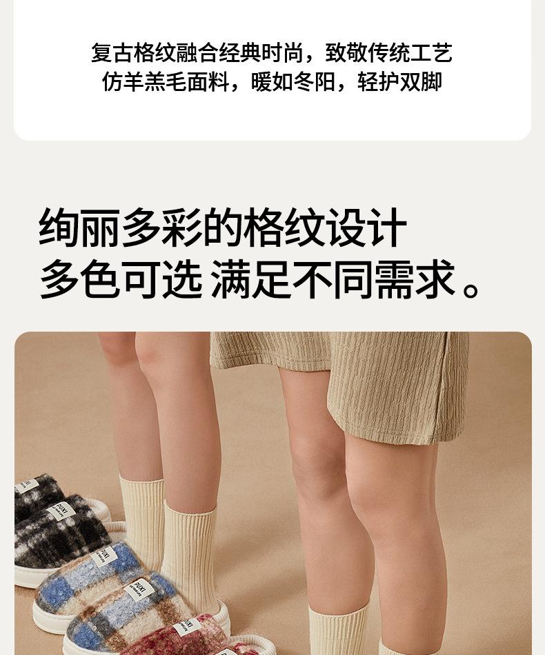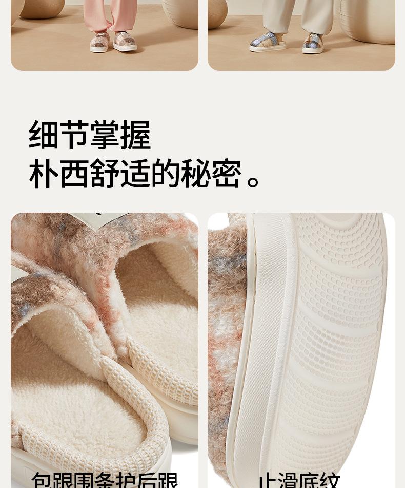 Chinelo de Algodão Xadrez Puxi Feminino Inverno Casual Quente Antibacteriano Antiderrapante Forrado com Lã Espessado Casal