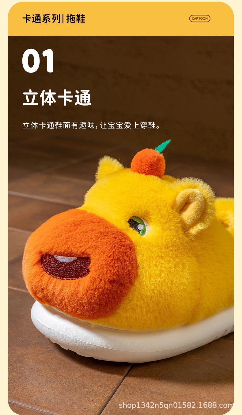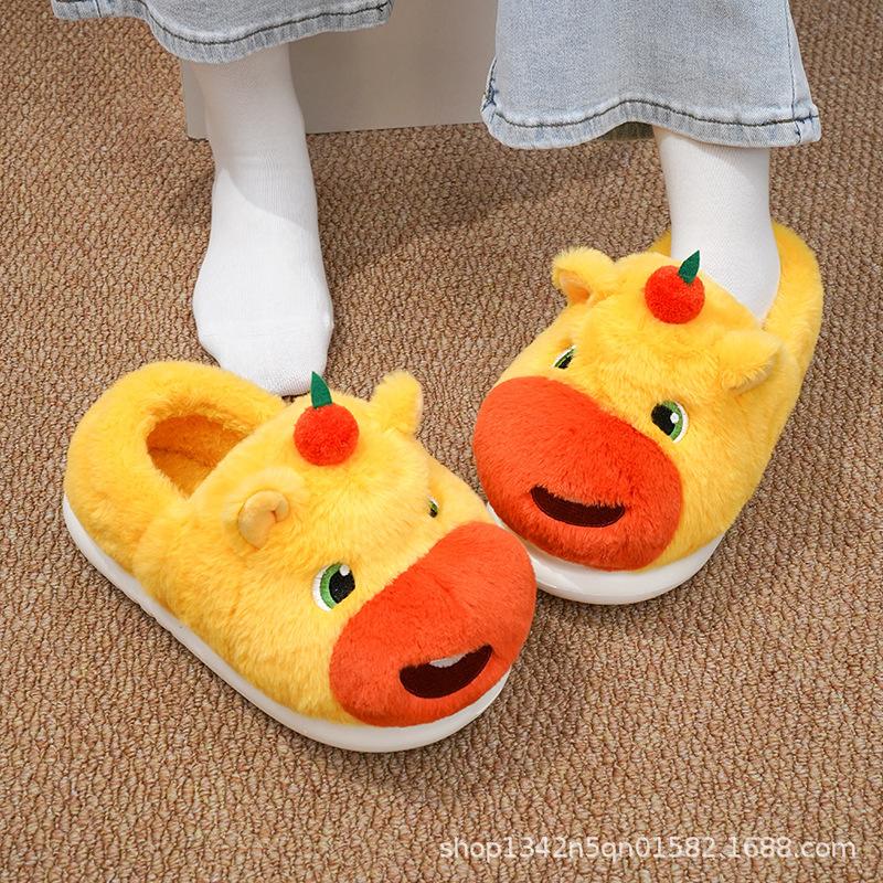 Capivara Lulu coelho e chinelos de algodão femininos outono e inverno para usar fora fofos para casa interior pelúcia quentes antiderrapantes sapatos de algodão masculinos