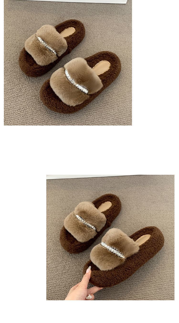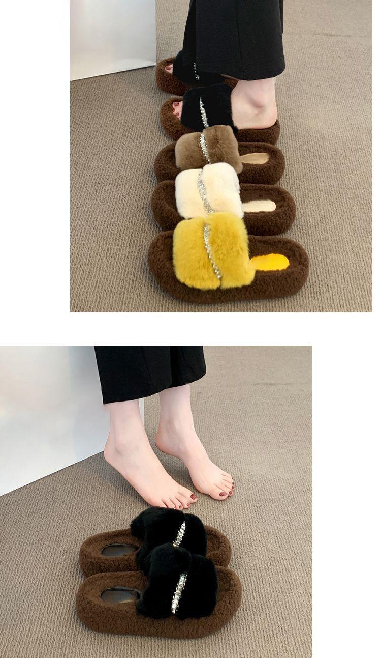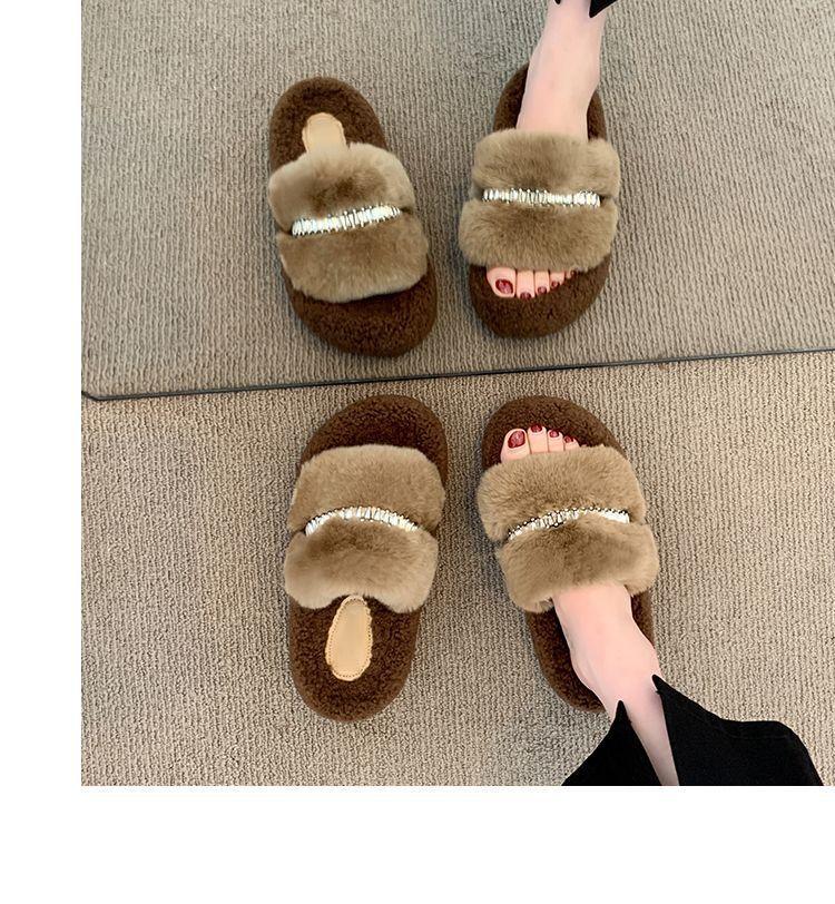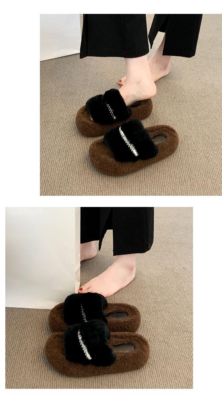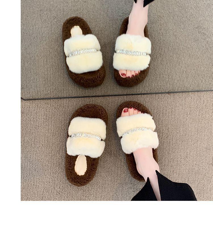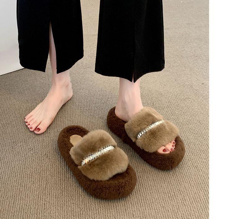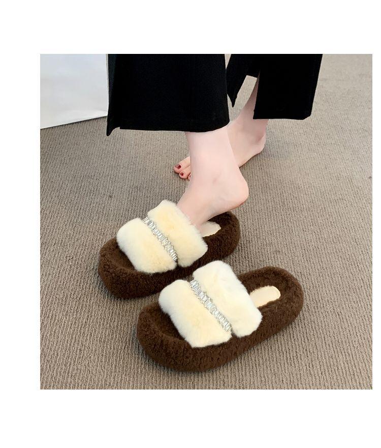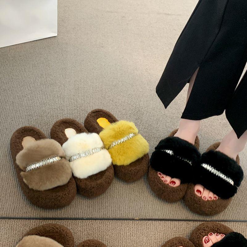 2025 Outono/Inverno Novos Chinelos Peludos de Sola Grossa Femininos Moda Versátil para Exterior/Casa Chinelos de Algodão Preguiçosos Femininos