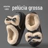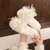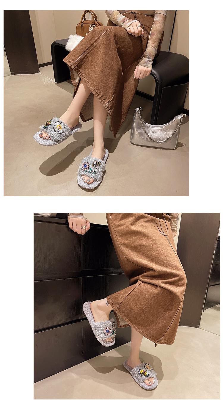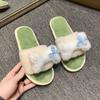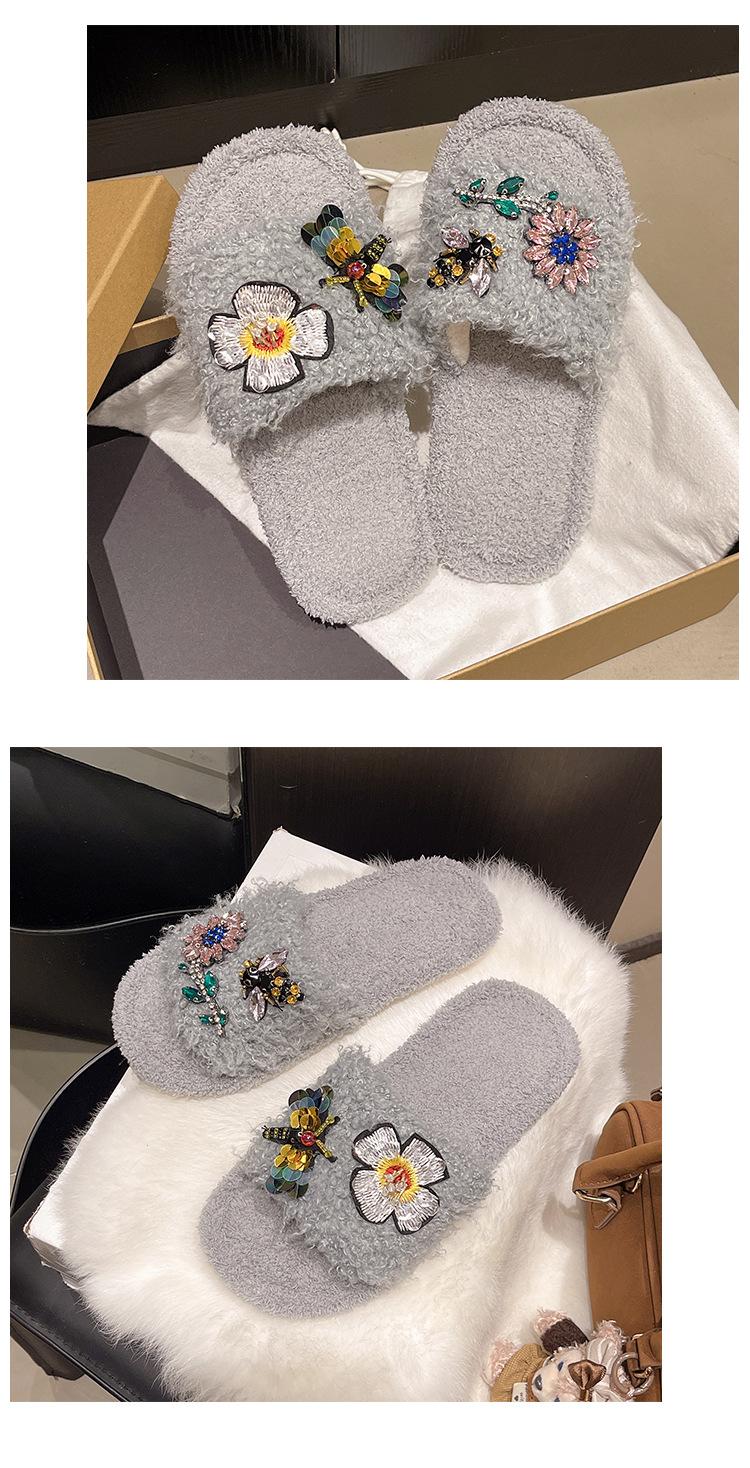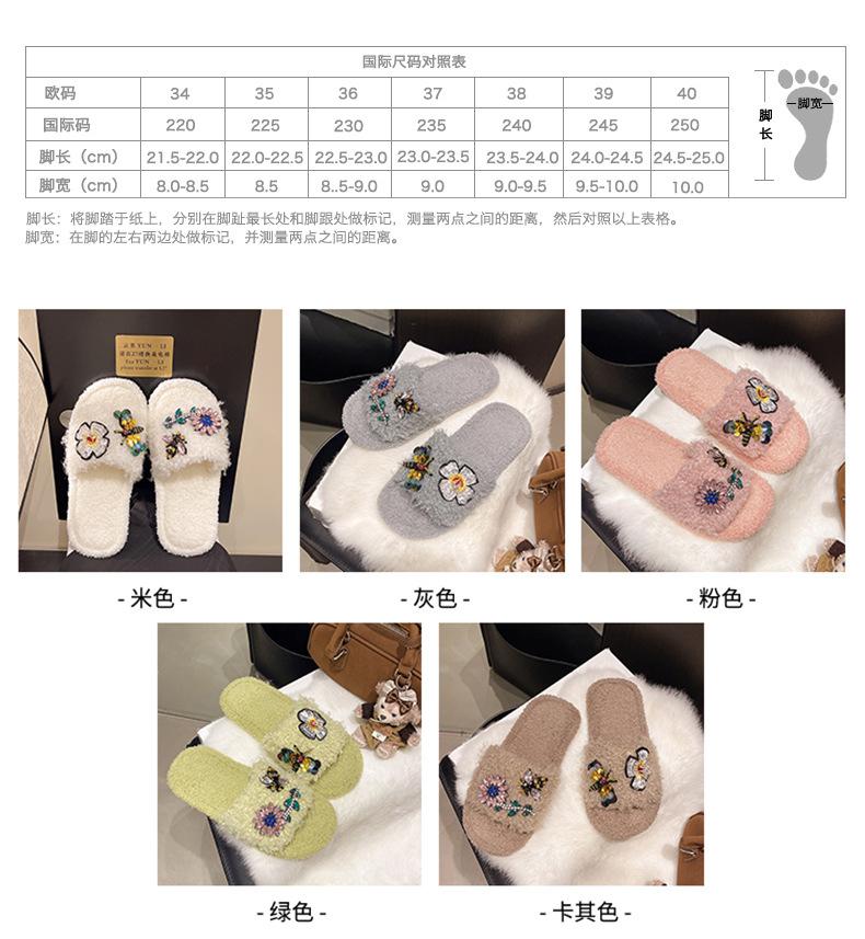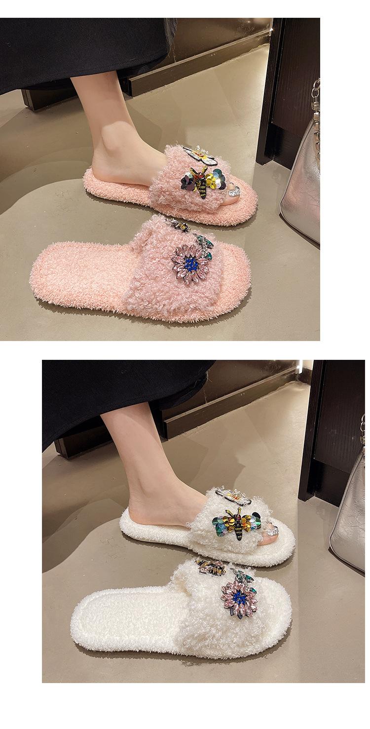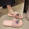 Chinelo Peludo de Inverno Feminino Estilo Coreano Strass Abelha Flor Chinelo de Casa Preguiçoso Sola Macia Chinelos de Dedo Inverno Exterior Antiderrapante Algodão