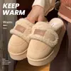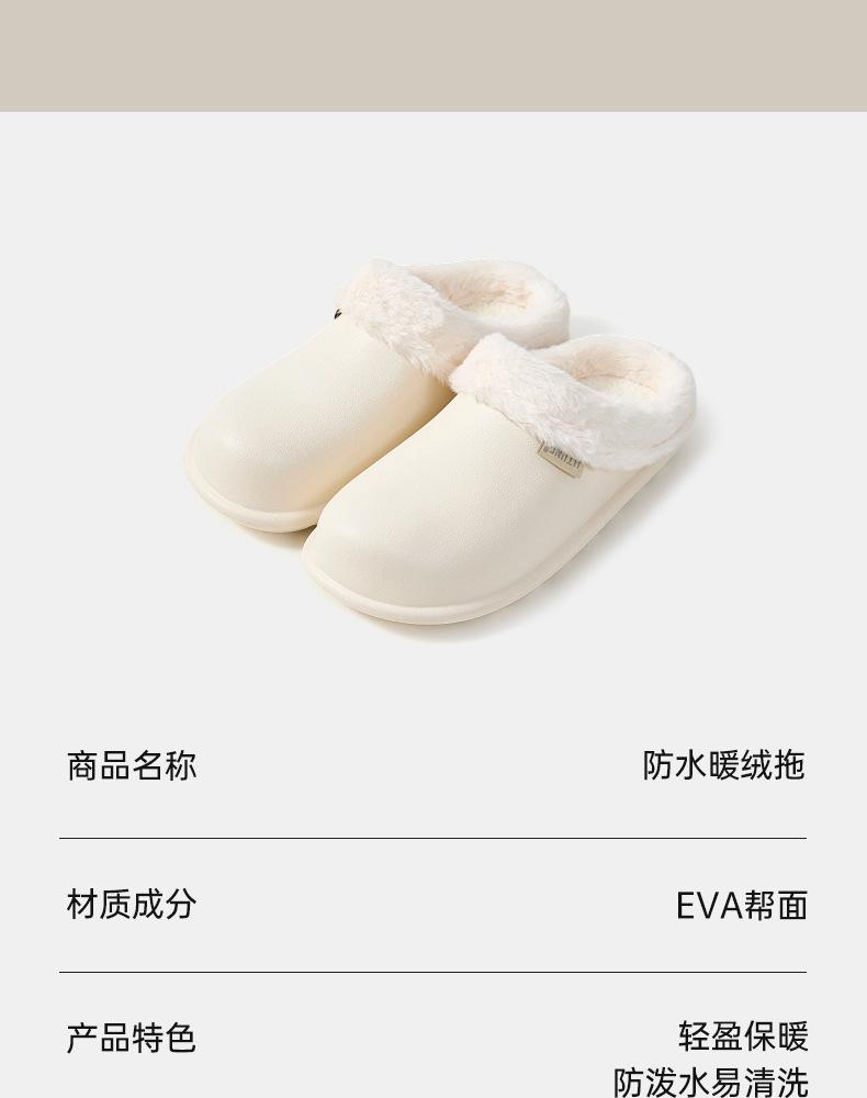 Chinelo de Algodão Impermeável Youdiao Feminino Outono e Inverno Casa Sola Macia Bico Fechado Quente Moda Casual Antiderrapante Exterior Mais Veludo