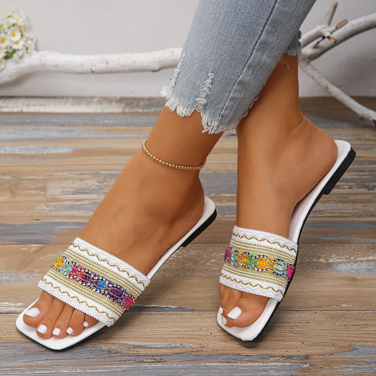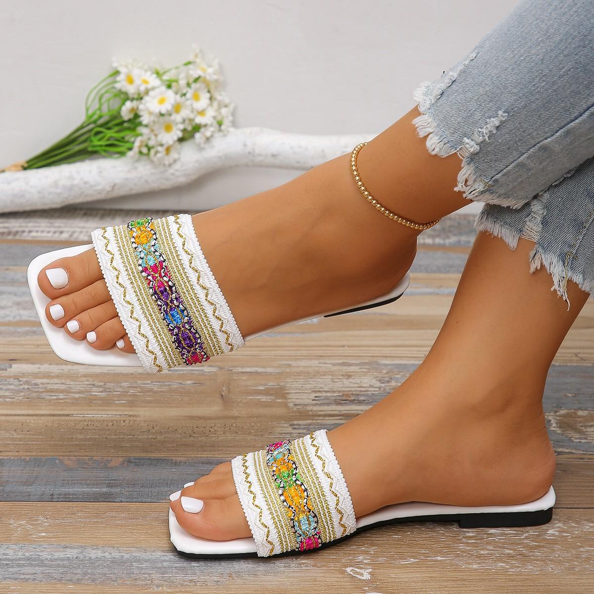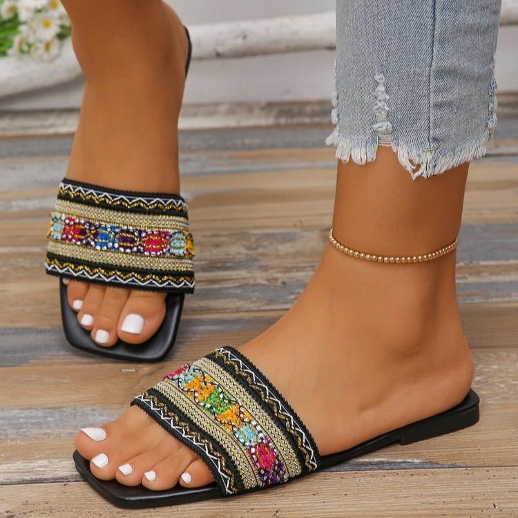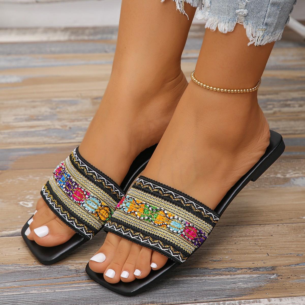 Compre Chinelos Femininos Bohemian Listrados Respiráveis Chinelos de Casa Chinelos Femininos no atacado no Joom.pro