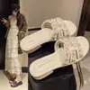 Sandálias Rasteirinhas Femininas Retrô de Praia com Pérola Estilo Casa Tira Única Chinelos Novos Verão Fada Casual