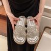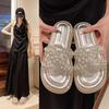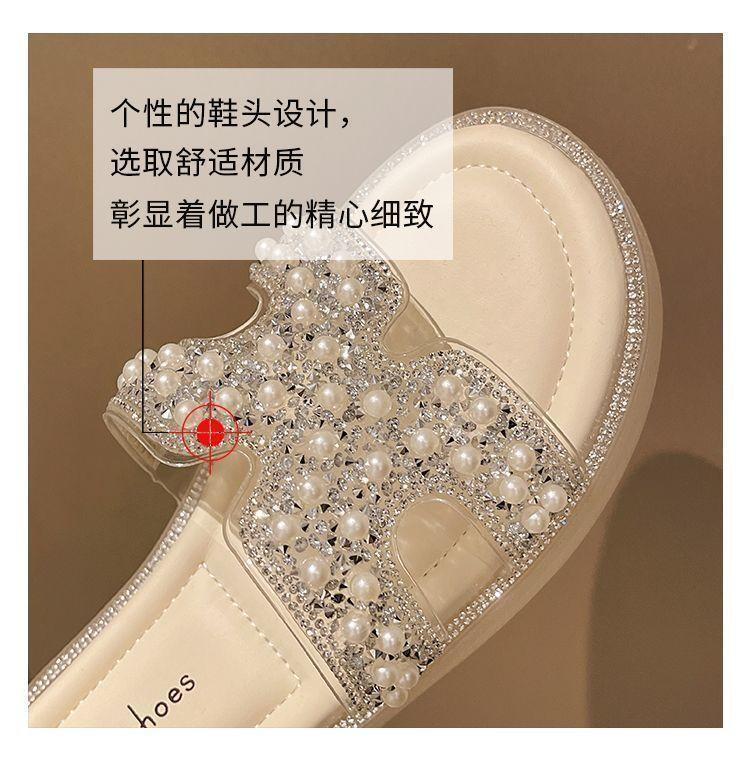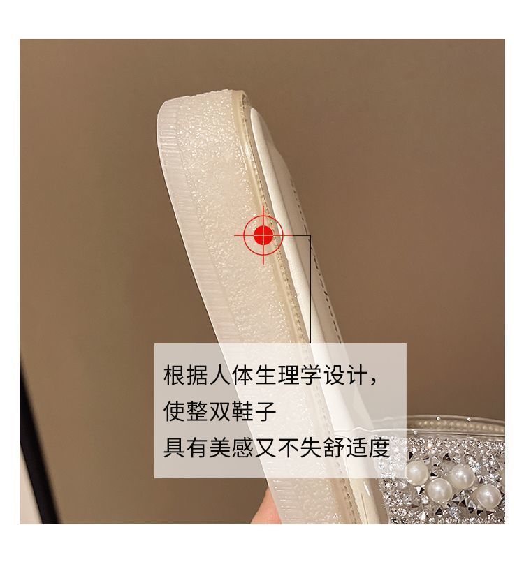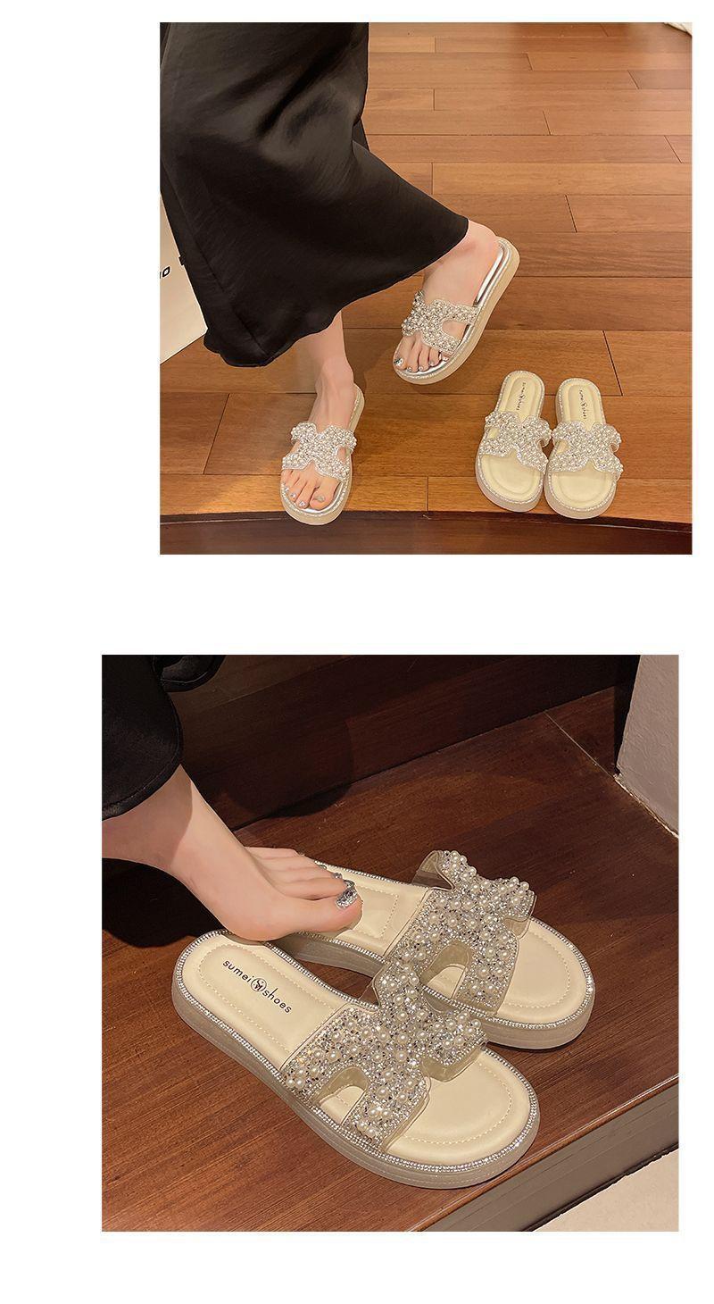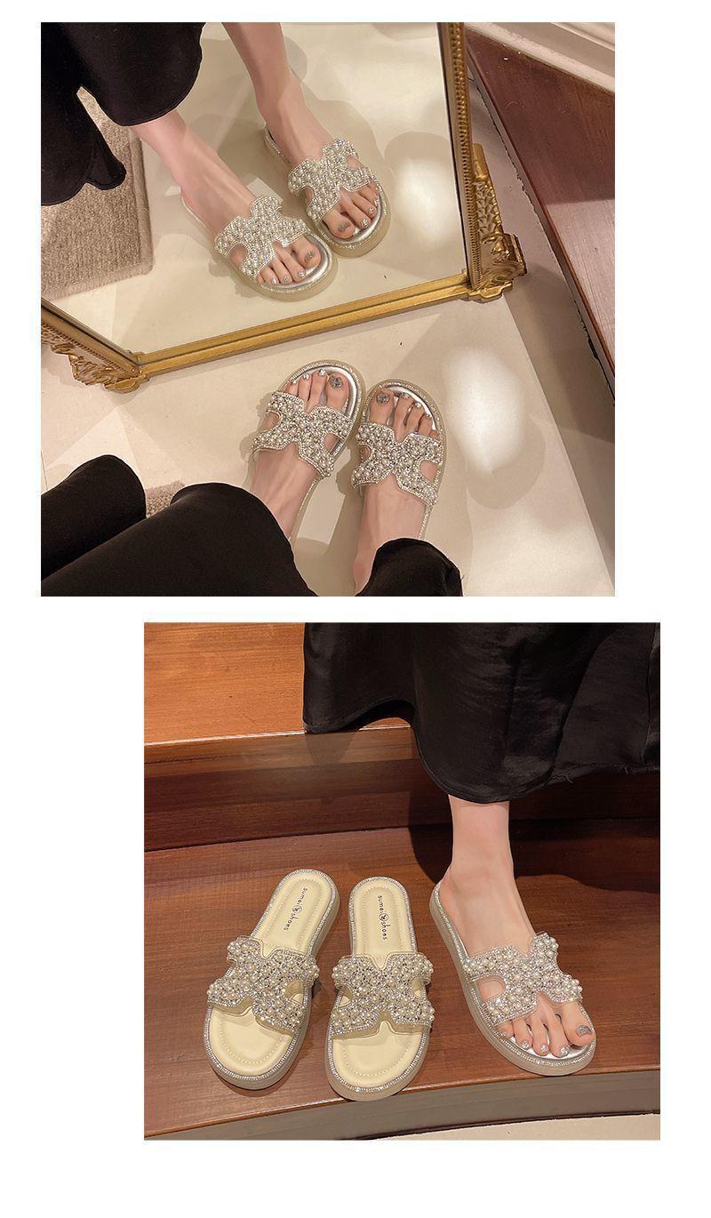 Chinelo Rasteiro Fashion Sola Grossa Pérola 2025 Novo Estilo com Vestido Fada Praia Slides de Uma Tira Uso Externo Mulher Verão