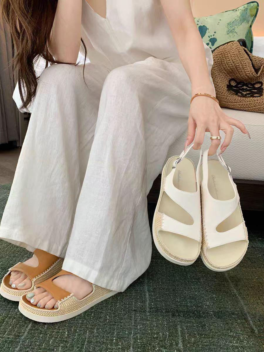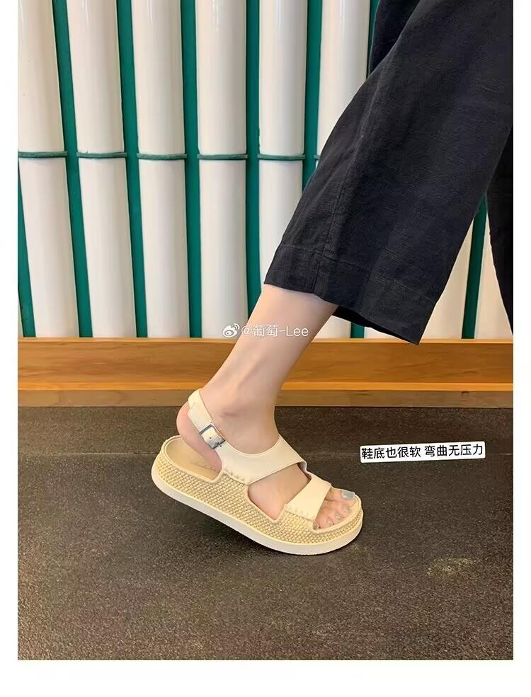 Compre Europeu e Americano Boca de Peixe Dedo Aberto Salto Alto Comércio Exterior 2025 Verão Novo Estilo Tamanho Grande Sandálias Anabela Mulher Sandálias de Tira com Fivela Mulher no atacado no Joom.pro