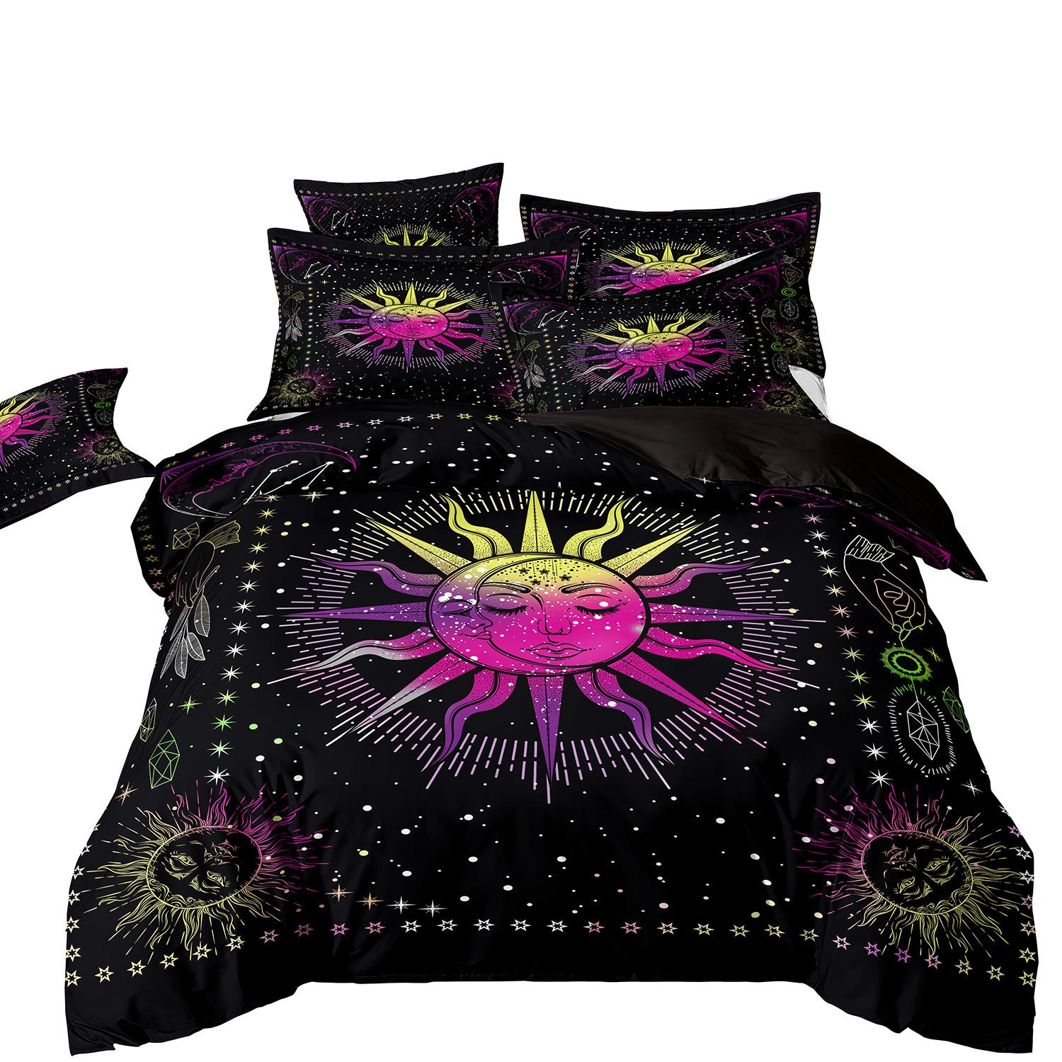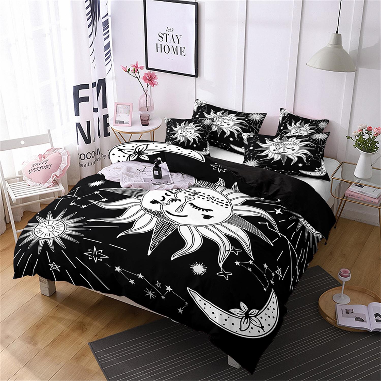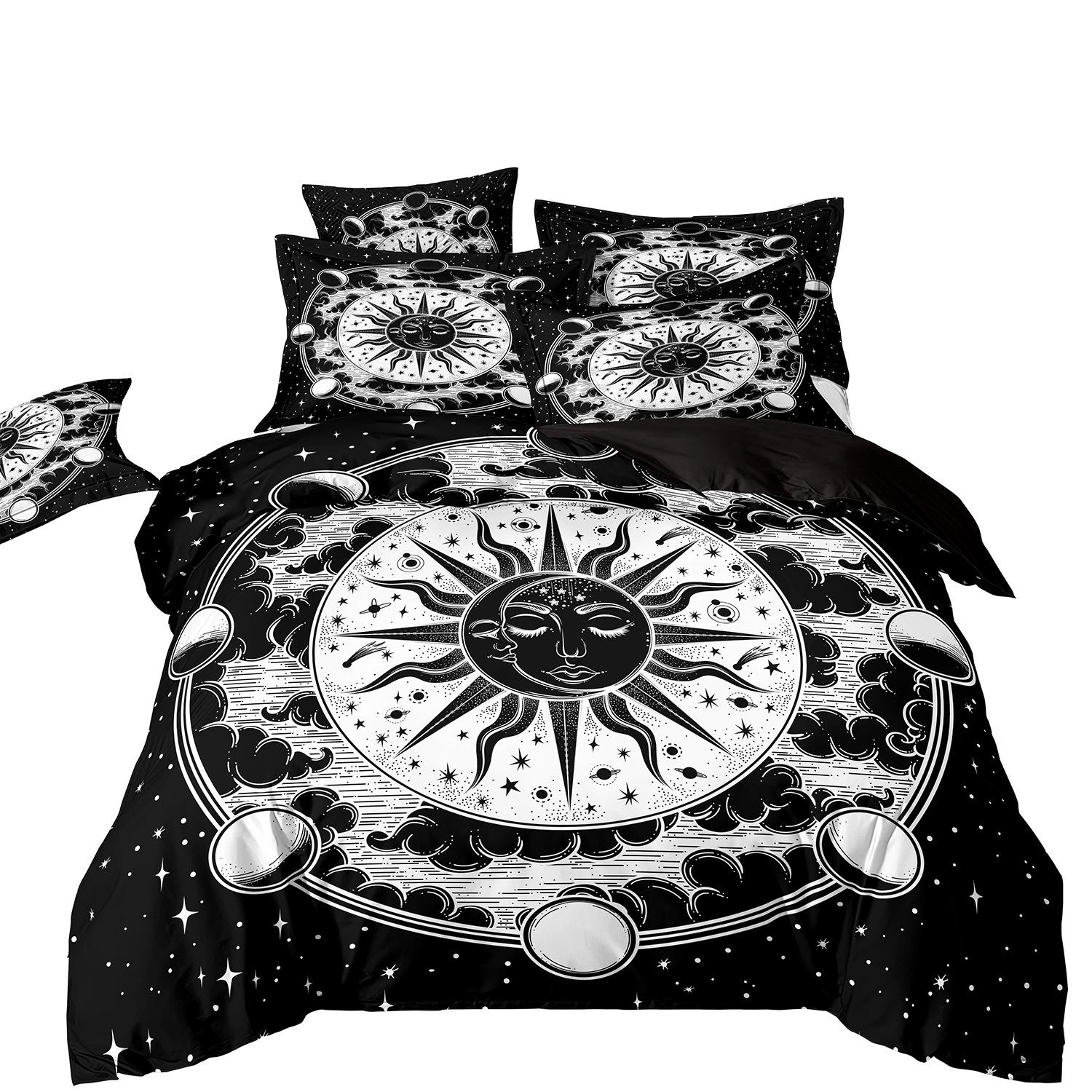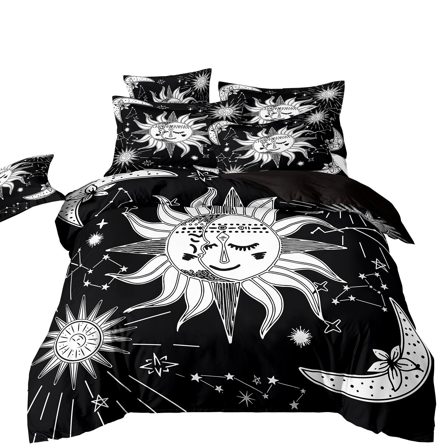 Fronteiriço AliExpress Amazon três peças impressão digital 3D roupa de cama Sol Lua capa de edredom Sol Lua Estrela