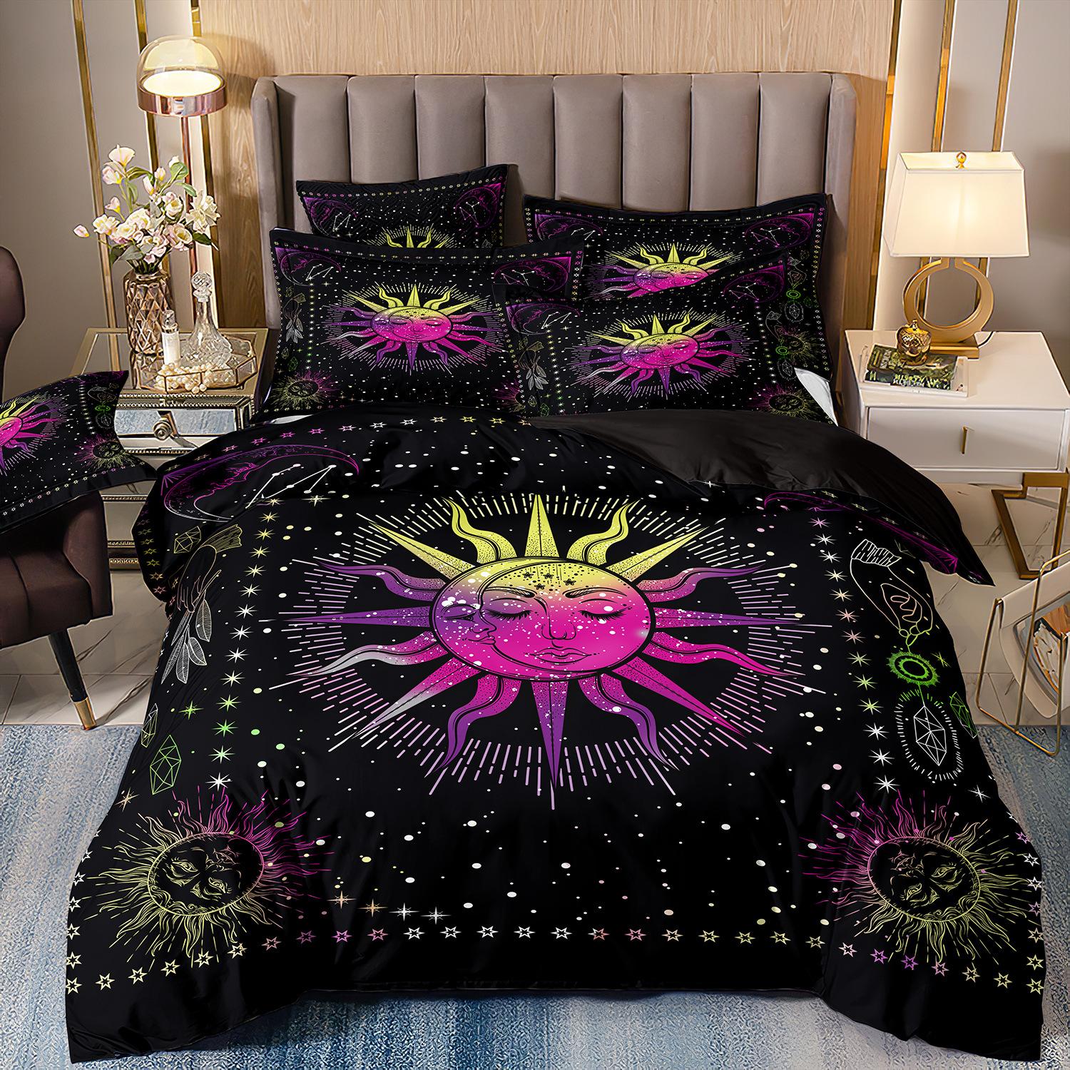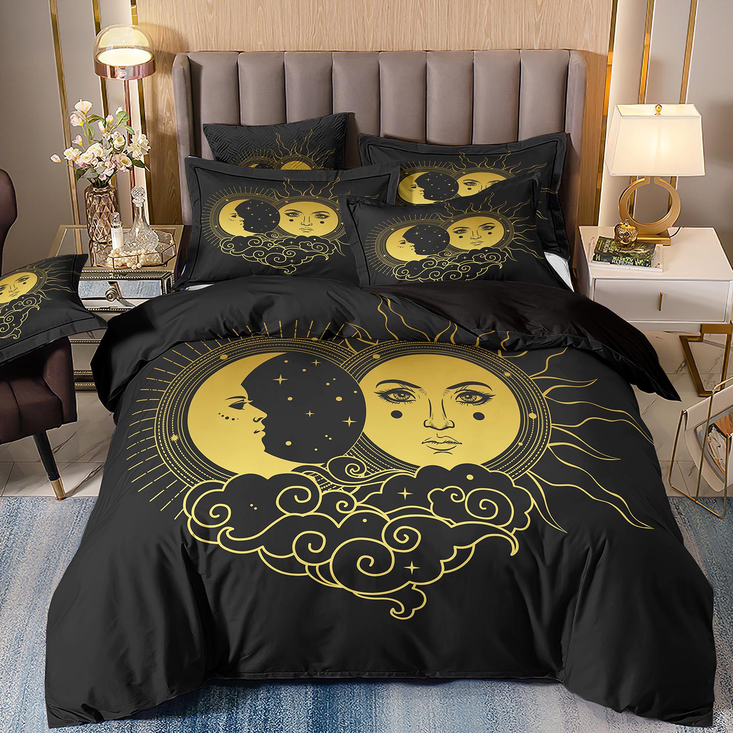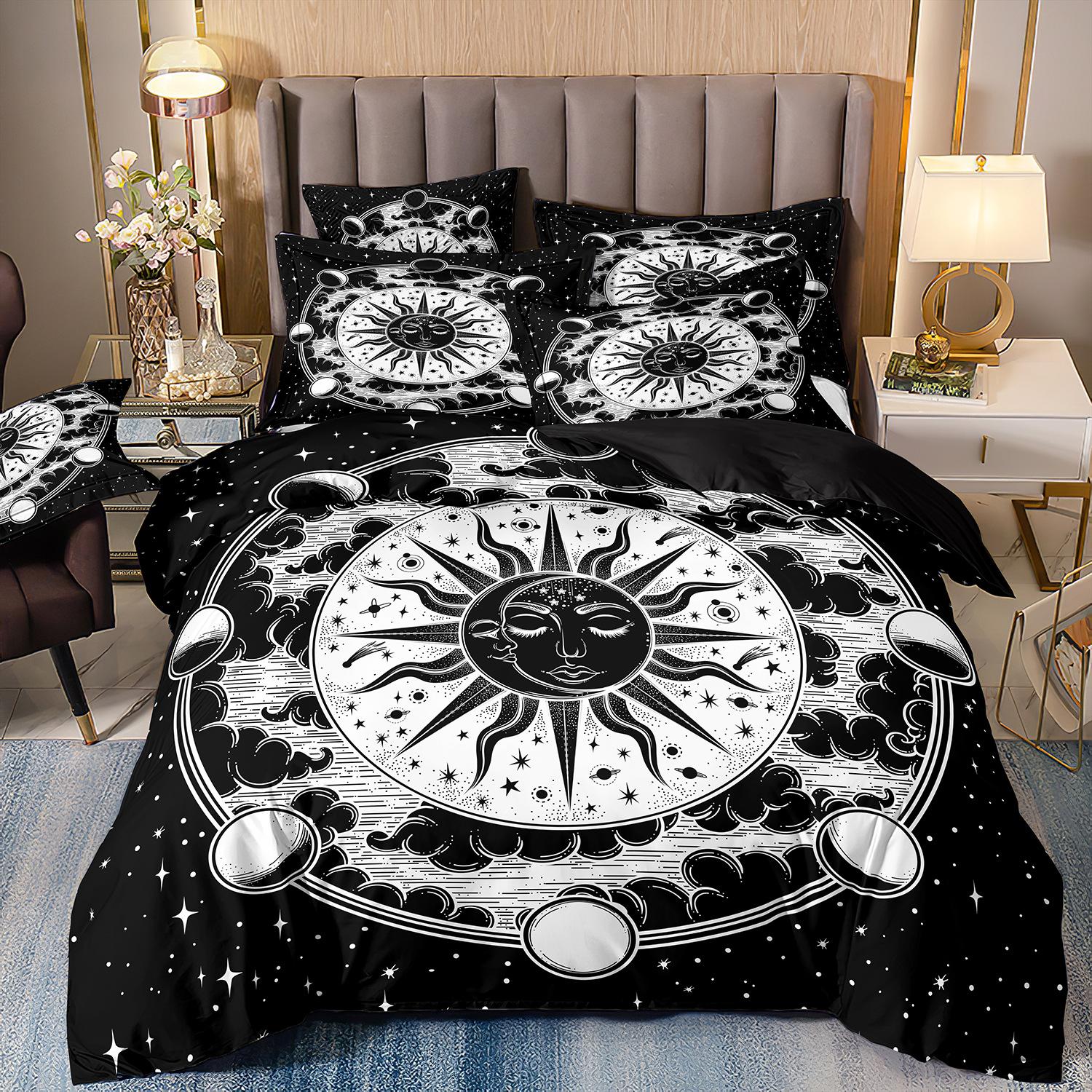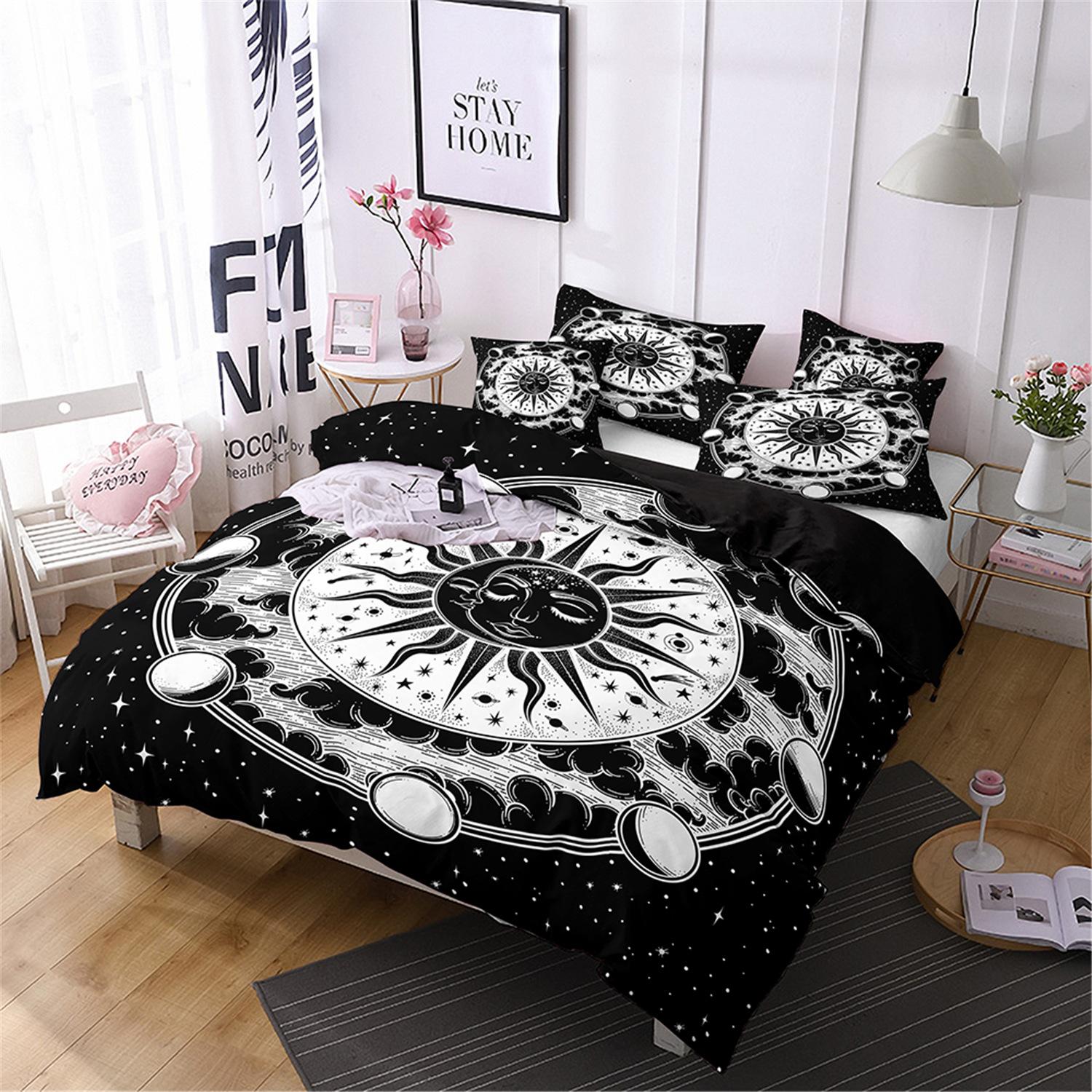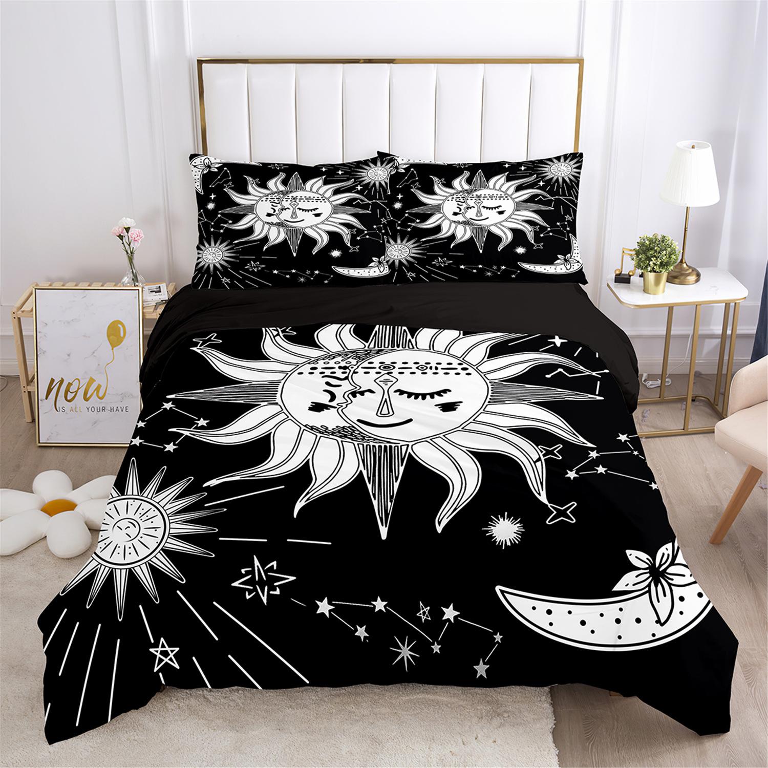 Fronteiriço AliExpress Amazon três peças impressão digital 3D roupa de cama Sol Lua capa de edredom Sol Lua Estrela