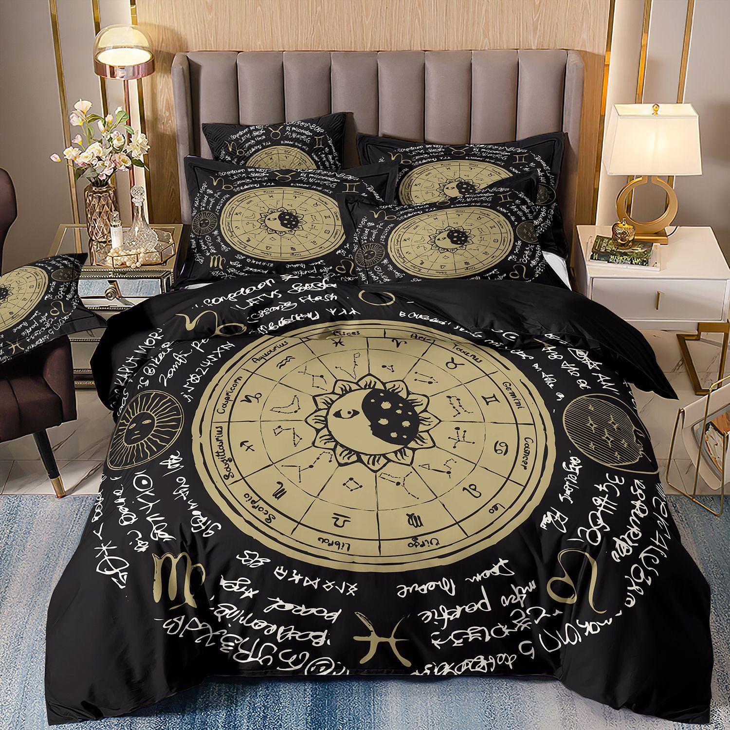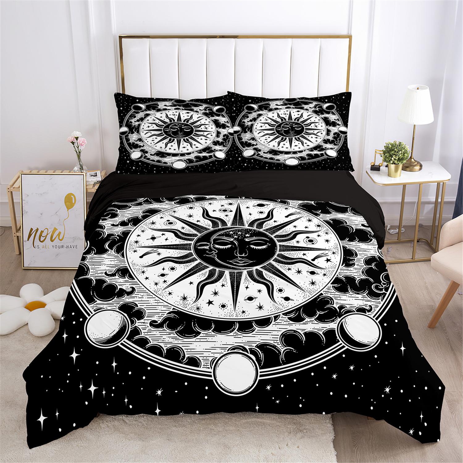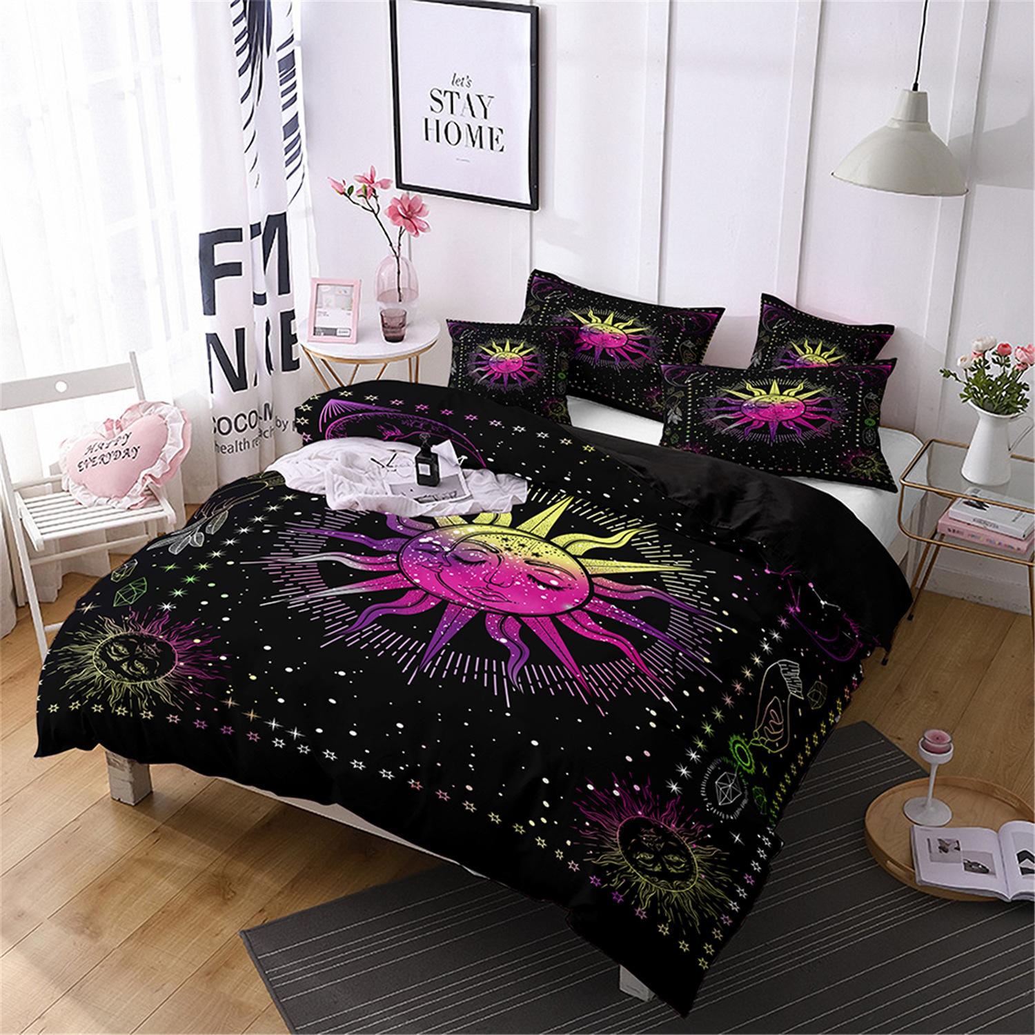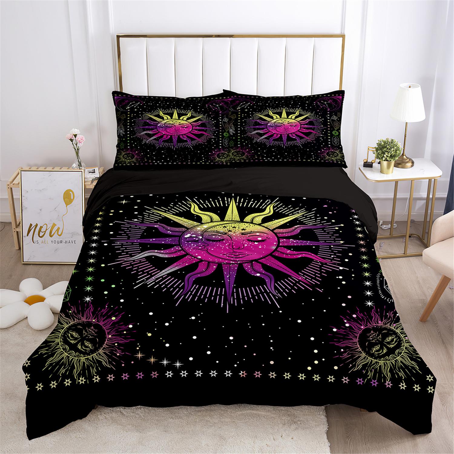 Fronteiriço AliExpress Amazon três peças impressão digital 3D roupa de cama Sol Lua capa de edredom Sol Lua Estrela