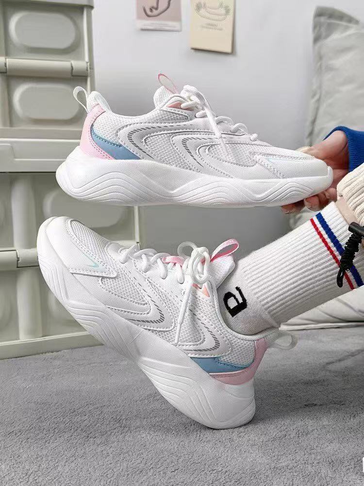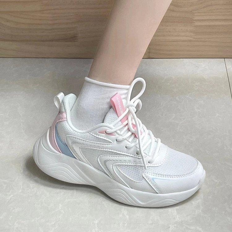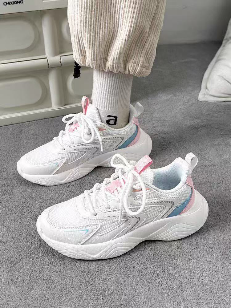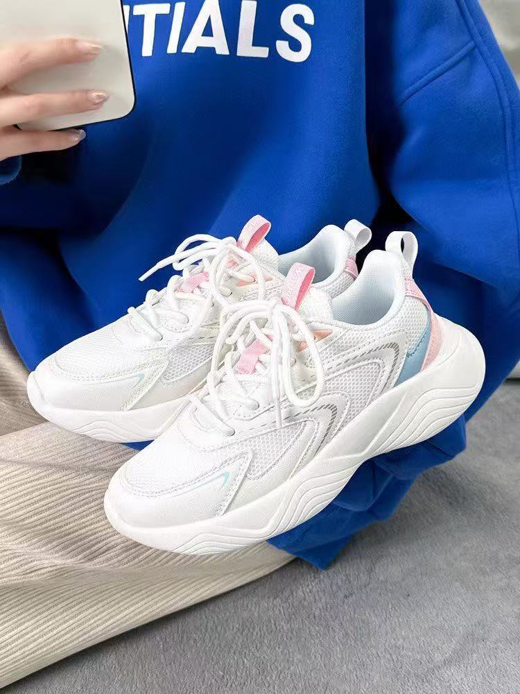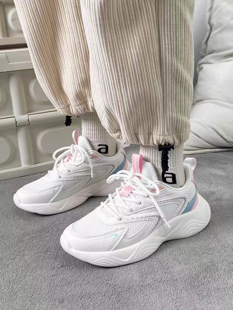 Tênis Estudantil Respirável Feminino 2025 Novo Outono Malha Leve Corrida Sapatos Brancos Estilo Coreano Sola Grossa Sapatos de Pai