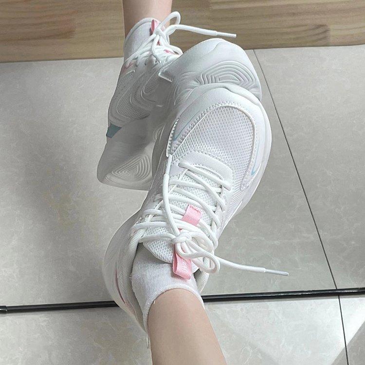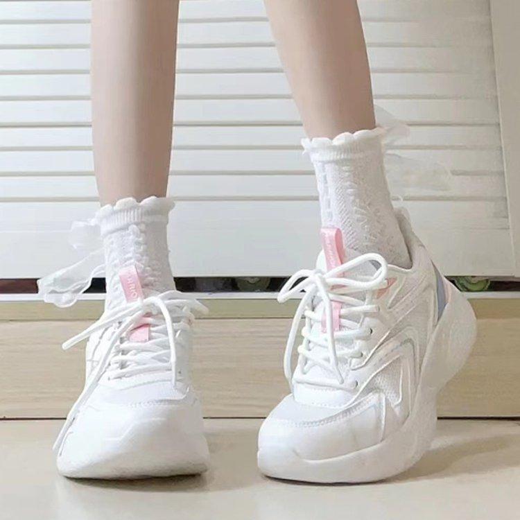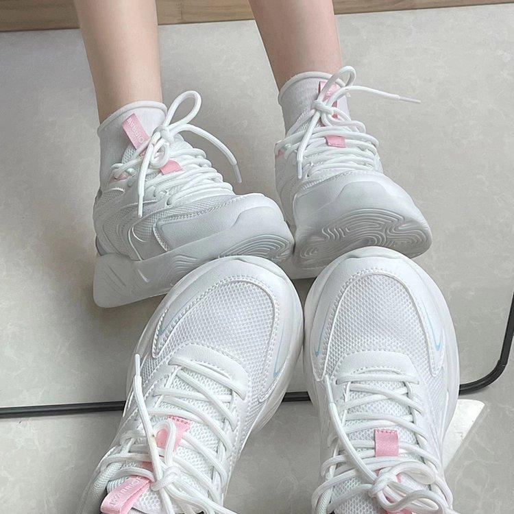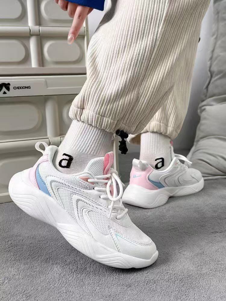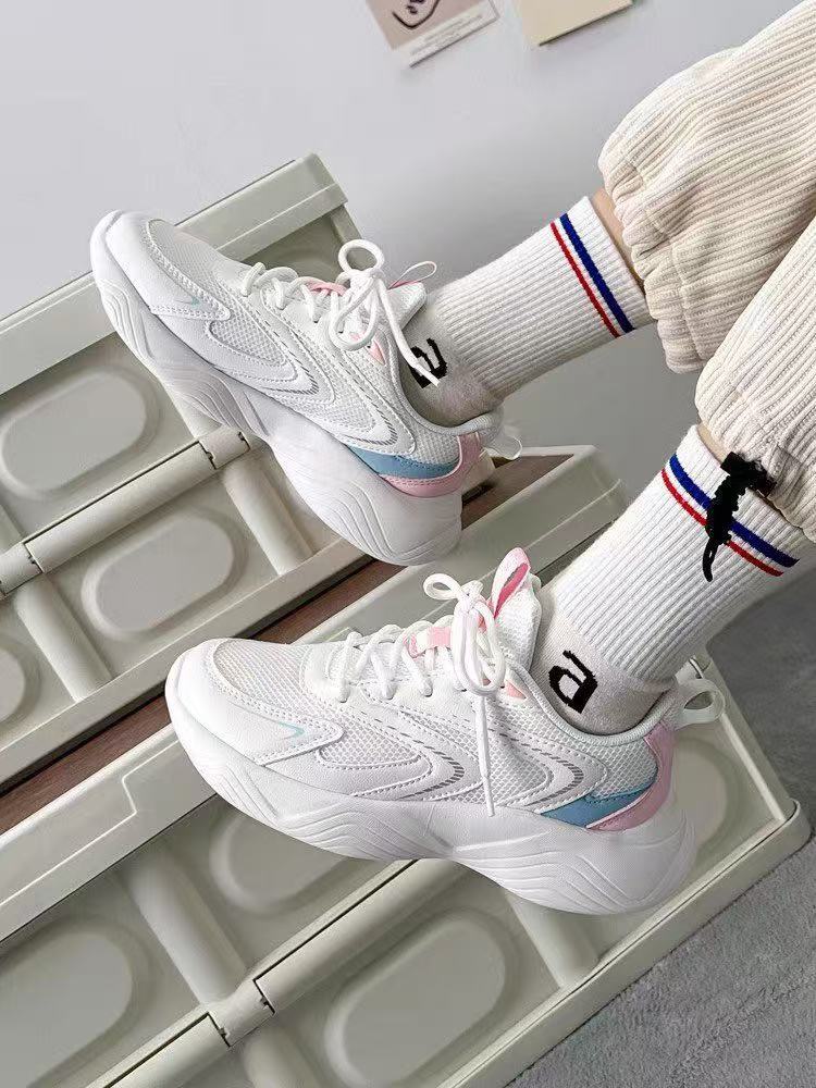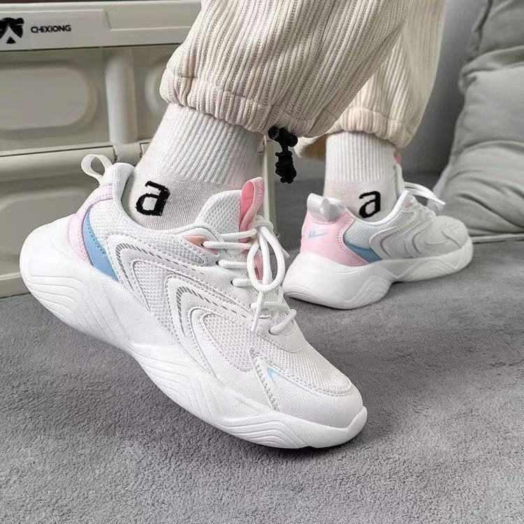 Tênis Estudantil Respirável Feminino 2025 Novo Outono Malha Leve Corrida Sapatos Brancos Estilo Coreano Sola Grossa Sapatos de Pai