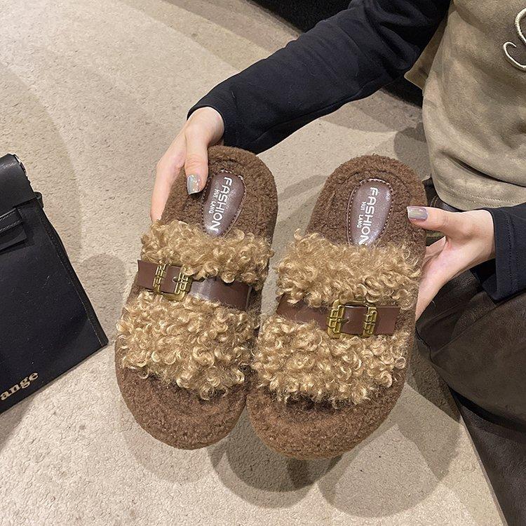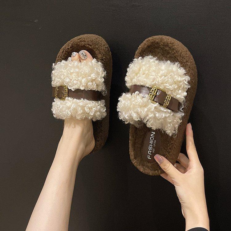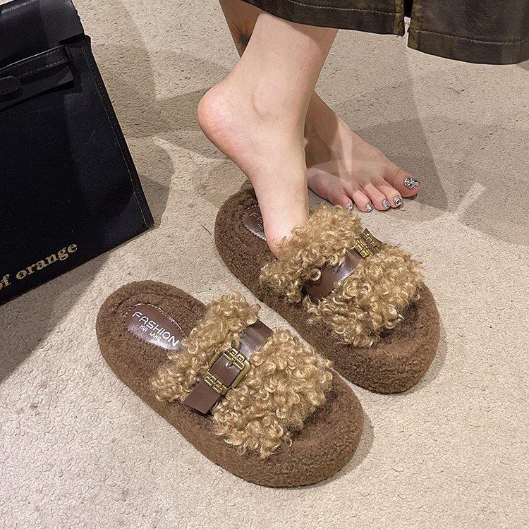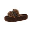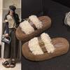 Chinelo felpudo de sola grossa para mulheres usarem ao ar livre 2025 outono e inverno nova moda casa plataforma fofa quente chinelos de algodão