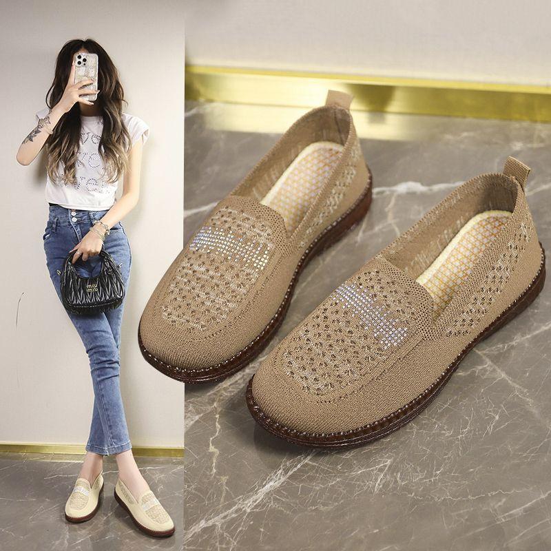 Sapatos de Mãe de Sola Macia Antiderrapante de Cano Baixo Sapatos de Pano de Pequim Antigos Mocassins Vazados Respiráveis de Novo Estilo Chinês Verão 2025 Novo