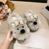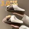 Pantufas de Gatinho de Desenho Animado Femininas Forradas com Lã Quentes para Exterior com Sola Plataforma Antiderrapante Pantufas Preguiçosas de Bico Fechado 2025 Outono/Inverno Novas