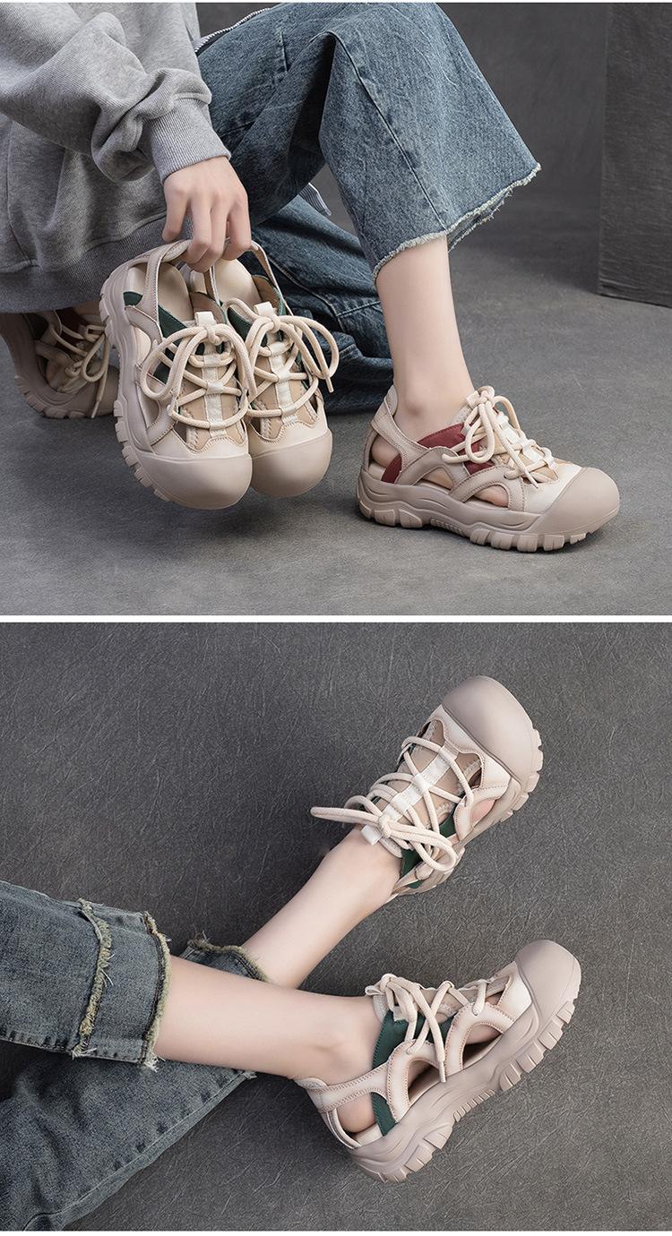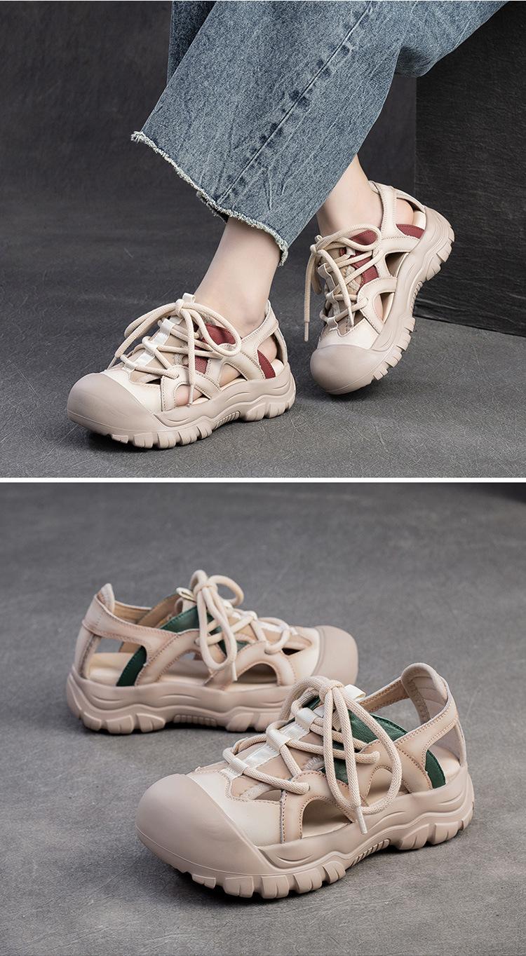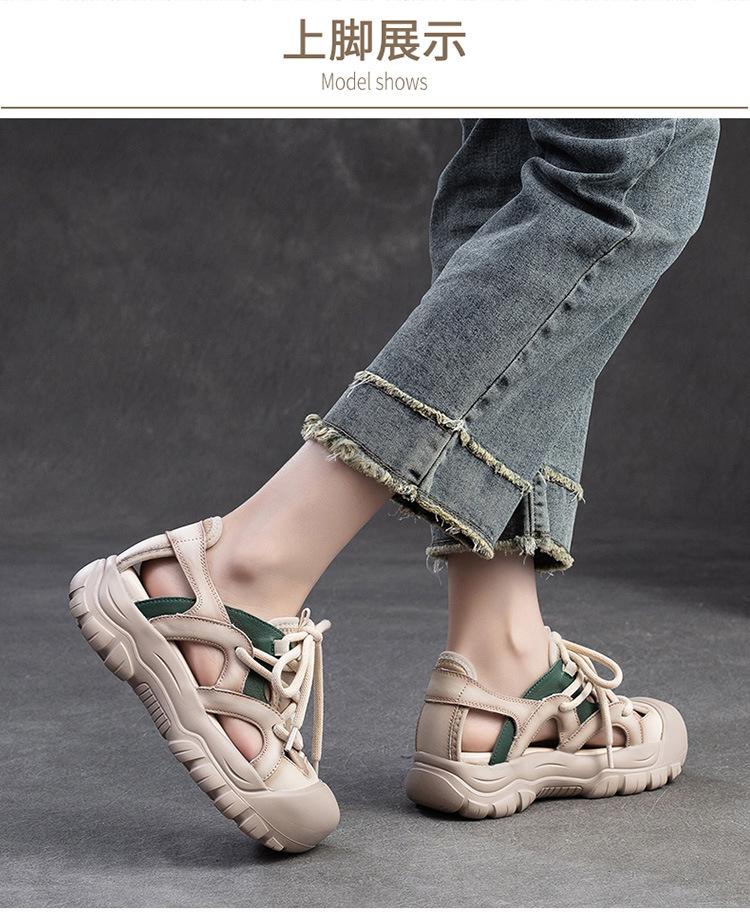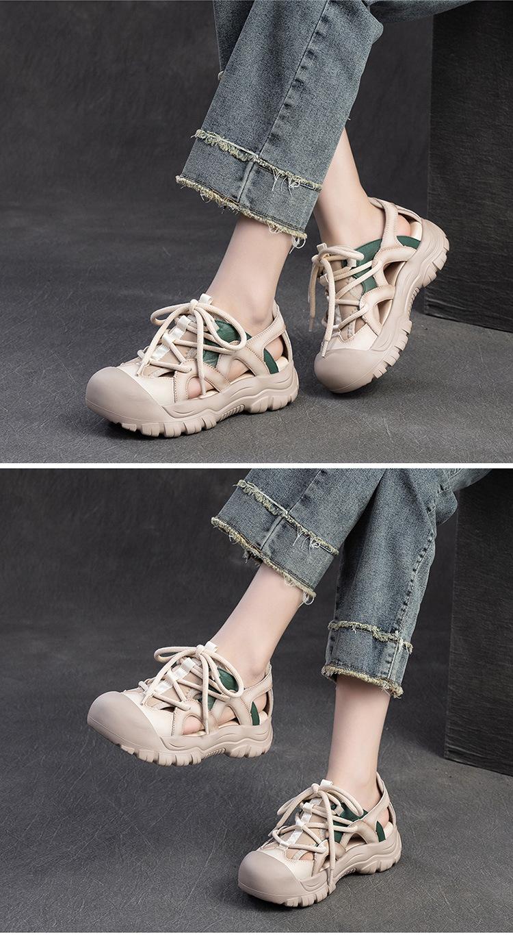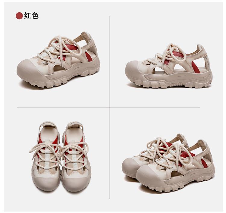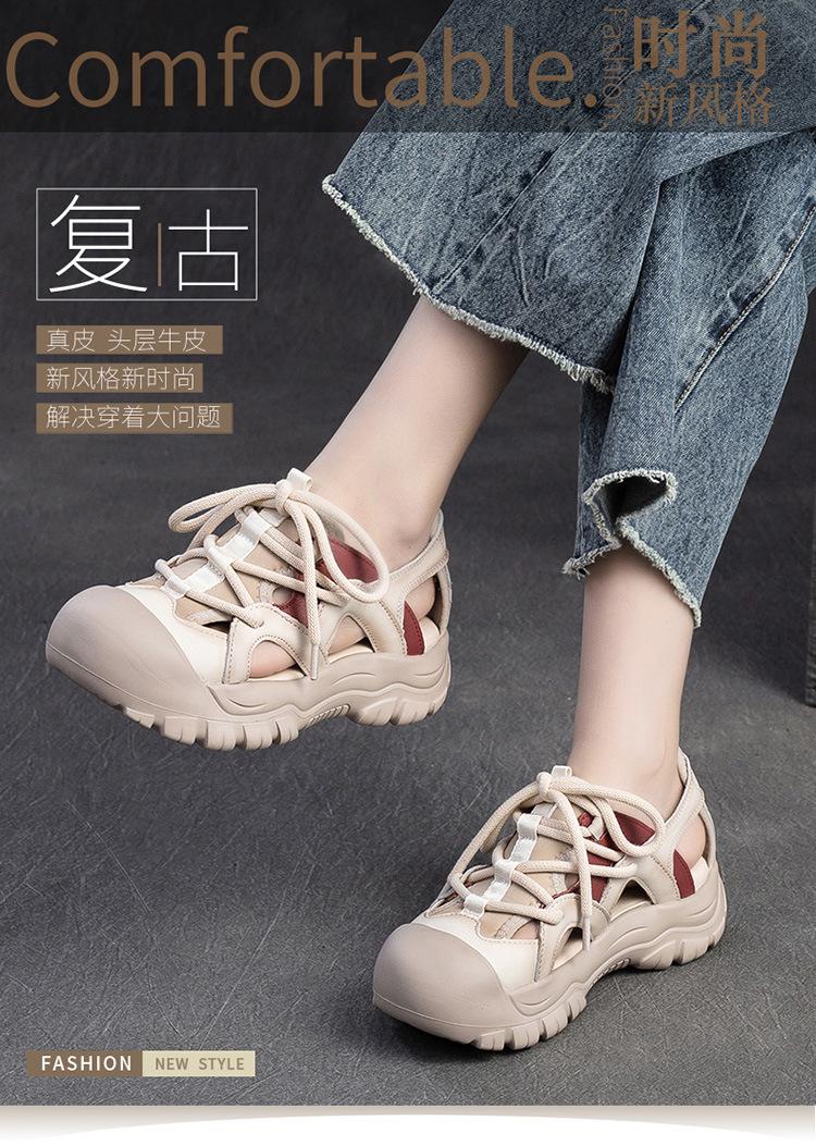 Sandálias Femininas Casuais Shanghai Jiejie 2025 Verão Novo Cor Retrô Polimento Confortável Nova Moda Combinação com Tudo Furo