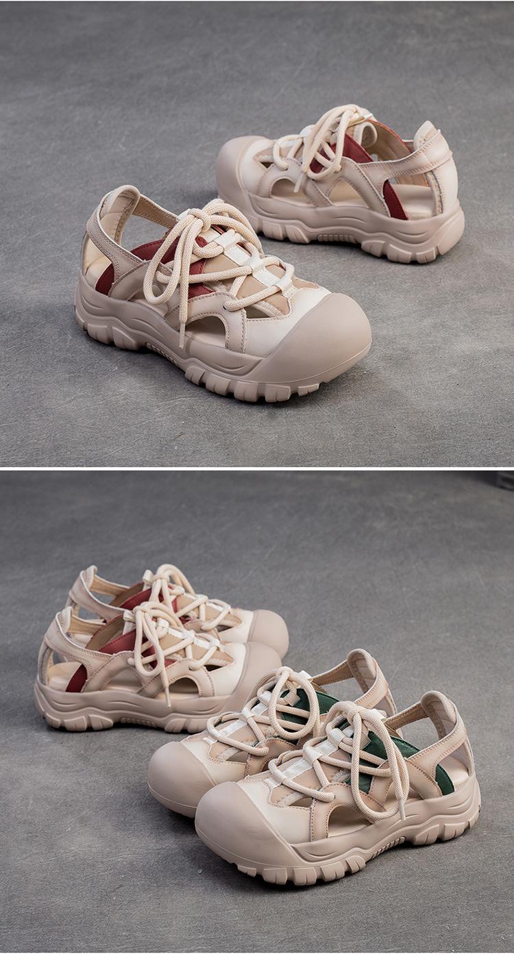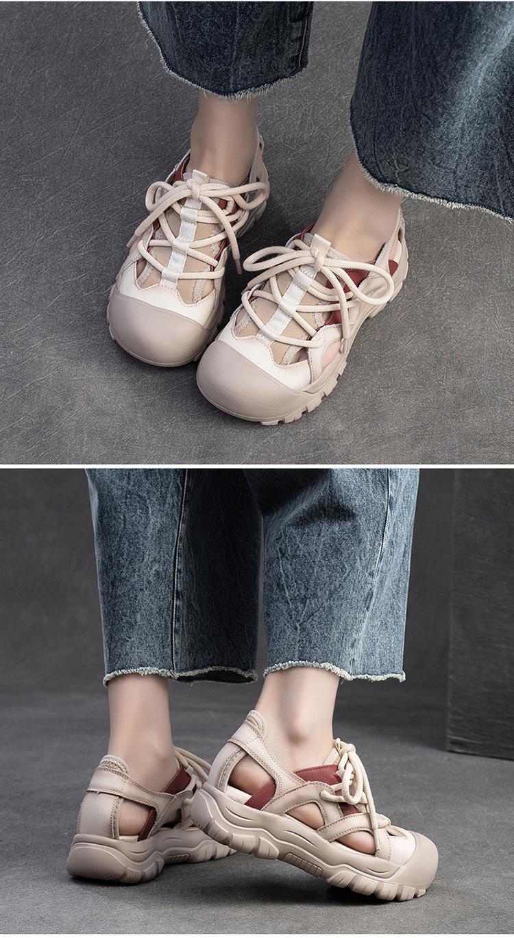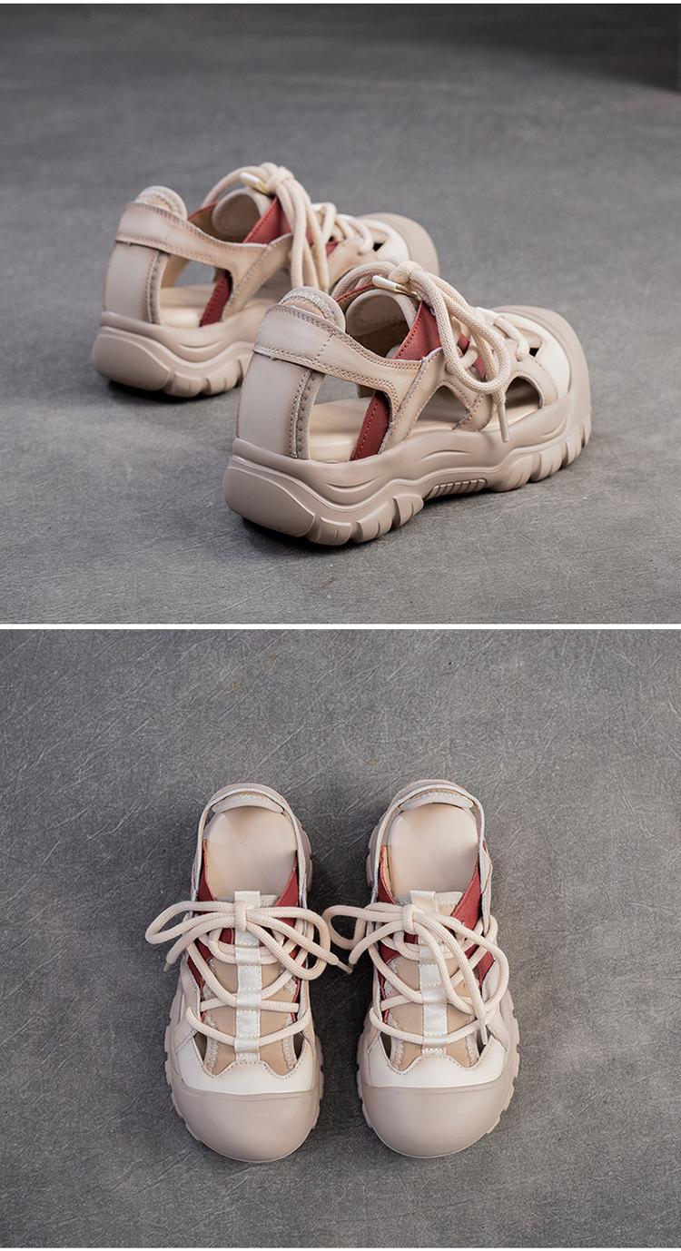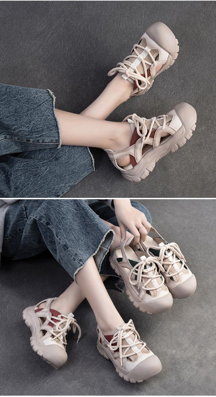 Sandálias Femininas Casuais Shanghai Jiejie 2025 Verão Novo Cor Retrô Polimento Confortável Nova Moda Combinação com Tudo Furo