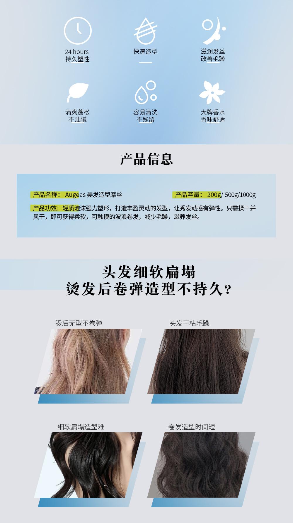 Mousse modelador augeas transfronteiriço 200g modelagem de cabelo de longa duração modelagem masculina atacado