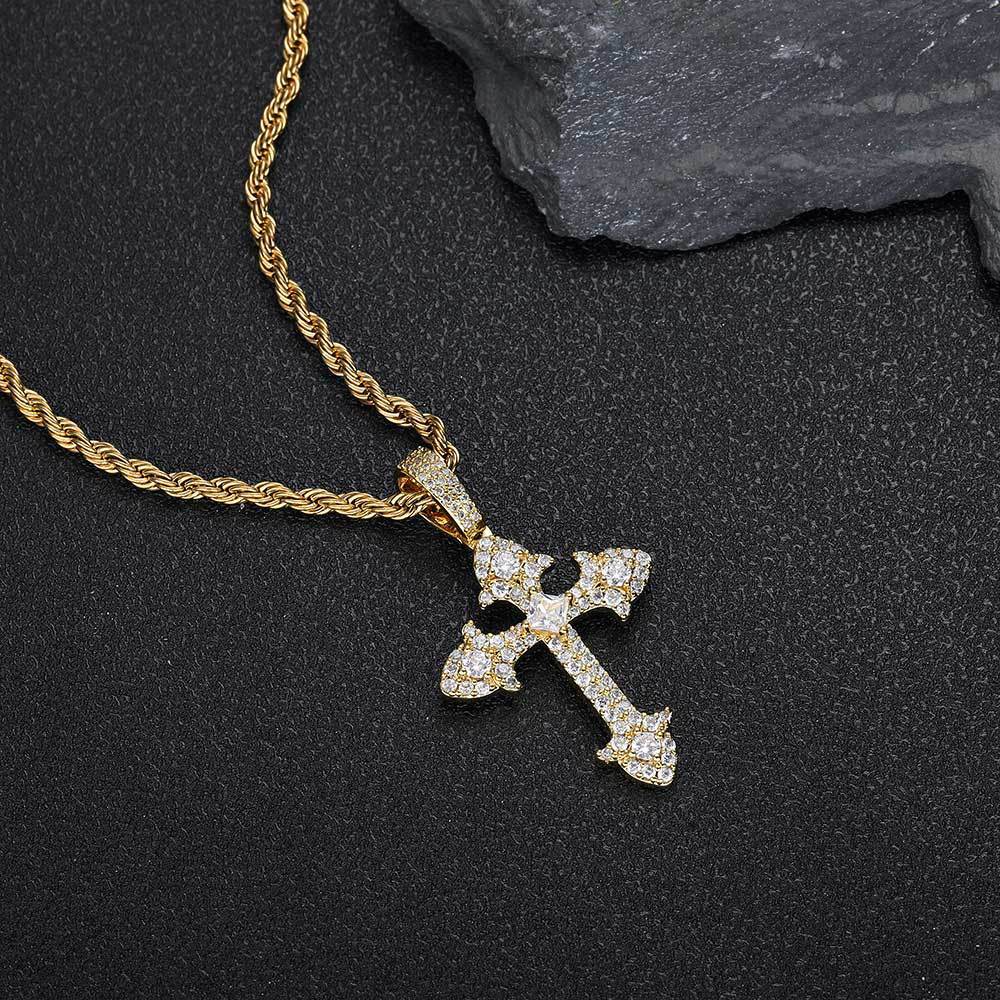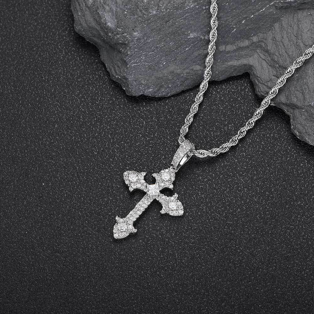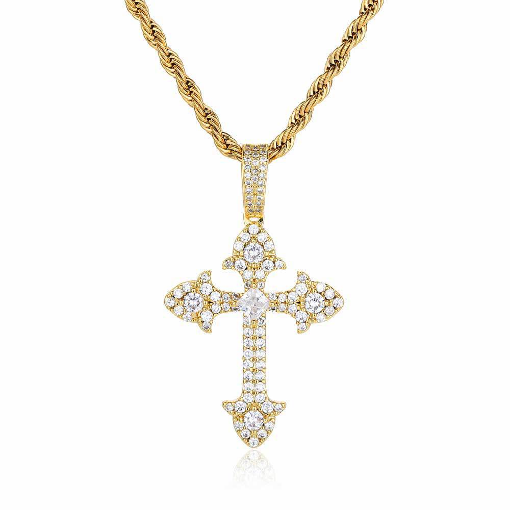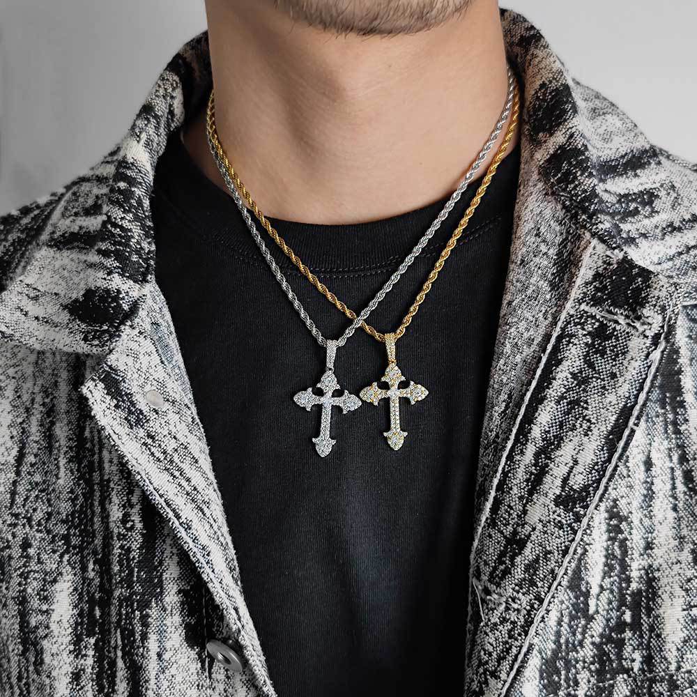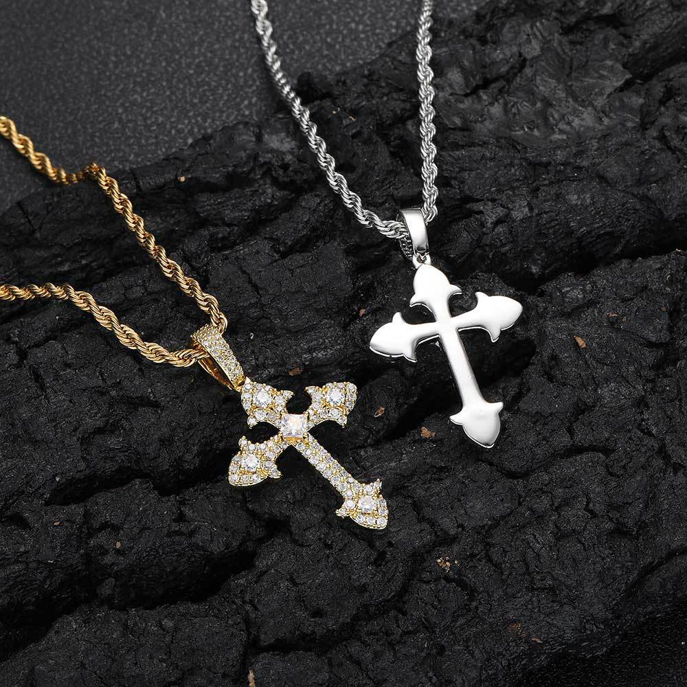 Colar com pingente de cruz retrô de hip hop europeu e americano transfronteiriço, personalidade de marca de moda, zircônia, masculino, atacado de joias