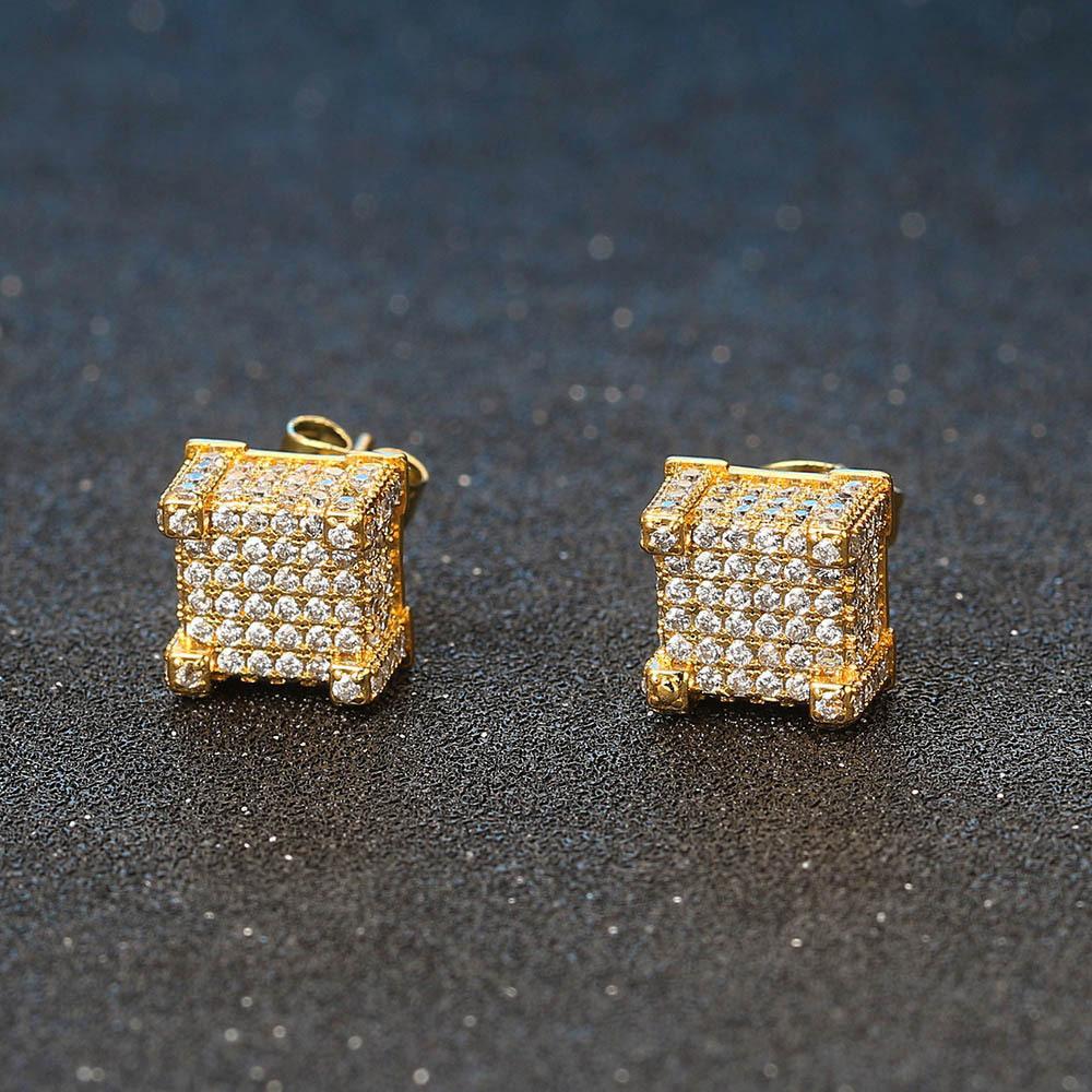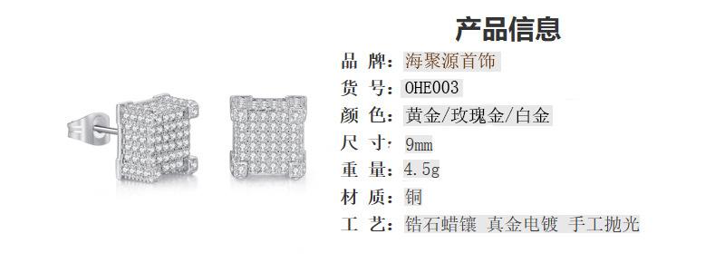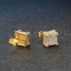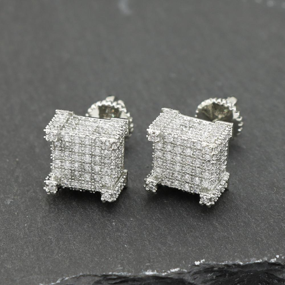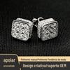 Brincos quadrados de hip hop de diamante europeu e americano, brincos micro-incrustados de zircônia, brincos de luxo leve