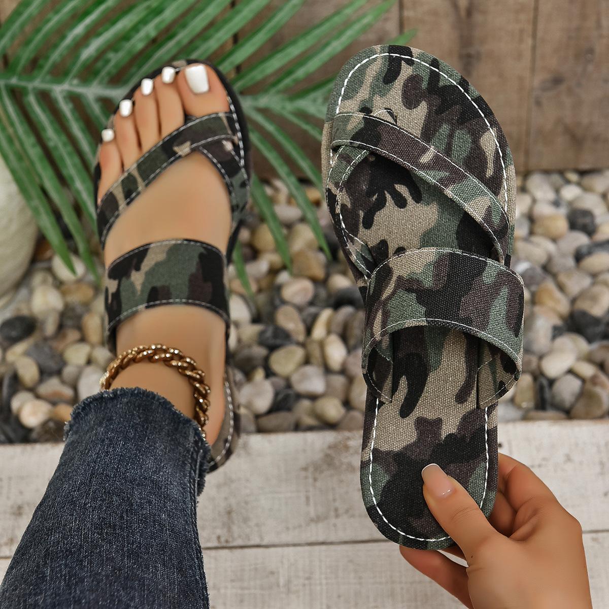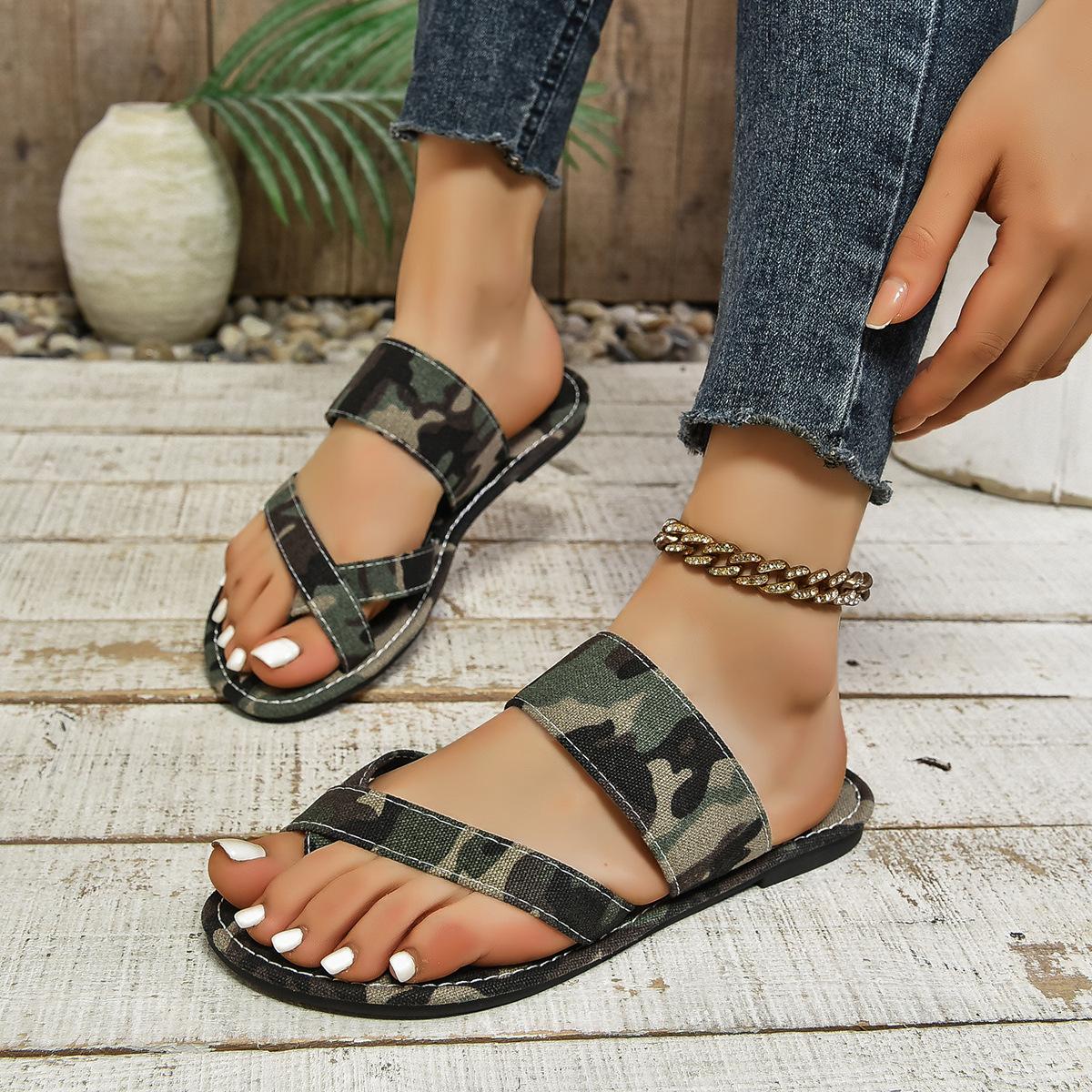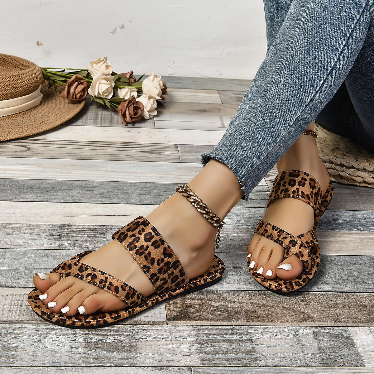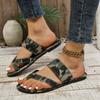 Sandálias Rasteirinhas Femininas de Verão 2024 para Comércio Exterior com Anel no Dedo do Pé Estilo Europeu e Americano Casual Confortável Padrão de Personalidade
