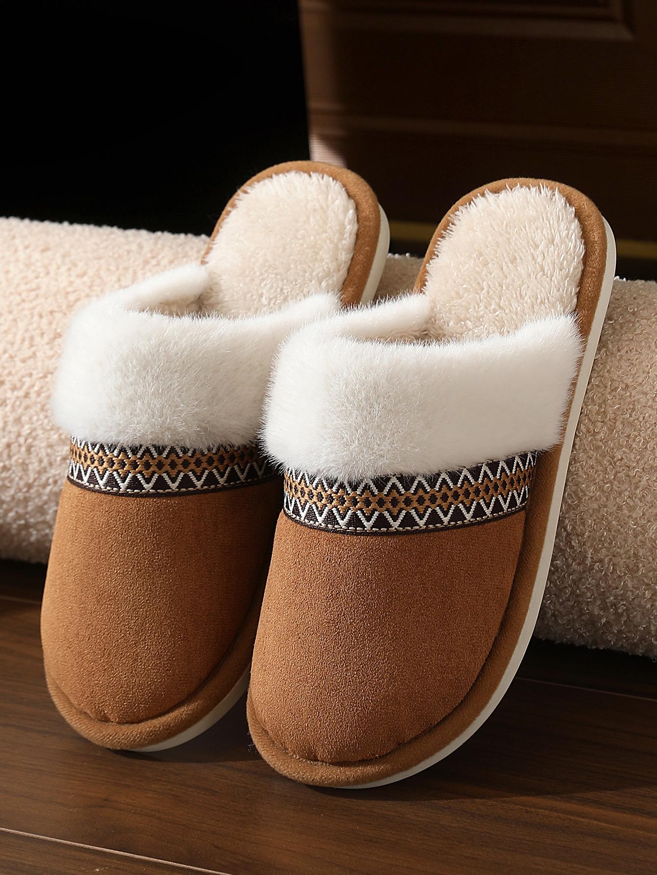 Foto real da imagem, embalado individualmente em sacos OPP transparentes. Parte superior de camurça, forro de pelúcia, sola de TPR, saudável e confortável, adequado para ambientes internos como quarto, sala de estar, varanda, escritório, etc., a escolha para a vida doméstica moderna.