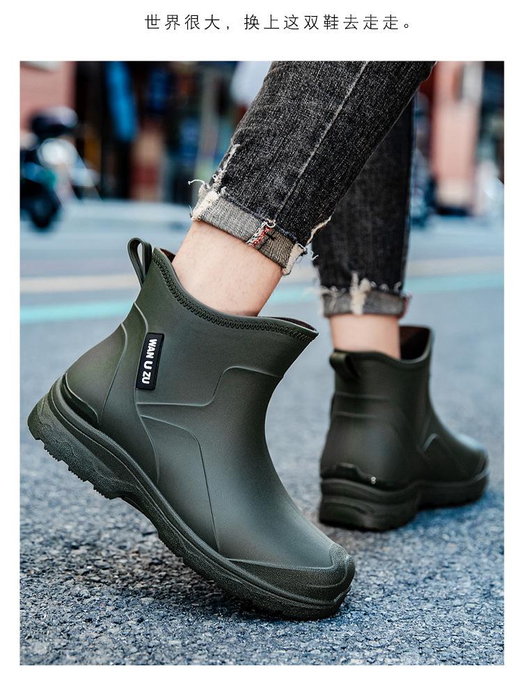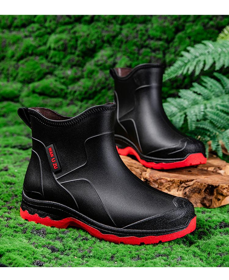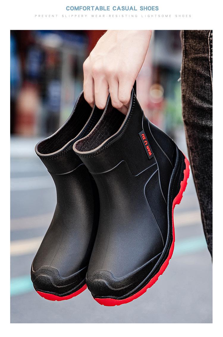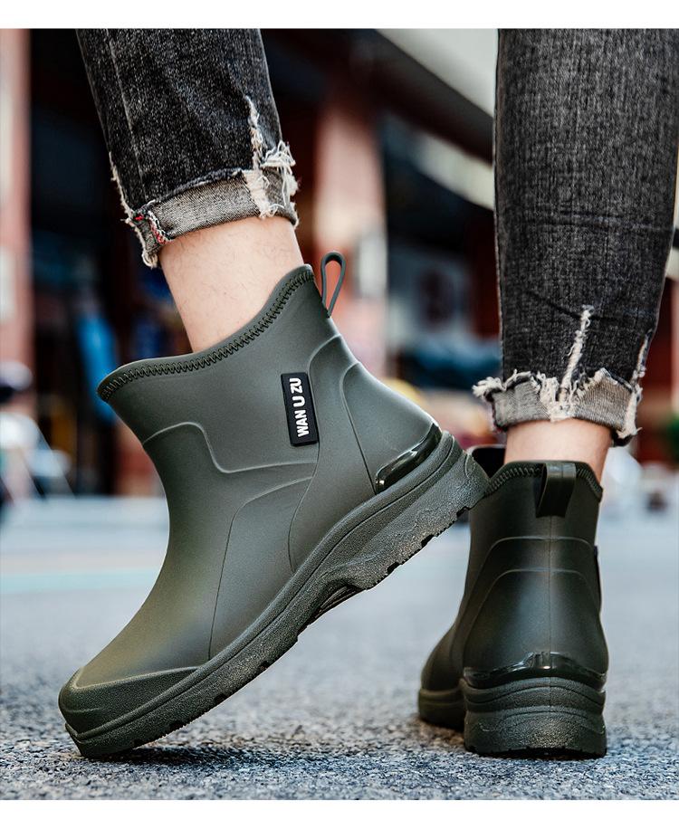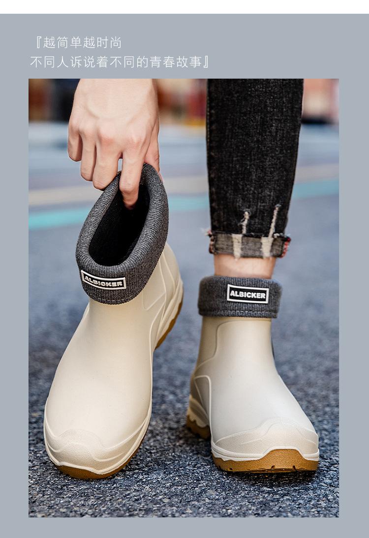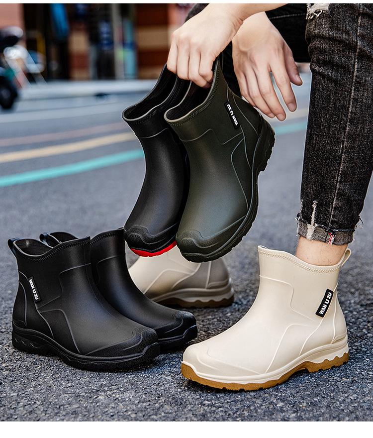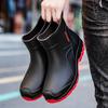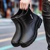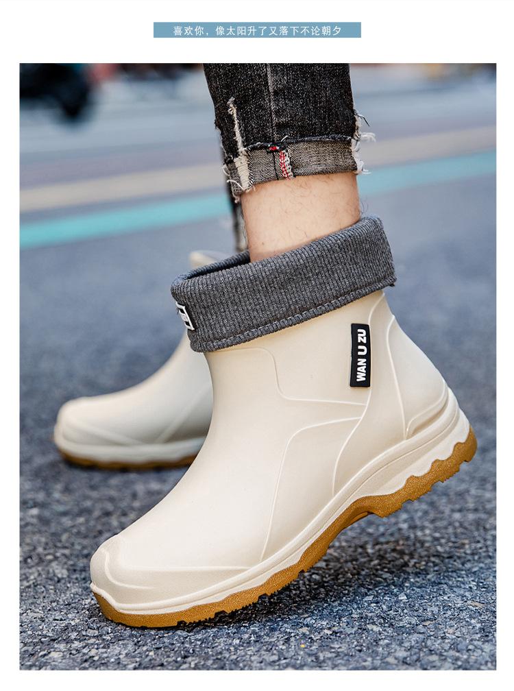 Botas de Chuva Masculinas da Moda Outono e Inverno Novas Cano Curto Transfronteiriças Bloqueio de Cores Impermeáveis para Exterior Cano Baixo Botas de Chuva Masculinas Quentes Conjunto Sapatos de Borracha Masculinos
