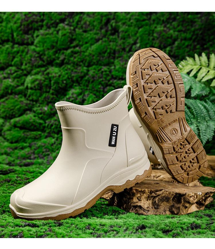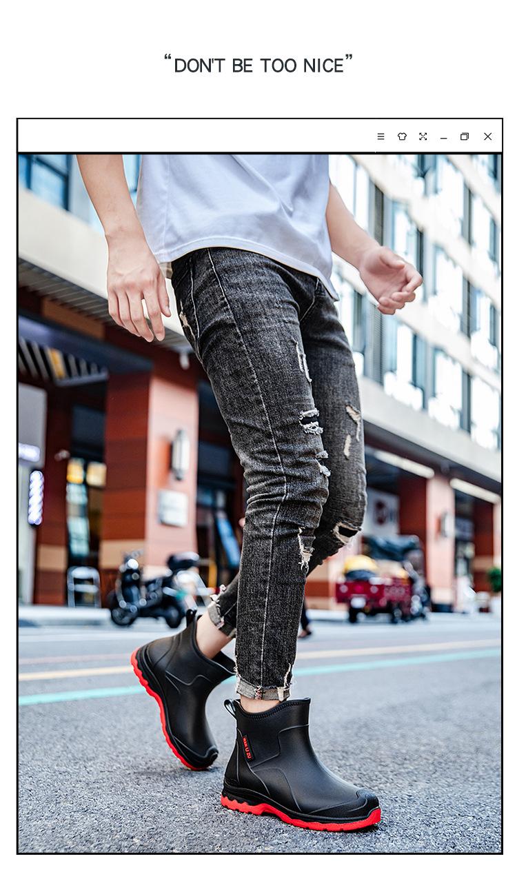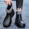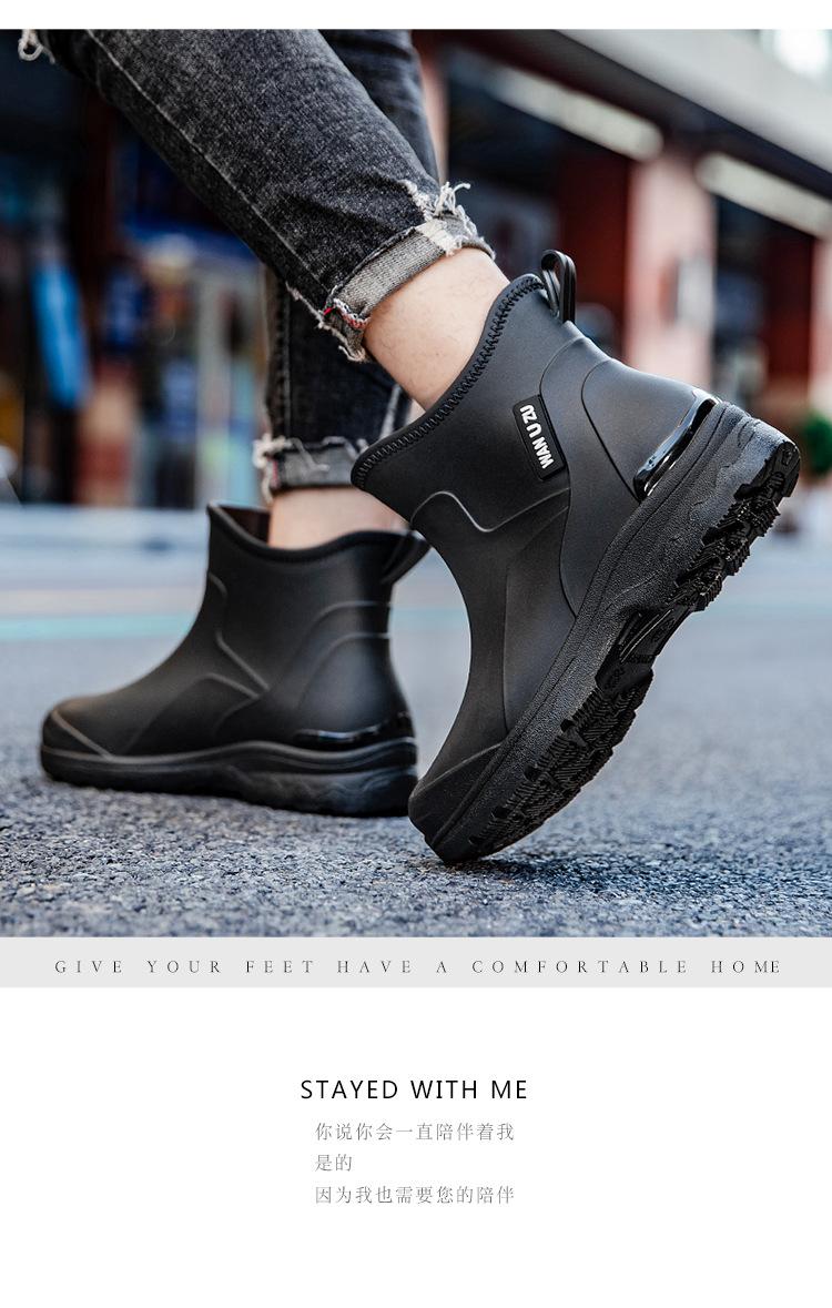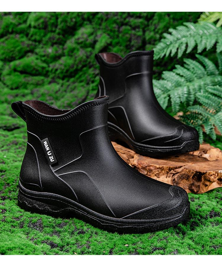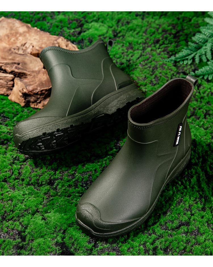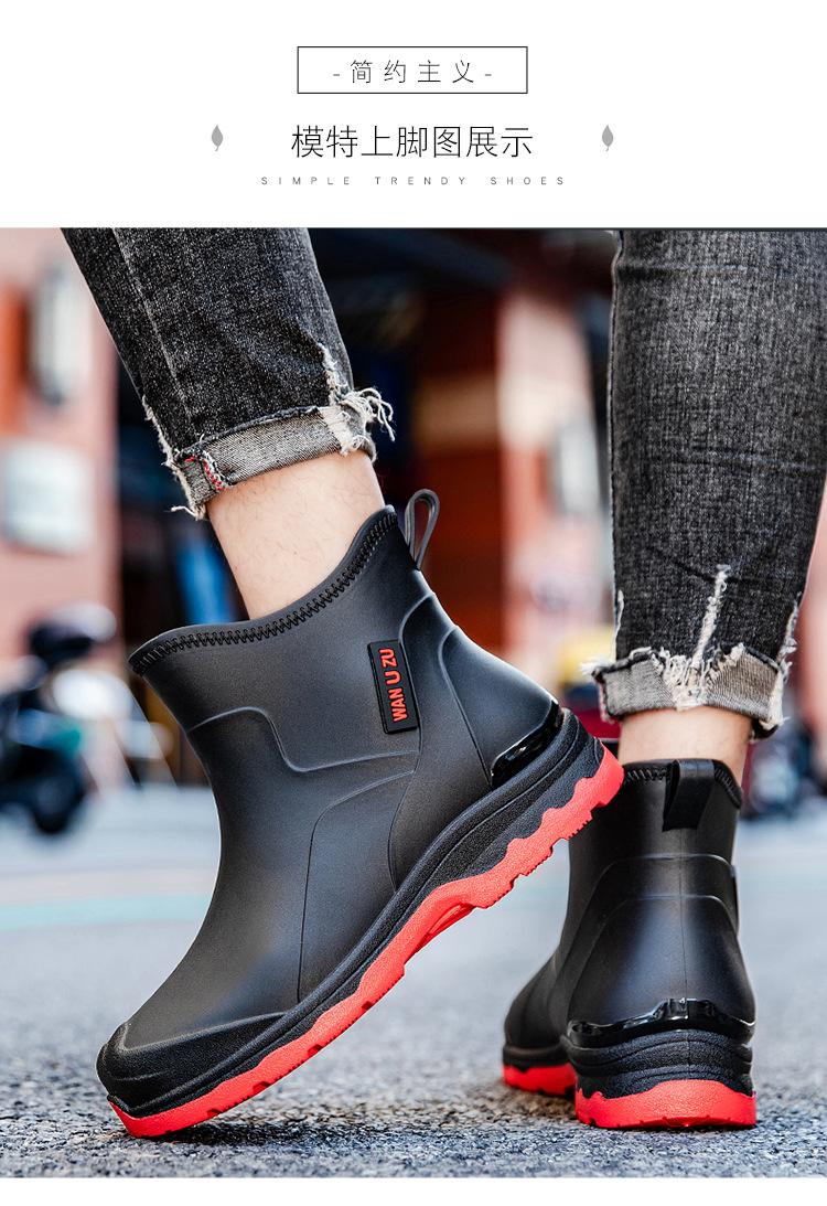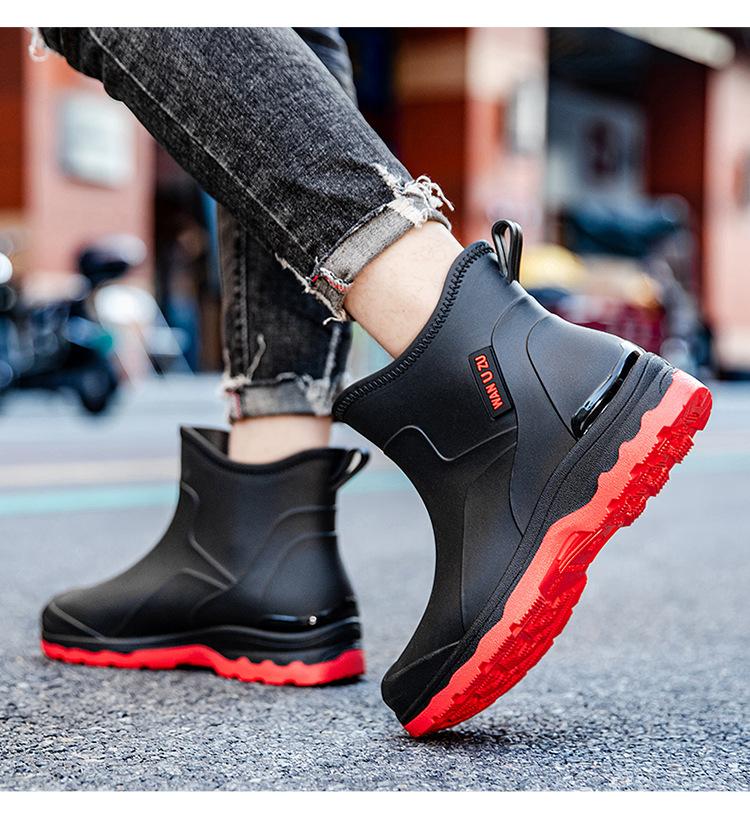 Botas de Chuva Masculinas da Moda Outono e Inverno Novas Cano Curto Transfronteiriças Bloqueio de Cores Impermeáveis para Exterior Cano Baixo Botas de Chuva Masculinas Quentes Conjunto Sapatos de Borracha Masculinos