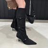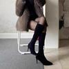 Bota Francesa Única-Muitas-Maneiras Salto Stiletto Alto Bico Fino Folgada Acima do Joelho Botas Femininas Primavera e Outono Zíper Lateral Retrô Emagrecimento Botas Acima do Joelho