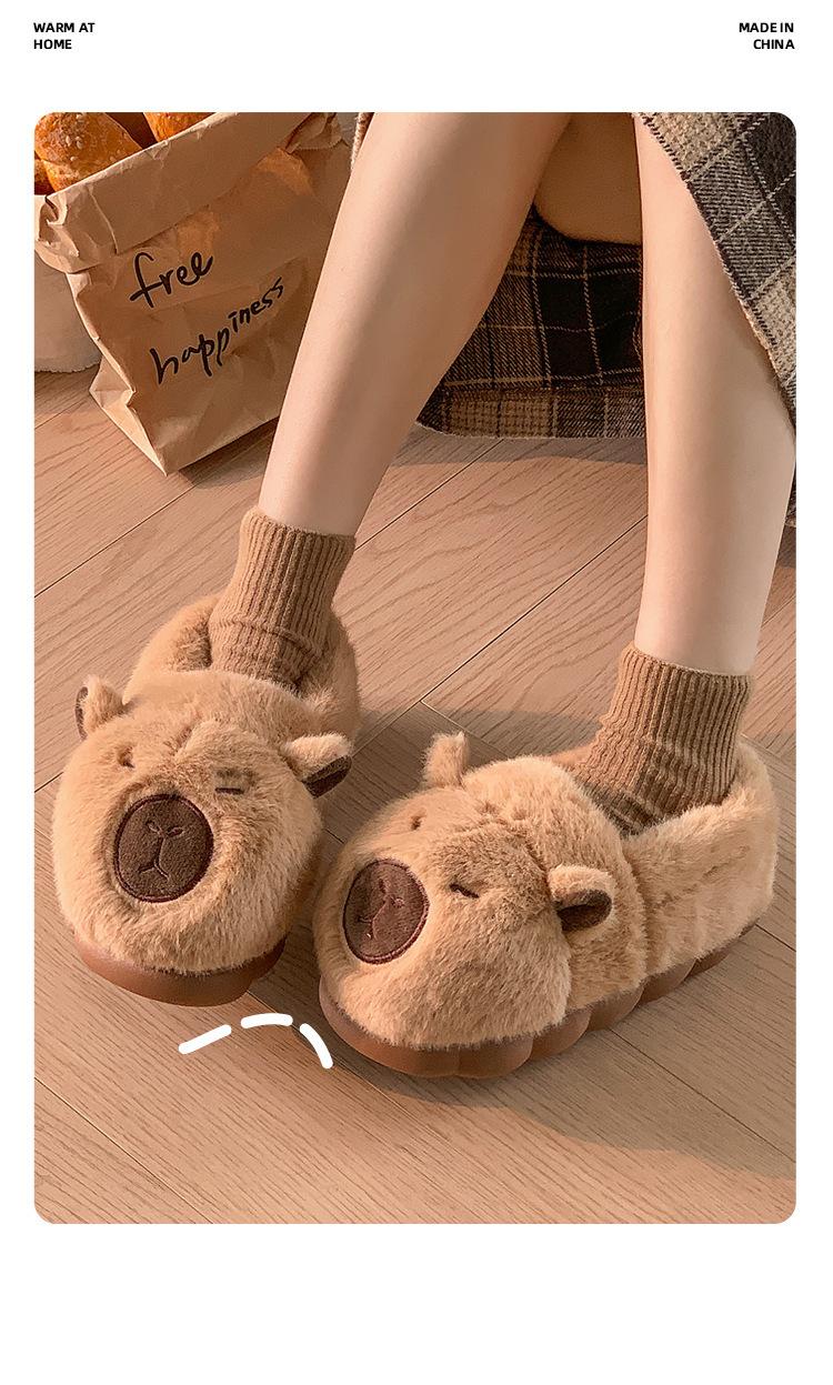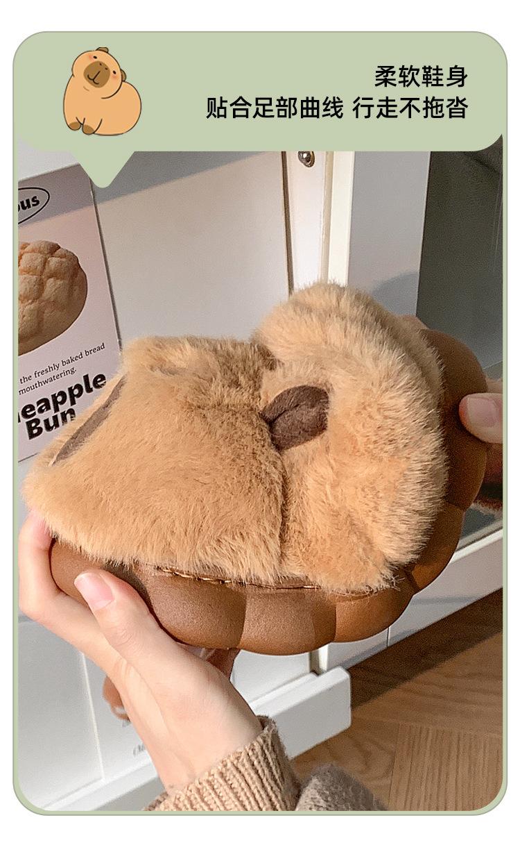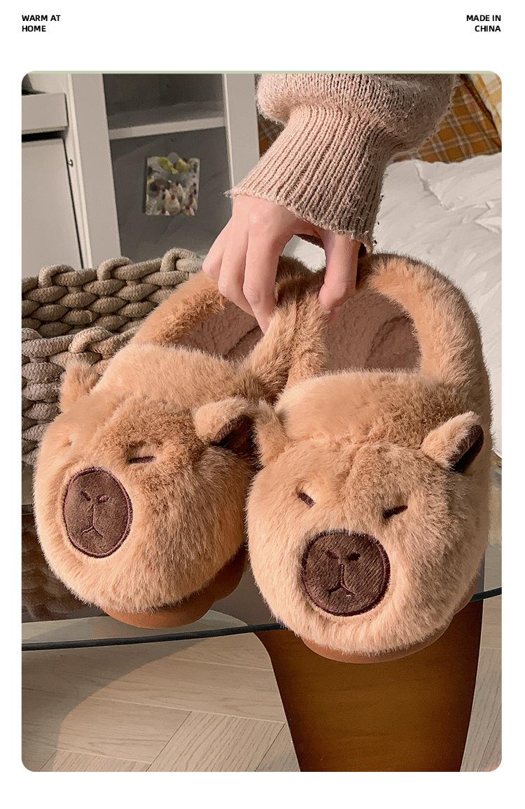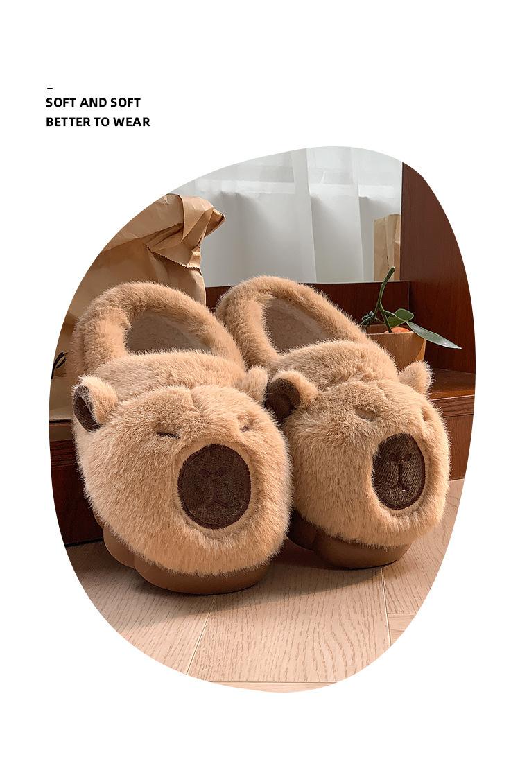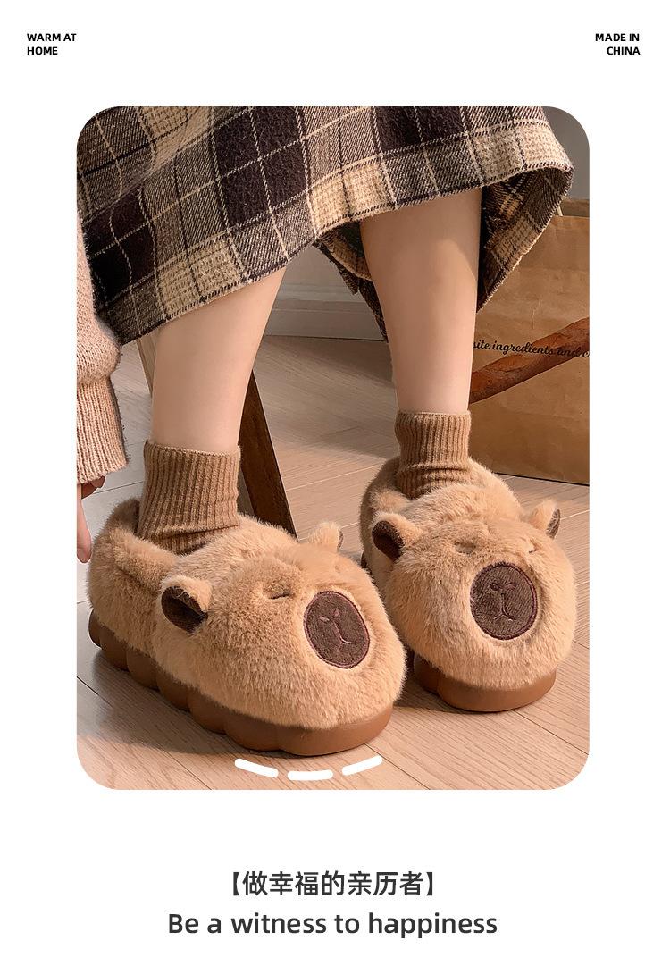 Pantufas de Algodão Capivara Inverno Fofas Pantufas de Algodão Casa Pantufas de Pelúcia Internas Antiderrapantes Casal Casa Pacote Salto Sapatos de Algodão