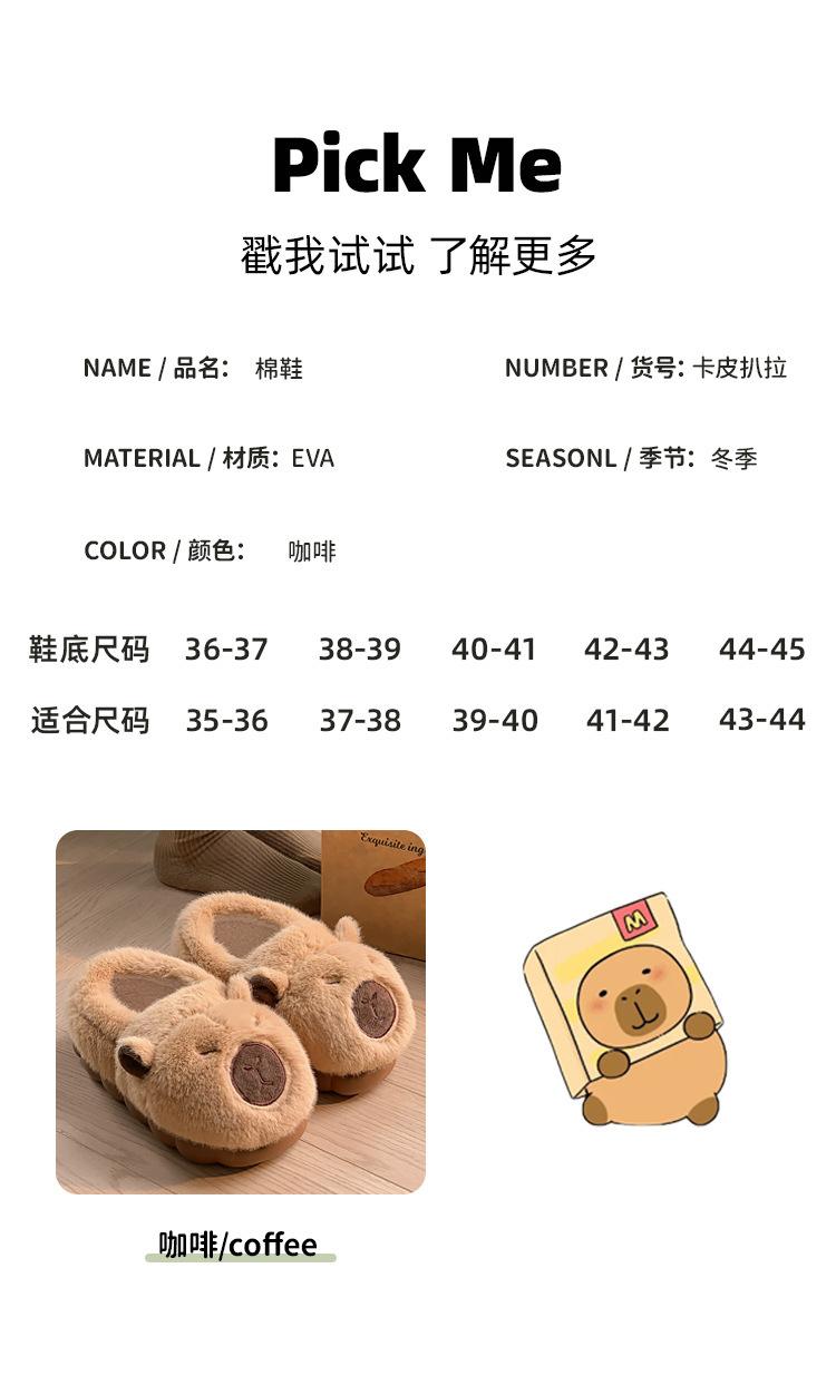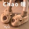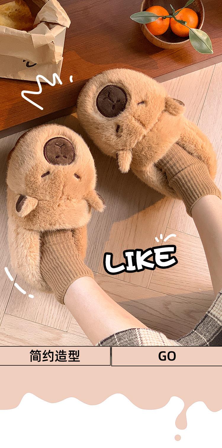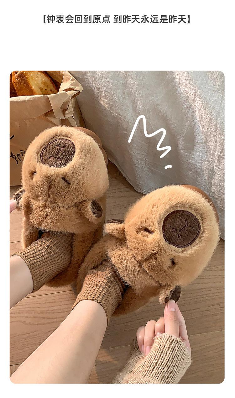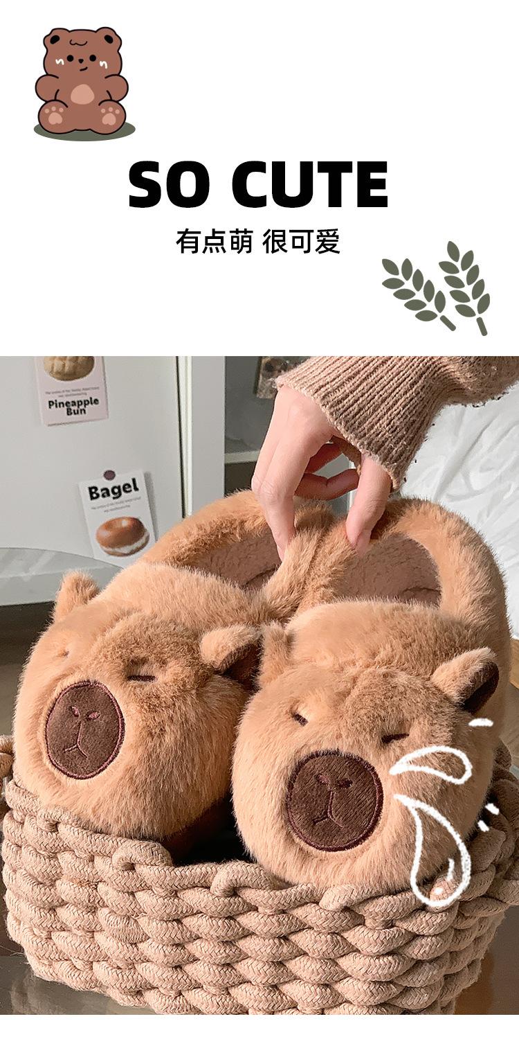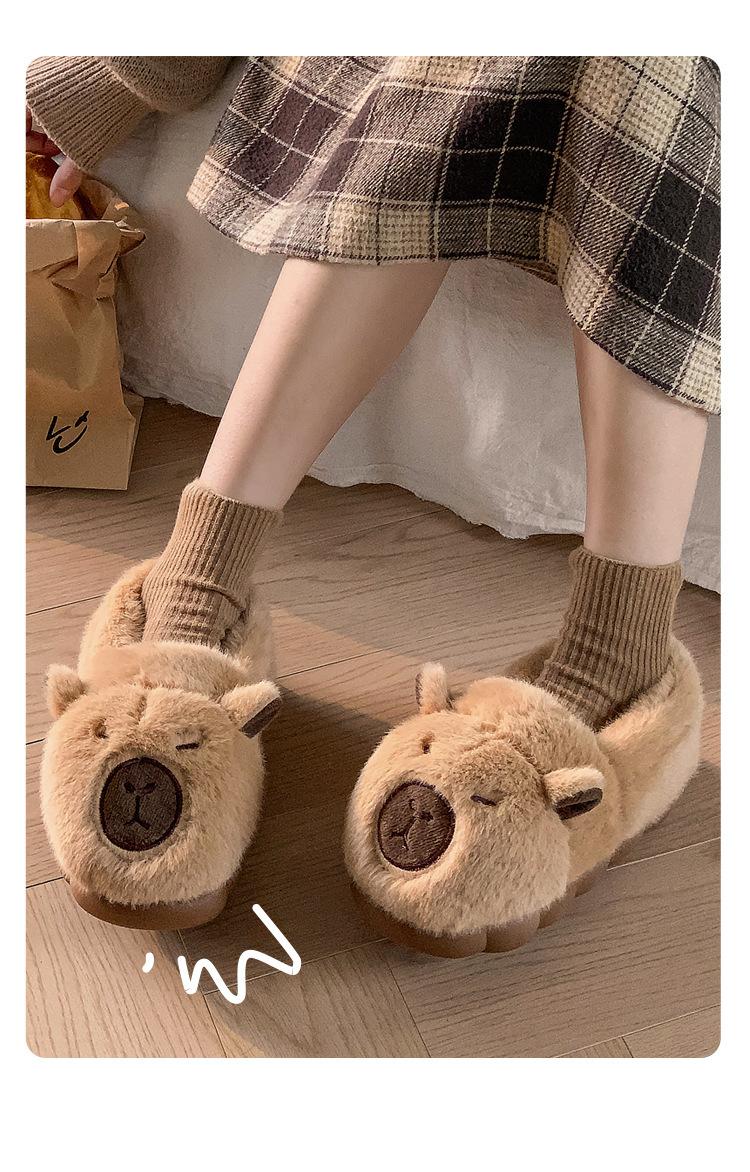 Pantufas de Algodão Capivara Inverno Fofas Pantufas de Algodão Casa Pantufas de Pelúcia Internas Antiderrapantes Casal Casa Pacote Salto Sapatos de Algodão