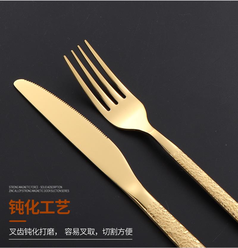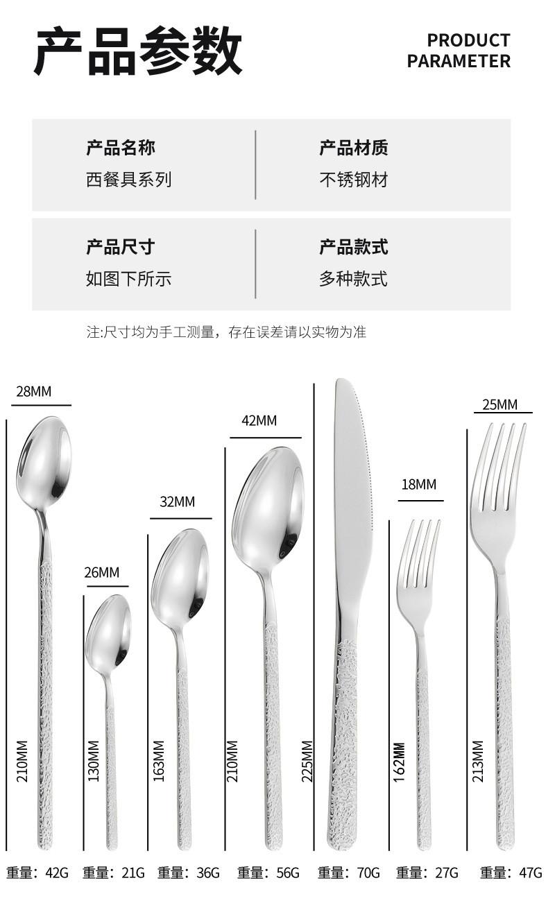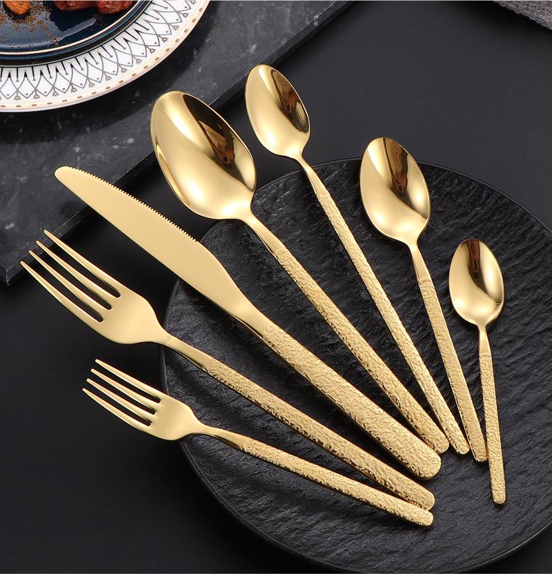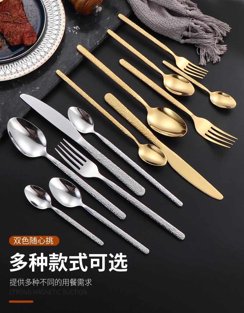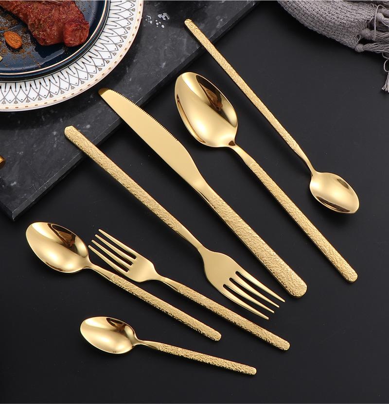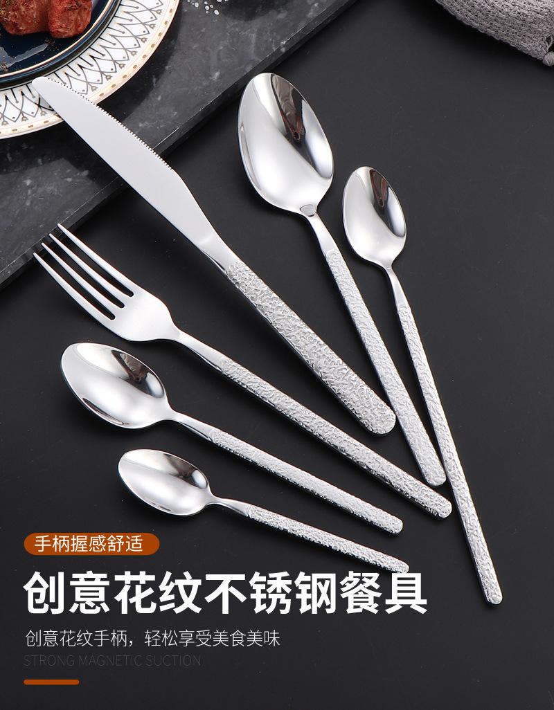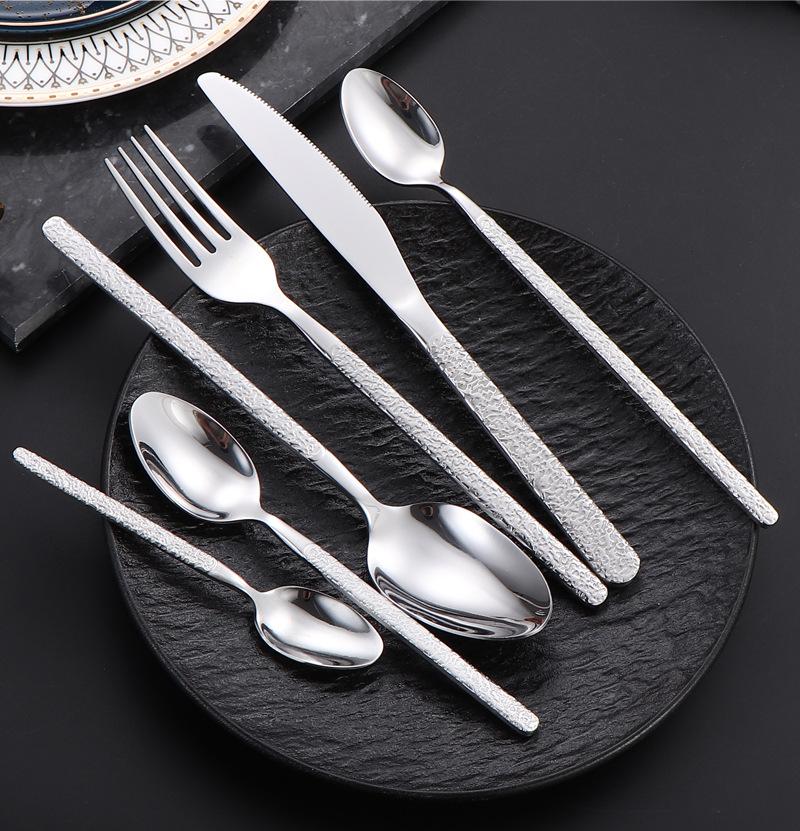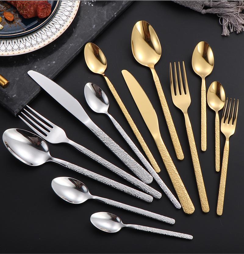 Conjunto de Talheres de Aço Inoxidável com Padrão de Pedra em Relevo, Faca, Garfo, Colher, Comida Ocidental, Hotel, Restaurante, Faca para Bife Espessura, Colher de Gelo, Colher de Café, Conjunto de Talheres