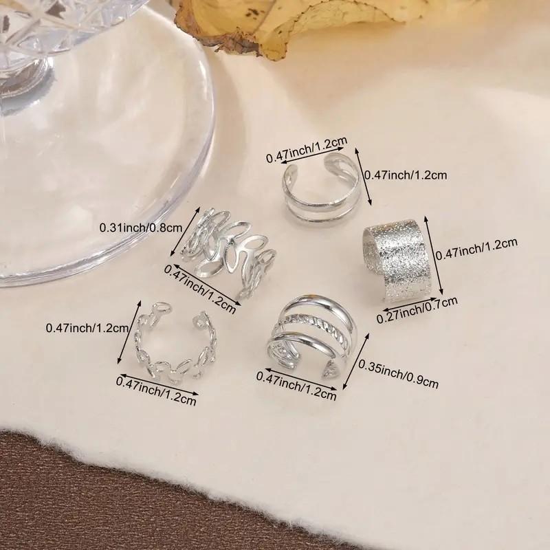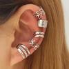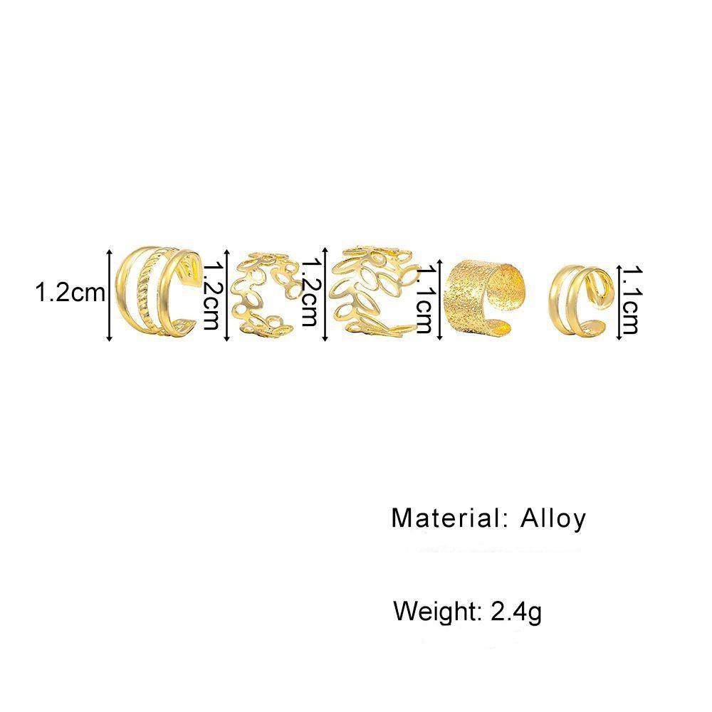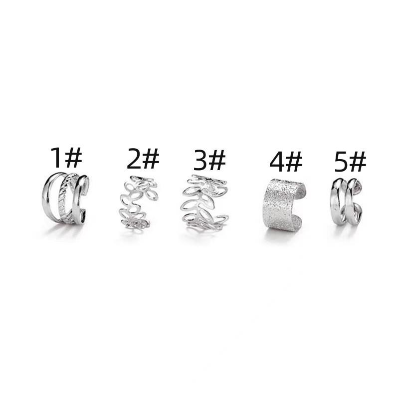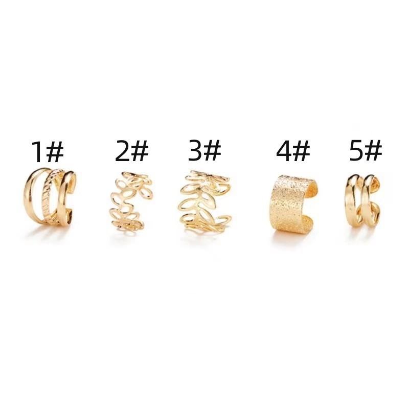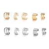 Clipe de osso de orelha não perfurado personalizado europeu e americano, conjunto de 5 peças, brincos simples de folha oca em forma de C, Amazon transfronteiriço