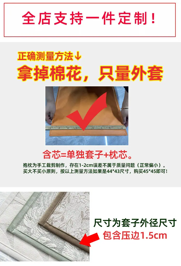 40x40 (pillowcase), 40x40 (pillowcase + pillow core), 45x45 (pillowcase), 45x45 (pillowcase + pillow core), 50...