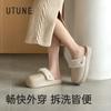 Pantufas de Algodão Impermeáveis Youdiao Femininas 2025 Outono/Inverno Plus Veludo EVA Casal Casa Sola Grossa Antiderrapante Pantufas de Algodão Removíveis